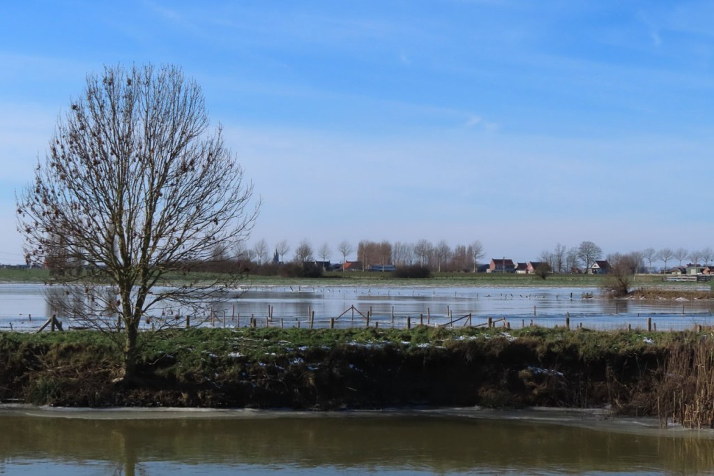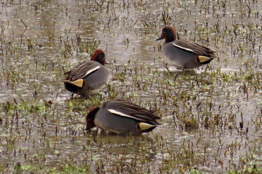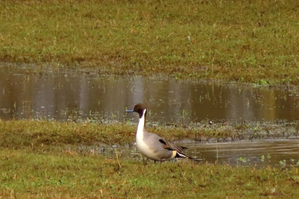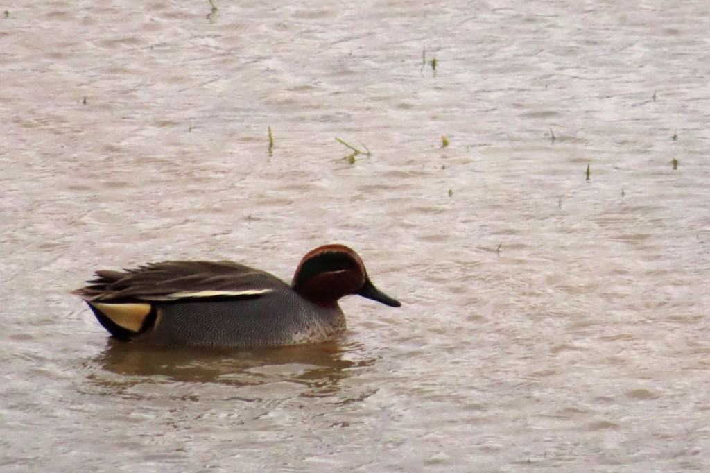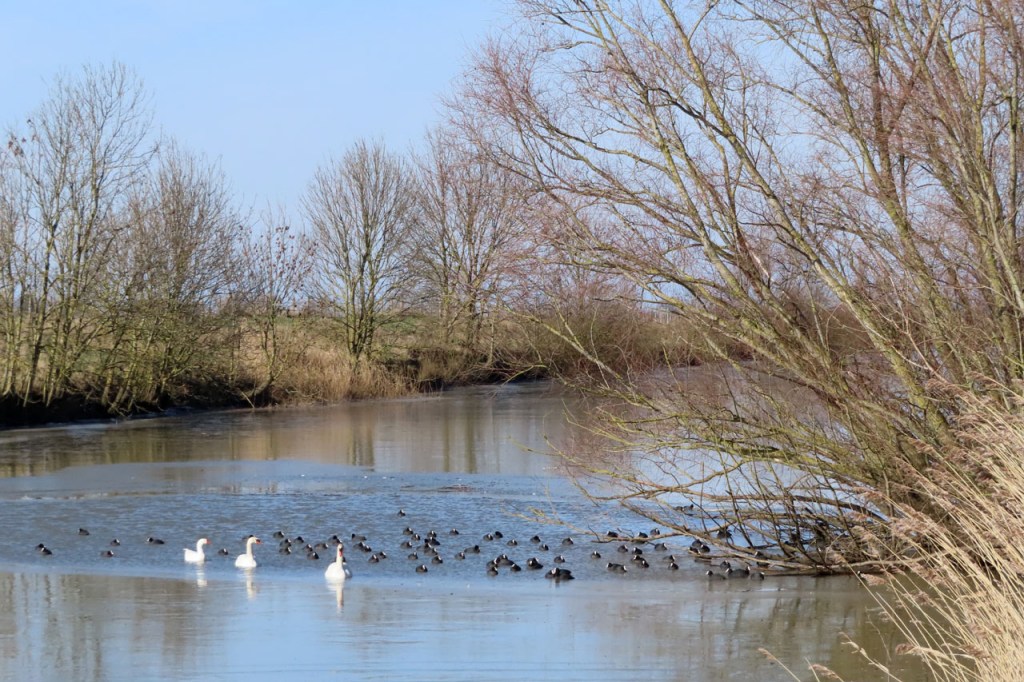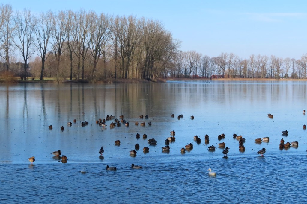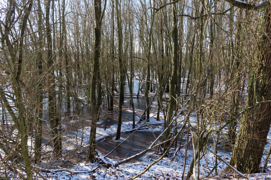 Omdat de regen al vrij vlug na de middag zou terugkeren beperkte ik mij tot een kleine wandeling rond de Verdronken Weide. Ik vreesde wel een beetje de conditie van het pad rondom maar dat viel al bij al nog redelijk mee. Op de Verdronken Weide kon nog steeds enigszins gewandeld worden, door eenden althans. Het zou vandaag trouwens zo’n beetje een eendensafari worden, er zaten nogal wat opvallende exemplaren.
