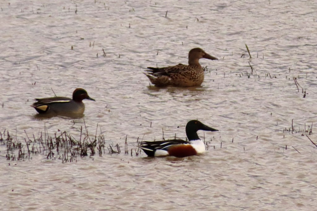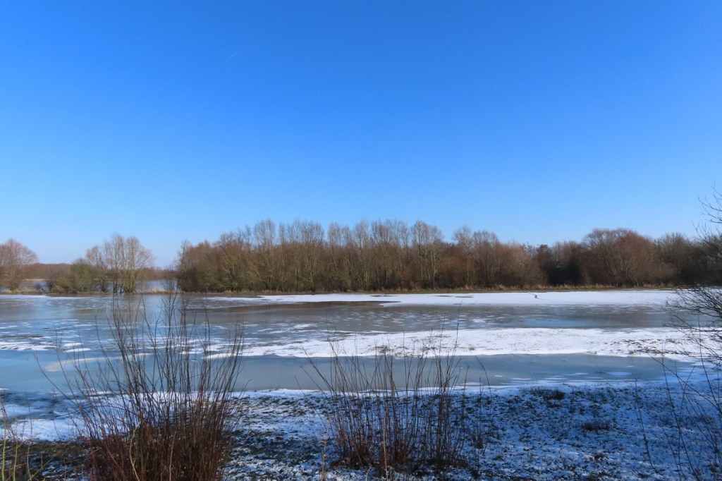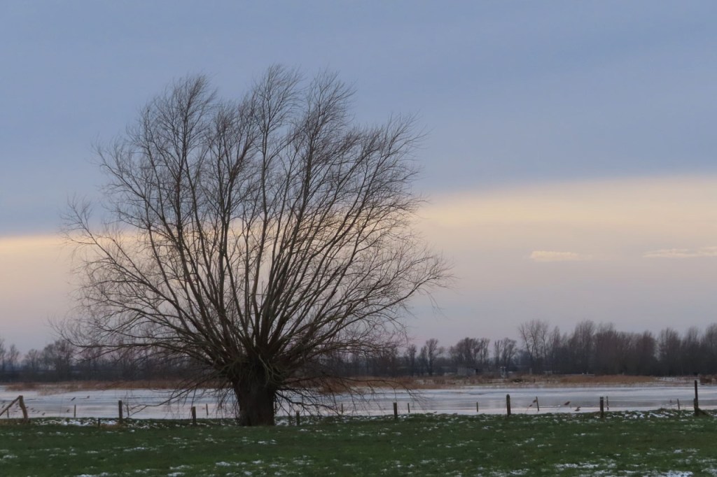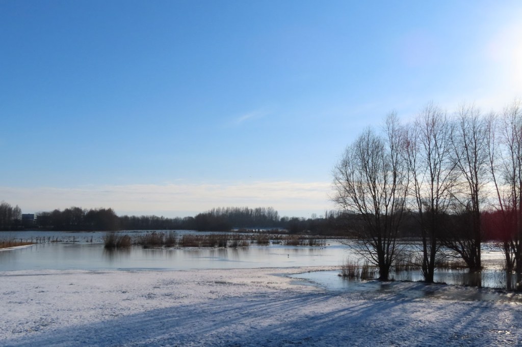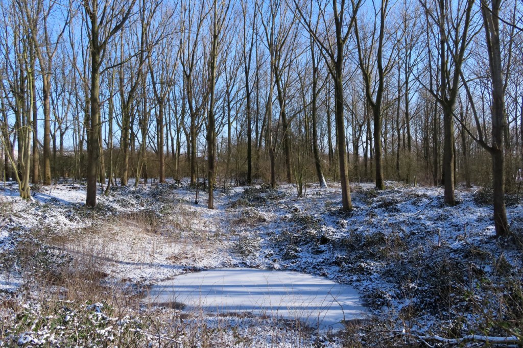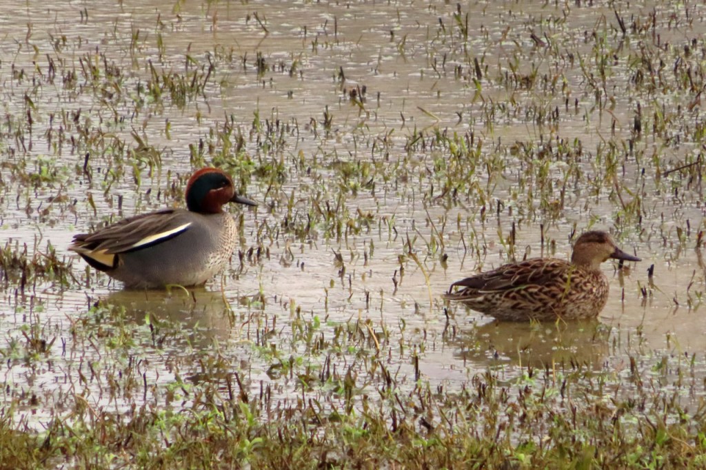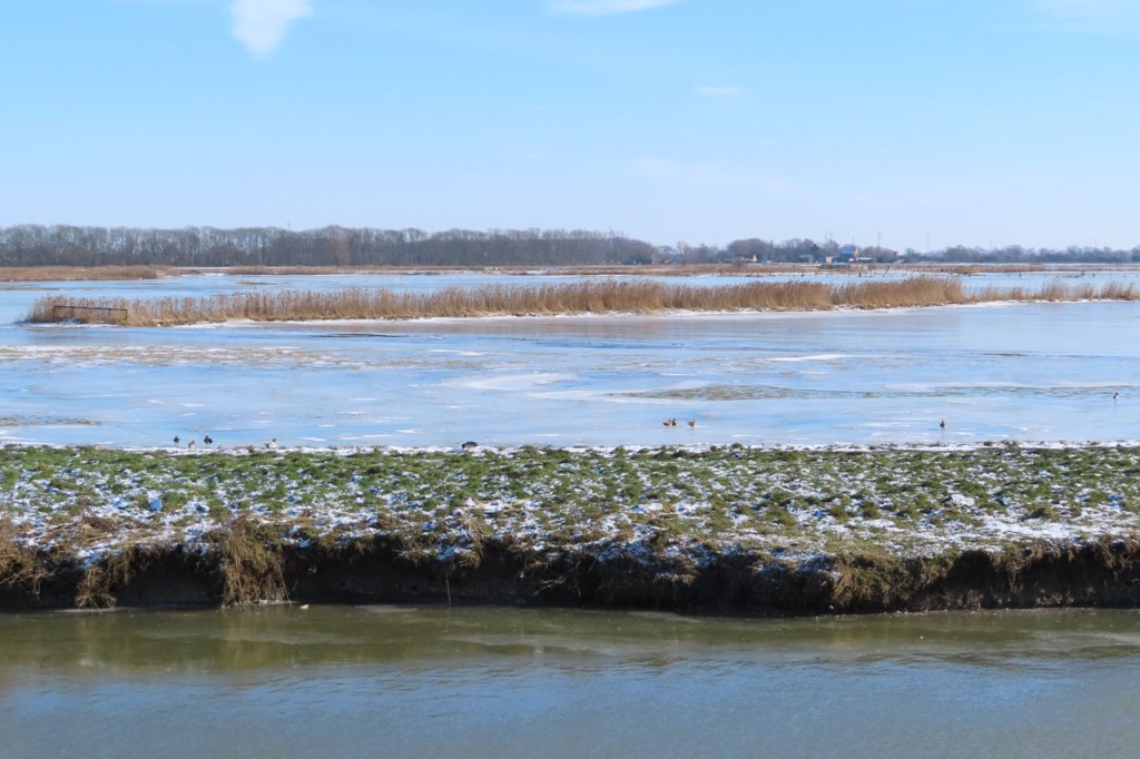 Omdat de regen al vrij vlug na de middag zou terugkeren beperkte ik mij tot een kleine wandeling rond de Verdronken Weide. Ik vreesde wel een beetje de conditie van het pad rondom maar dat viel al bij al nog redelijk mee. Op de Verdronken Weide kon nog steeds enigszins gewandeld worden, door eenden althans. Het zou vandaag trouwens zo’n beetje een eendensafari worden, er zaten nogal wat opvallende exemplaren.