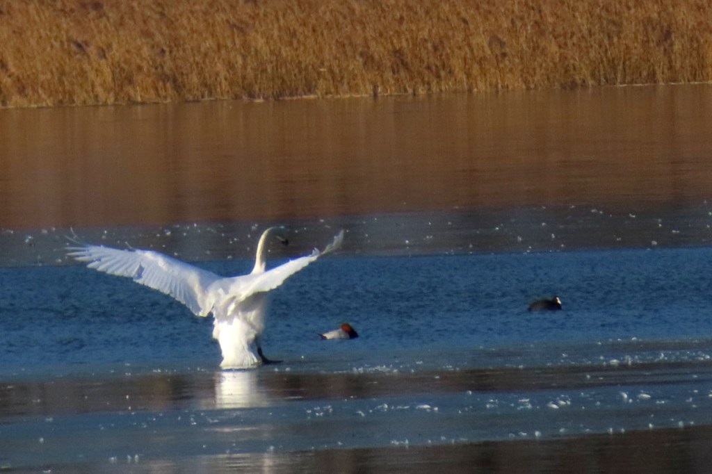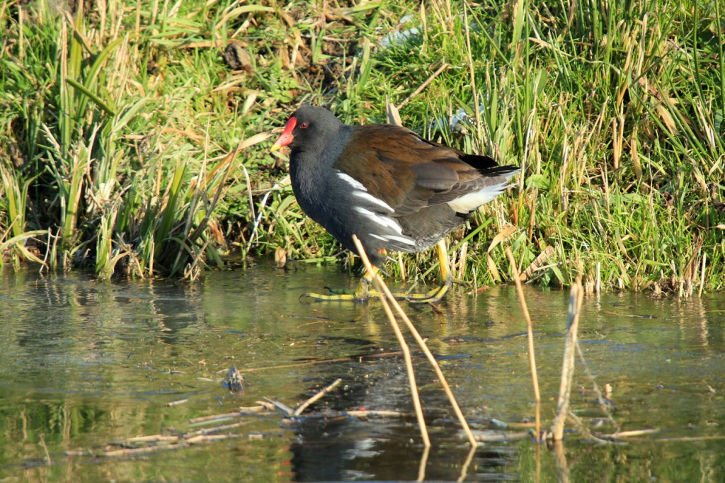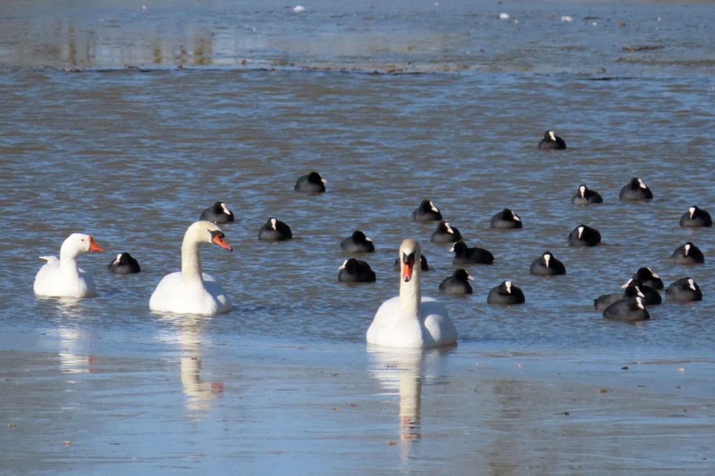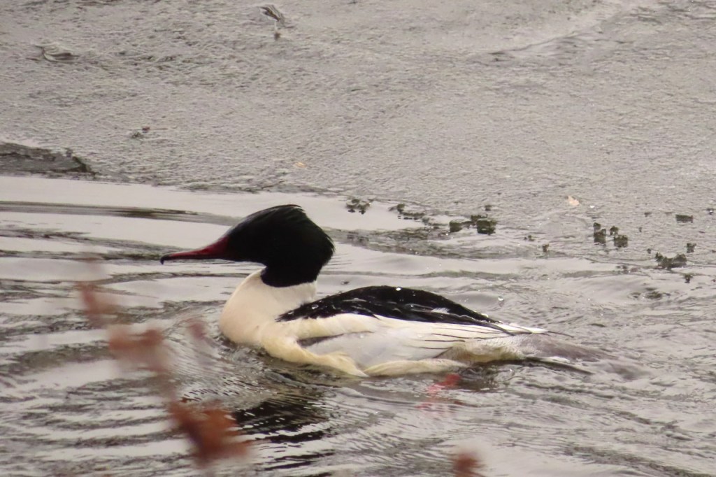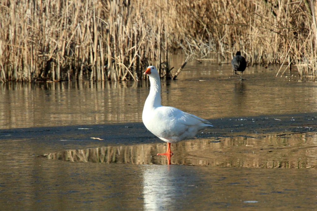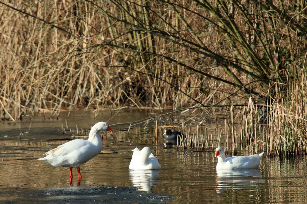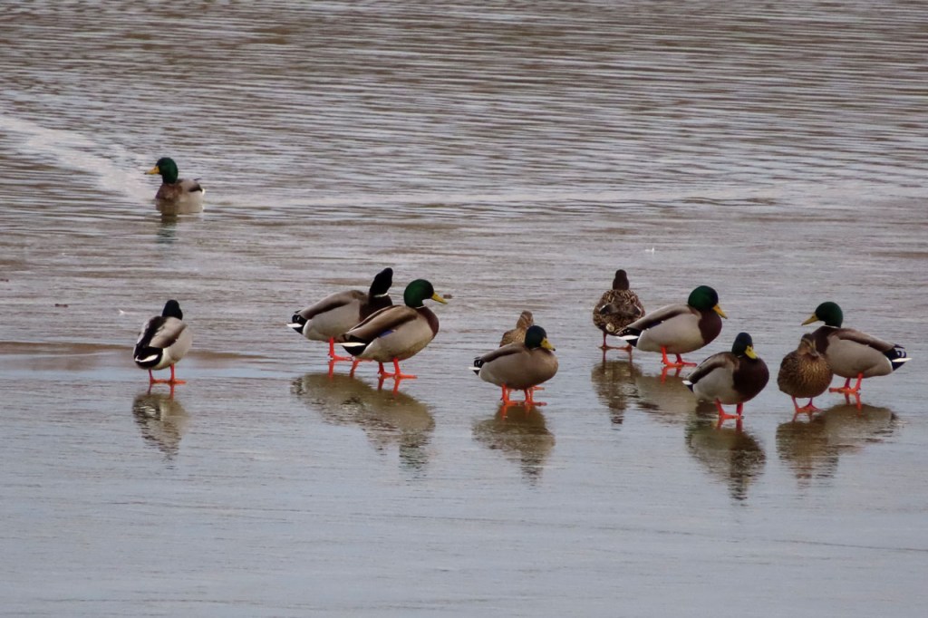 Omdat de regen al vrij vlug na de middag zou terugkeren beperkte ik mij tot een kleine wandeling rond de Verdronken Weide. Ik vreesde wel een beetje de conditie van het pad rondom maar dat viel al bij al nog redelijk mee. Op de Verdronken Weide kon nog steeds enigszins gewandeld worden, door eenden althans. Het zou vandaag trouwens zo’n beetje een eendensafari worden, er zaten nogal wat opvallende exemplaren.