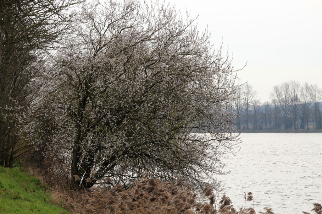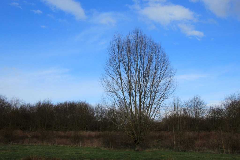 Ik heb op deze grijze voormiddag lang heen en weer geslingerd tussen fietsen of wandelen, dat beterde overigens niet toen er tegen de middag eerst nattigheid viel en wat later de zon even doorbrak. Uiteindelijk sloeg de slinger definitief richting wandelen. Met de bij momenten erg venijnige wind was ik daar ook achteraf nog best tevreden over.