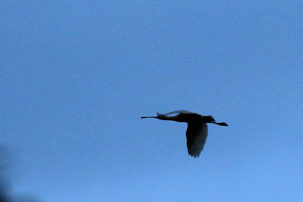 Je ziet ze niet dikwijls, de lepelaars, maar ze hangen toch nog altijd wel in de buurt rond, al begonnen deze vanavond weer net aan een verplaatsing naar elders. De foto stelt niet veel voor maar hij was er dus wel degelijk.