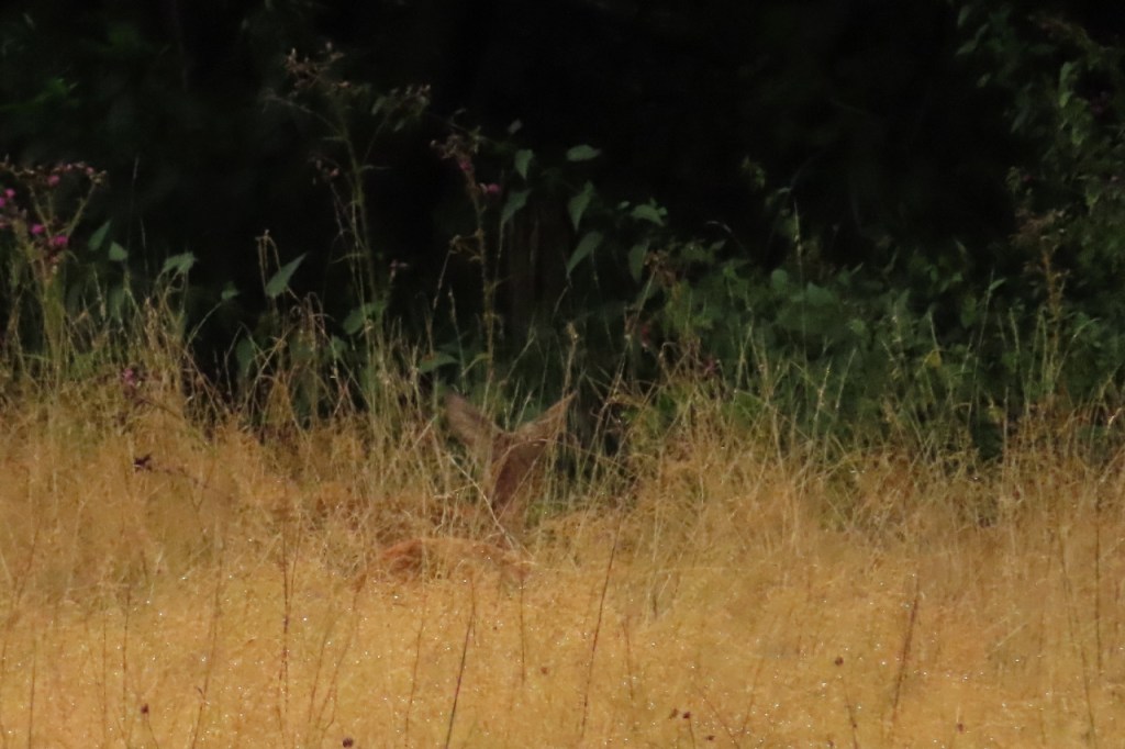 Omdat het er op leek dat het voor de middag wel droog zou blijven, ben ik vandaag maar begonnen met een ochtendritje. Ik heb nog een crossfiets die hier zijn vaste standplaats heeft en die ondertussen al een paar maanden stilstaat omdat ik telkens met die andere fiets naar huis kwam en in de weekends geen extra ritjes deed. Vandaag wou ik die dus nog eens in beweging brengen, alles werkt overigens nog zoals het hoort. Net voor thuiskomst, nabij de watermolen in Grobbendonk, spotte ik nog 2 reetjes. Veel is er op de foto niet van te zien maar ze staan er wel degelijk beiden op.