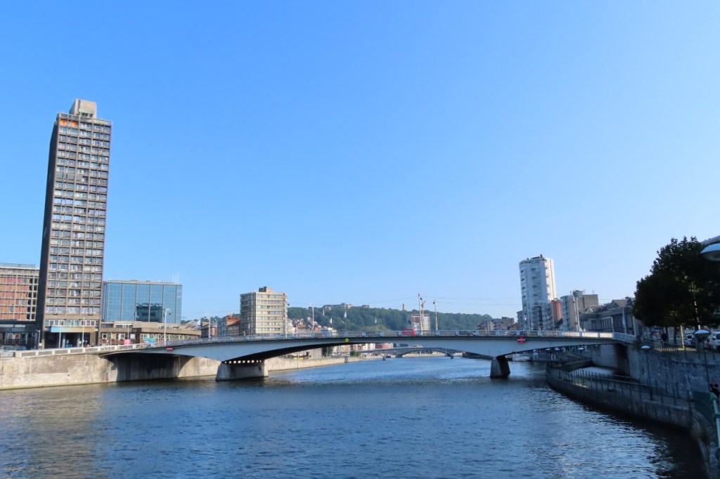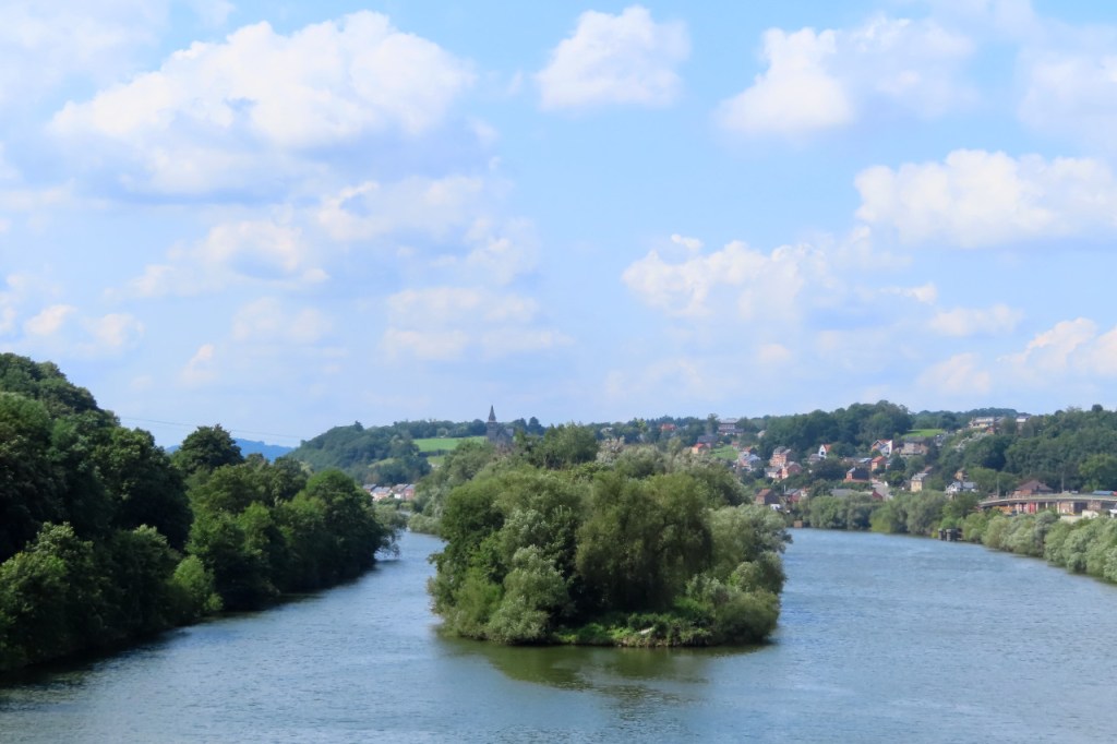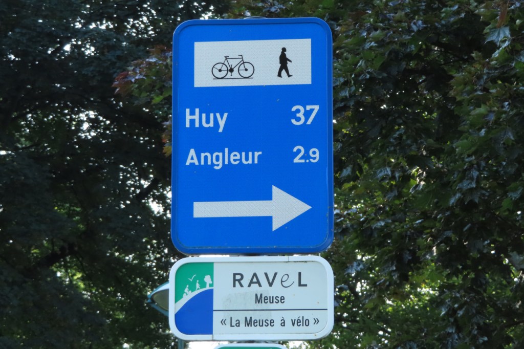 Ik heb vandaag toch weer een uitgestippelde route gevolgd. De Maas komt van Namen naar Luik en die zou ik dus volgen. Langs die Maas loopt ook een “Ravel”, de Waalse tegenhanger van onze Icoonroutes, en die zou ik dan maar volgen. Best dat ik dat besloten had, ik weet niet of ik anders in deze richting Luik uitgeraakt zou zijn. Je zou denken dat het simpel is, je legt een fietspad langs de oever en de toeristen zijn blij. Maar zo werkt het schijnbaar niet, de kronkels die ik heb moeten maken die zou ik zelf nooit gevonden hebben. Ik weet niet in welke mate fietsen langs de grote weg naast de Maas toegelaten was maar het leek me eigenlijk niet. De weg werd overigens wel goed aangegeven. Ik ging wel eens verkeerd, plots zat ik op de Ravel langs de Ourthe, in plaats van de Maas, maar dat was mijn eigen fout. Ik dacht even van het beter te weten dan de bordjes 🙂 .