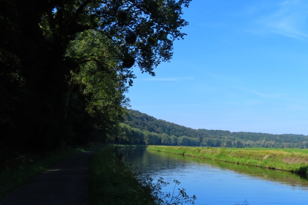 Ik liet vanmorgen de Maas achter voor de Samber, die ik zou volgen tot Charleroi. Hier ligt wel de hele weg een pad langs de rivier maar de staat van het wegdek laat veel te wensen over, dikwijls ruw of kapot beton of asfalt. Vanaf Charleroi zou ik, tenzij ik ter plaatse een alternatief zou opmerken, de grote weg naar Mons nemen. Een alternatief ben ik niet tegengekomen maar de juiste grote weg vond ik wel al snel. Dat dit niet de mooiste weg zou worden besefte ik sowieso al wel maar dat het zo erg zou worden dat had ik niet verwacht, het moet met de auto al geen pretje zijn en met de fiets dus helemaal niet. Bovendien is er links of rechts ook niets om naar te kijken. Hij bracht me echter wel recht naar doel, zonder twijfels onderweg.