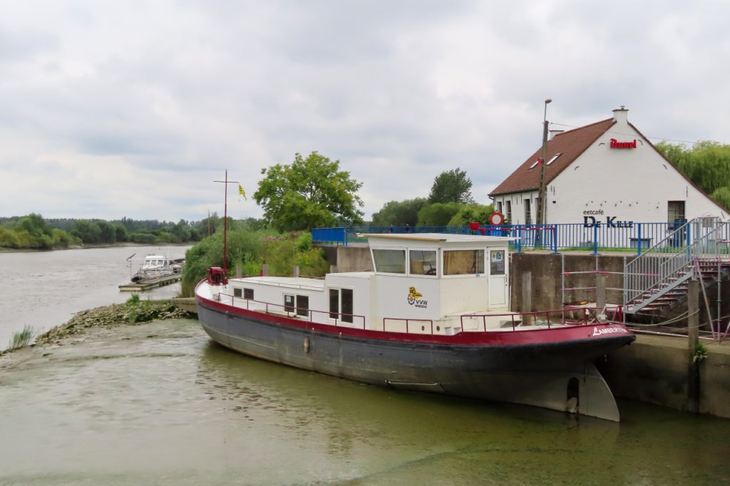 In Temse stak de oude route niet terug de Schelde over maar bleef aan de rechterkant om wat verder voor de Rupel en de Nete te kiezen om richting de Kempen te rijden. Daar kwam ook wel weer een veer bij te kijken om de Rupel over te steken. Mijn “veer timing” was goed vandaag, ook hier moest ik maar 5 minuutjes wachten.