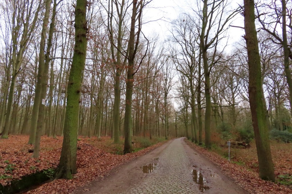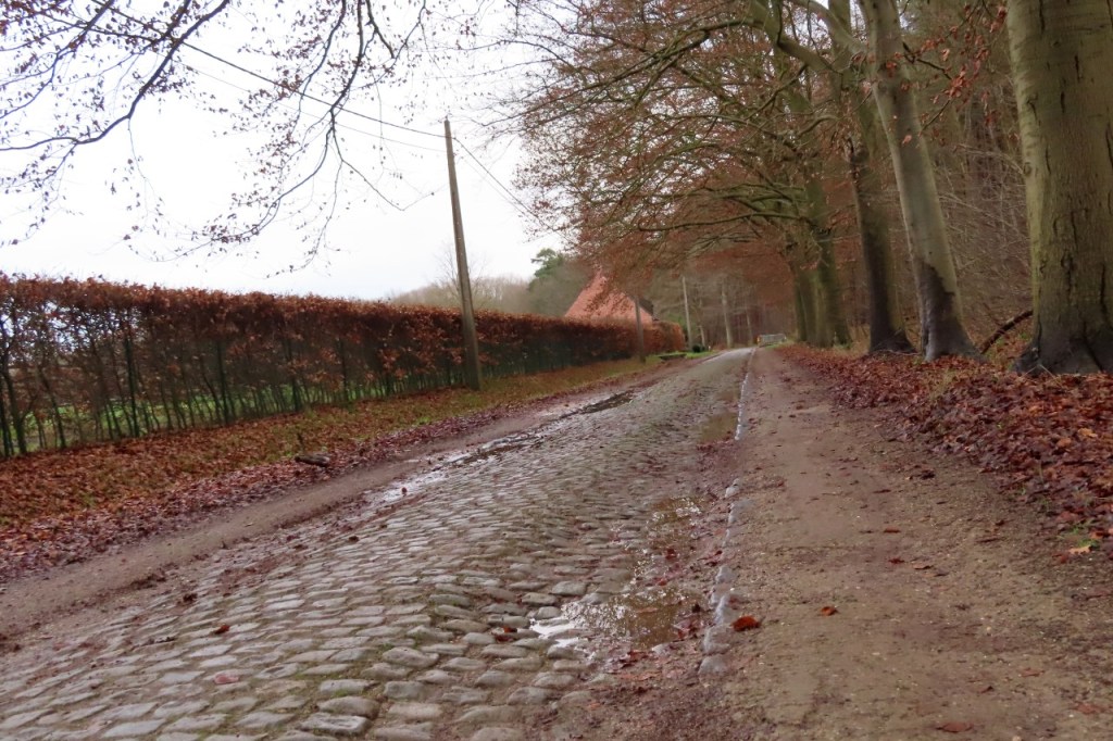 Vandaag heb ik wel de wind getrotseerd om nog een laatste ritje te doen dit jaar. Er was allicht al iets minder wind dan gisteren maar het was toch nog dikwijls stoempen. Ik passeerde, tussen Viersel en Pulderbos, nog eens langs het stukje “hel” in de Kempen. Gelukkig ligt er een bruikbaar pad naast de kasseien, waardoor je er inderdaad langs kunt rijden 🙂 .
