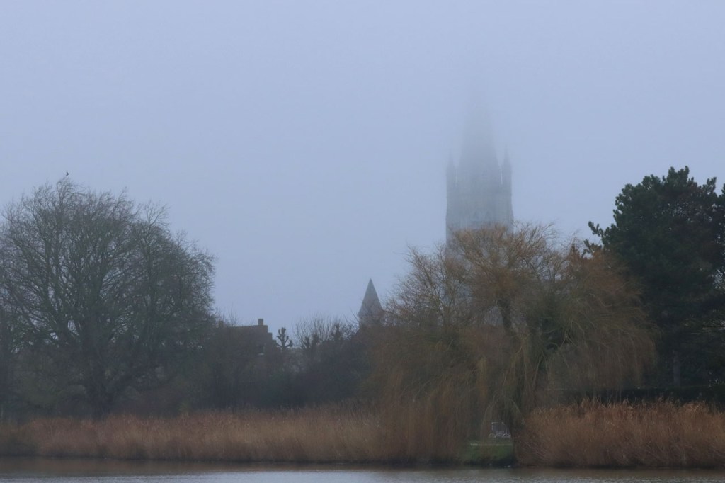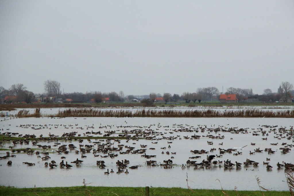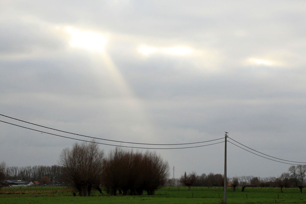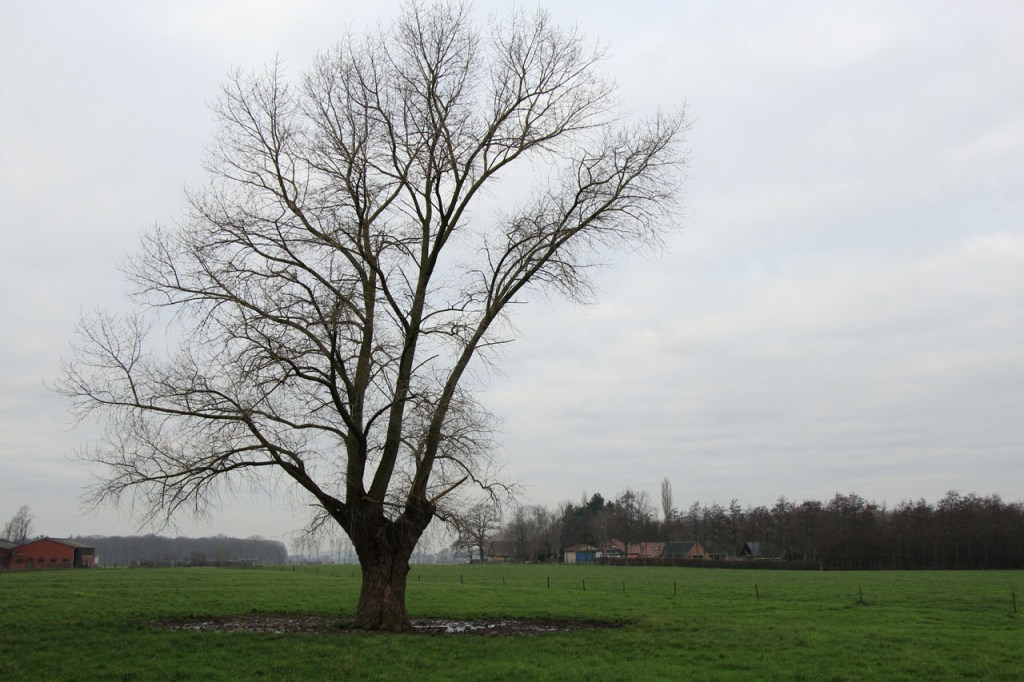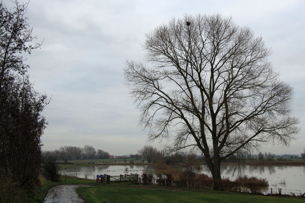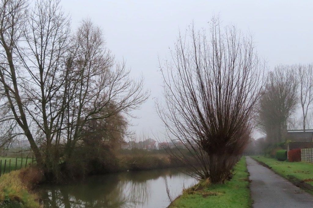 Ik heb er lang aan gedacht om vandaag te fietsen maar de wegen waren de afgelopen dagen wel behoorlijk vettig en vochtig en omdat het toch wel lang bleef vriezen vreesde ik dat die wegen op schaduwrijke plaatsen mogelijk nog wat glad zouden kunnen zijn en dus koos ik toch voor een wandeling. Tijdens die wandeling bleek mijn vrees ongegrond, de wegen waren mooi droog. Nu is een wandeling in deze omstandigheden natuurlijk ook altijd mooi. Zeker wanneer dan blijkt dat je ook op de “Dikkebus Vijver route” gewoon reeën kunt tegenkomen, in de velden onder het Tortelbos 🙂 . Het waren er drie maar ik vrees dat er eentje de oversteek niet overleefd heeft. Even later hoorde ik namelijk, van achter een villa, een zwaar geweerschot en nog wat verder zag ik er in de verte nog maar twee staan treuzelen bij een hindernis 😦 .