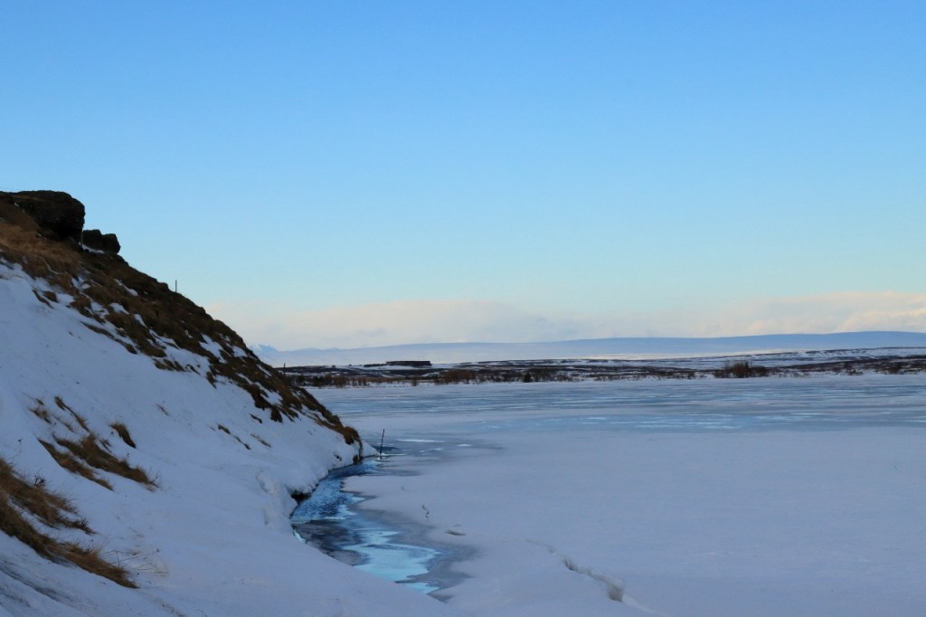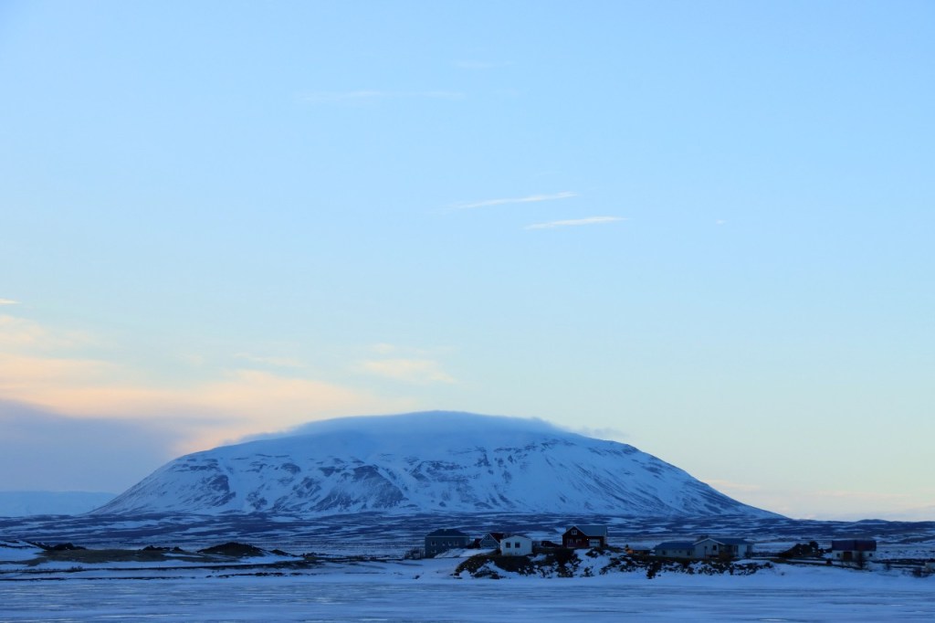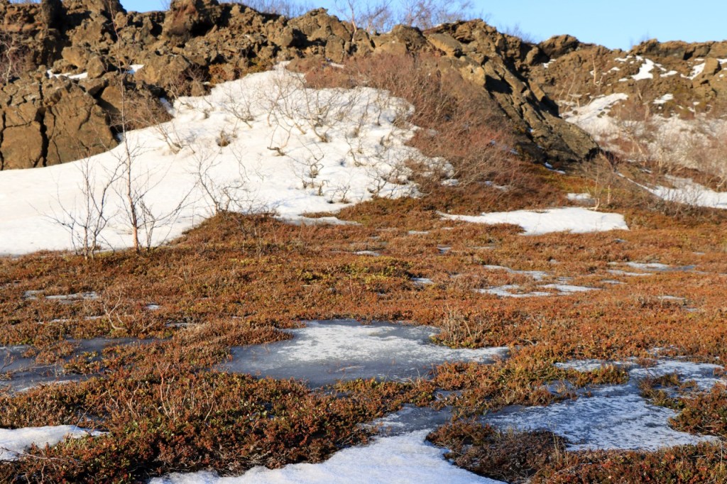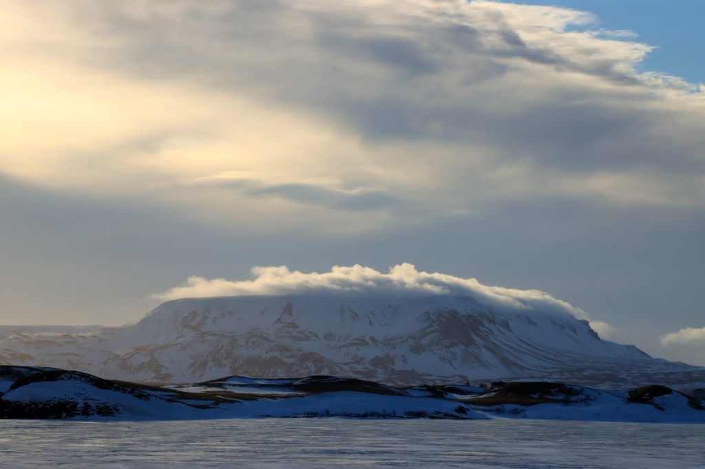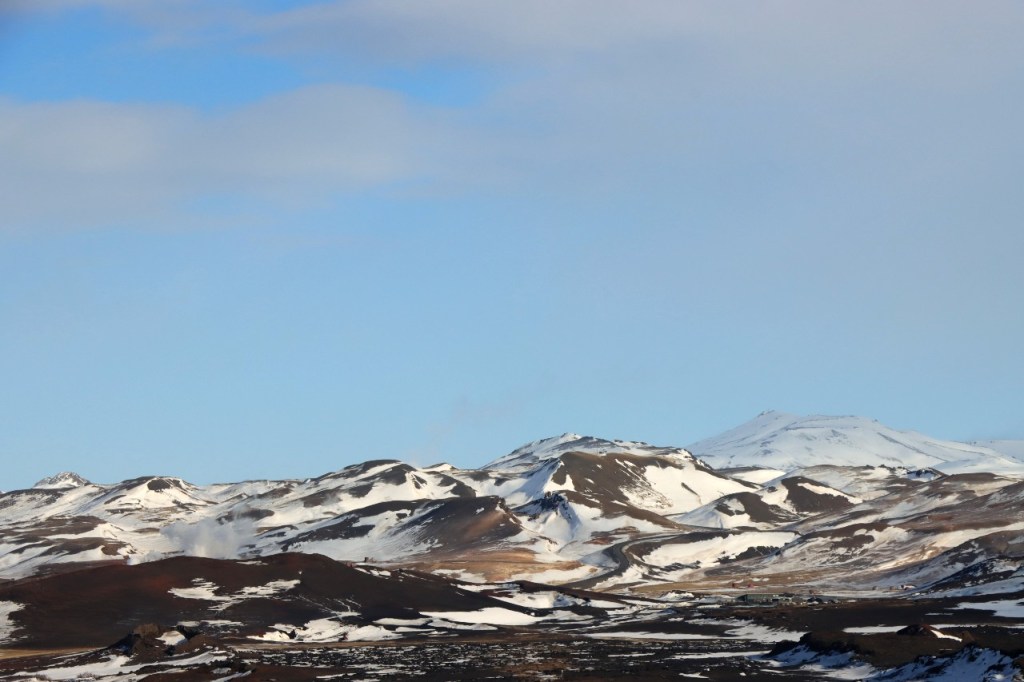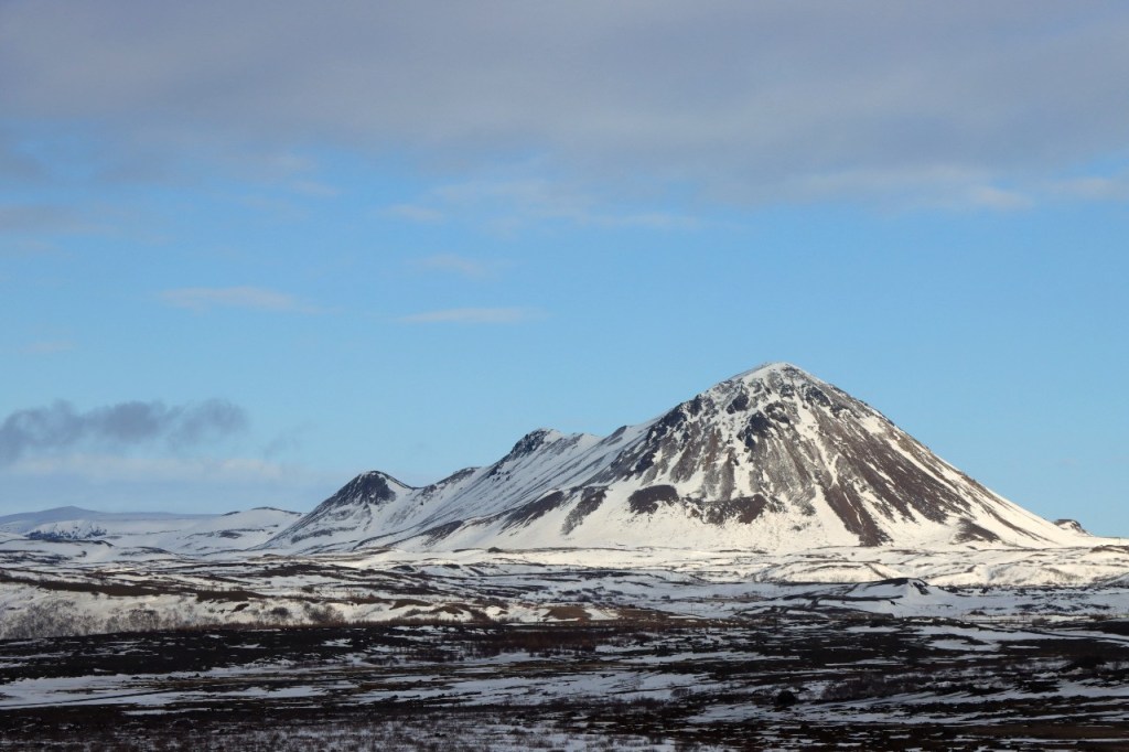 We begonnen de dag met een wandeling op het water 😉 , op het bevroren meer dus. Het voelt een beetje tegen het instinct om te wandelen op smeltend ijs maar onder die wat smeltende bovenlaag zit natuurlijk nog wel ruim een halve meter. Gisteren werden er, terwijl wij weg waren, nog paardenraces gehouden op het ijs. Na het ijs wandelden we voor de middag nog op de vulkaan.