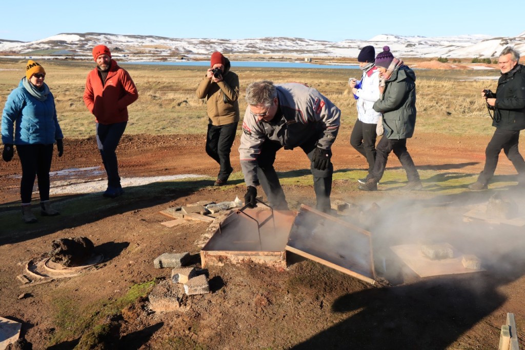 Na de lunch kwamen we toevallig de hotelbaas tegen die zijn brood voor morgen kwam bakken. Ruim een halve dag in een pot onder de grond en het brood is gebakken.
