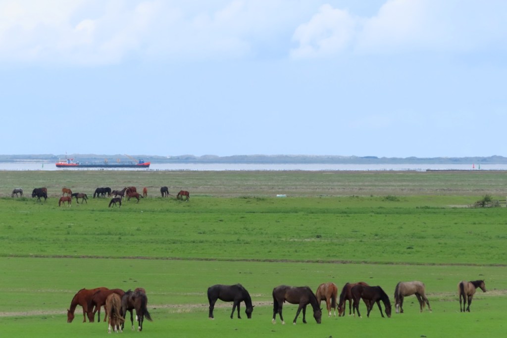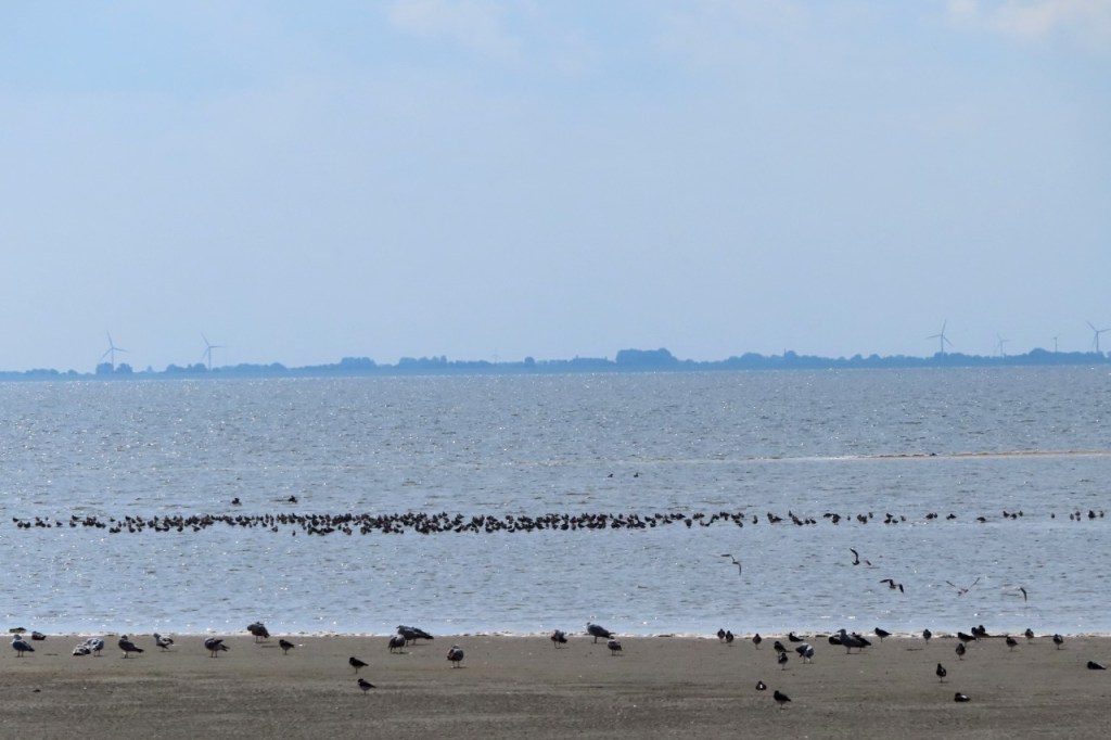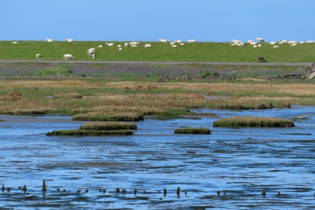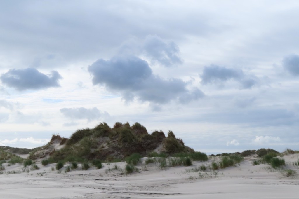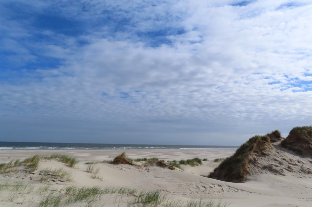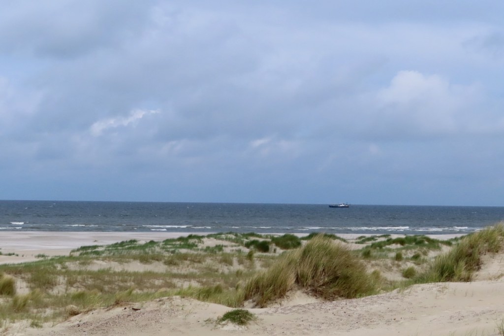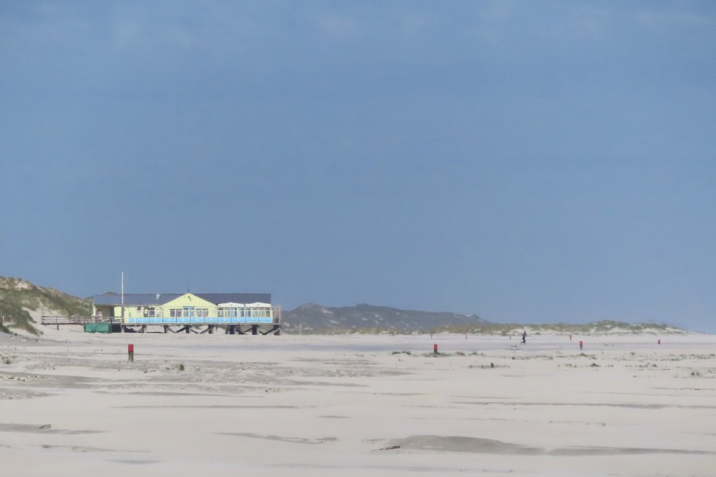 Ik begon met mijn klassieke rondje van het eiland. Het was hoogtij op het wad, daar heb ik als dusdanig dus weinig van gezien maar ook bij hoogtij is het er wel wondermooi. Na de middag, even voorbij halfweg, voelde ik echter mijn achterband stilletjes zachter worden, een eerste lekke band in 14 jaar met dit soort fietsen en banden. Het andere deel van het eiland heb ik dus niet gezien. Omdat het met Rohloff naaf en aandrijfriem nogal een gedoe is met het achterwiel, en omdat ik de mogelijkheid had, besloot ik om ermee naar een fietshersteller te gaan in plaats van er zelf aan te beginnen. Hij kon er niet onmiddellijk aan beginnen maar ik zou hem later op de middag mogen oppikken. Ik ging dan maar te voet verder naar de camping en maakte daar nog een klein toertje over het strand. Daarna restte niets dan met een toch wat bang hartje wachten om de fiets terug te gaan ophalen, je weet tenslotte niet echt wat soort mekanieker het is en in welke mate hij ervaring heeft met Rohloff en aandrijfriem. Hij was wel onderhoudsman bij een fietsverhuurbedrijven dat is op de Waddeneilanden geen big maar huge business, je mag er dan toch enigszins van uitgaan dat hij best wel goed moet zijn. Je kan je dat trouwens niet voorstellen wat het is, fietsverhuur op de Waddeneilanden. Op elk van de eilanden zijn er wel enkele tot behoorlijk veel fietsverhuurders en die hebben elk honderden fietsen rondbollen, het is echt onvoorstelbaar. Hoe dan ook, uiteindelijk heeft de goede man mijn band niet vervangen maar mooi geplakt. Als hij het morgen ook houd is dus alles weer dik in orde.