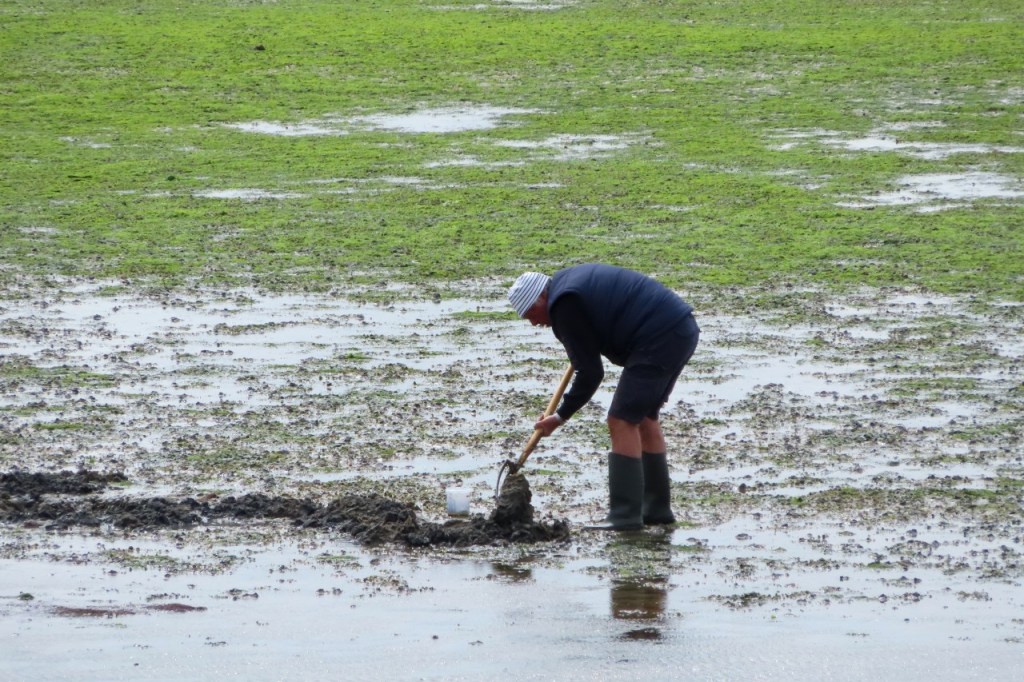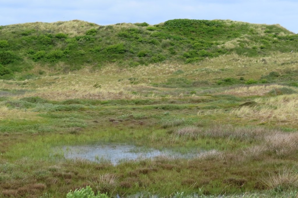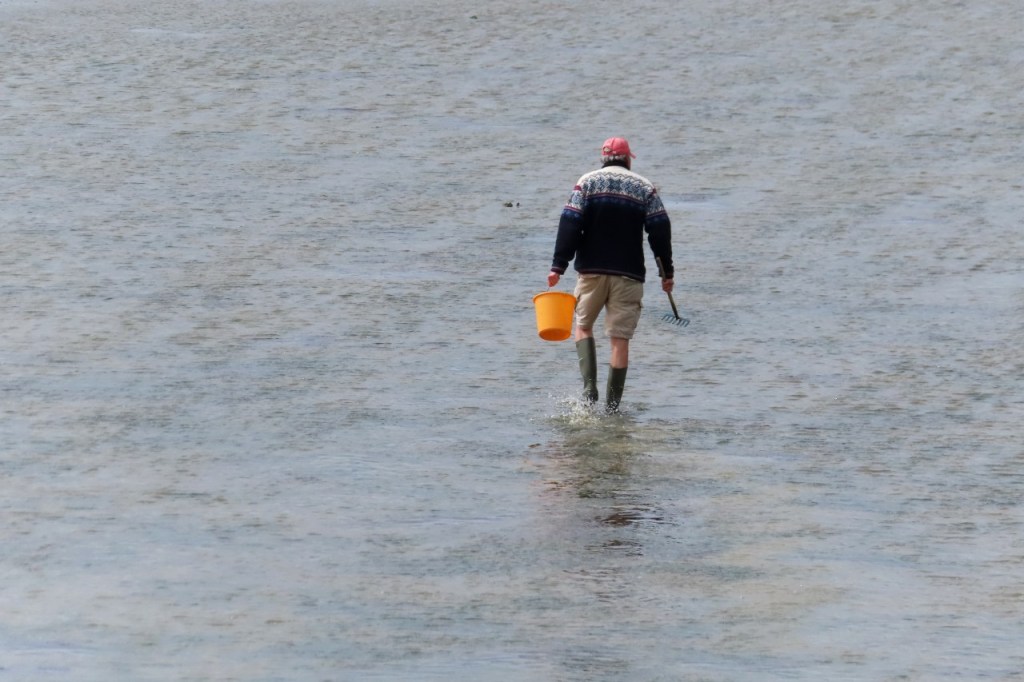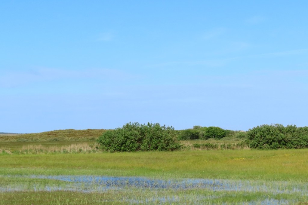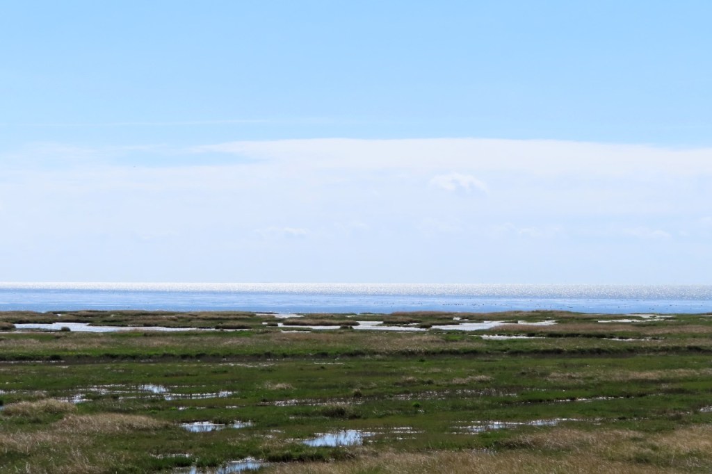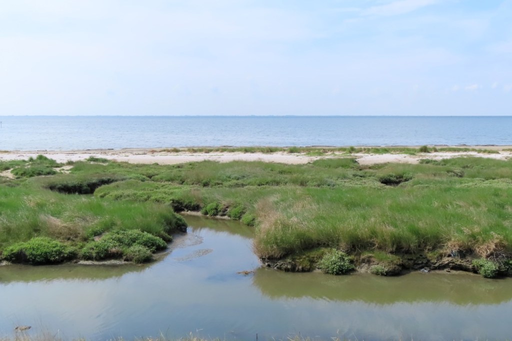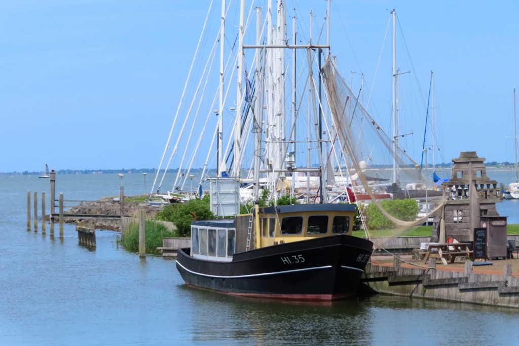 Ik begon met mijn klassieke rondje van het eiland. Het was hoogtij op het wad, daar heb ik als dusdanig dus weinig van gezien maar ook bij hoogtij is het er wel wondermooi. Na de middag, even voorbij halfweg, voelde ik echter mijn achterband stilletjes zachter worden, een eerste lekke band in 14 jaar met dit soort fietsen en banden. Het andere deel van het eiland heb ik dus niet gezien. Omdat het met Rohloff naaf en aandrijfriem nogal een gedoe is met het achterwiel, en omdat ik de mogelijkheid had, besloot ik om ermee naar een fietshersteller te gaan in plaats van er zelf aan te beginnen. Hij kon er niet onmiddellijk aan beginnen maar ik zou hem later op de middag mogen oppikken. Ik ging dan maar te voet verder naar de camping en maakte daar nog een klein toertje over het strand. Daarna restte niets dan met een toch wat bang hartje wachten om de fiets terug te gaan ophalen, je weet tenslotte niet echt wat soort mekanieker het is en in welke mate hij ervaring heeft met Rohloff en aandrijfriem. Hij was wel onderhoudsman bij een fietsverhuurbedrijven dat is op de Waddeneilanden geen big maar huge business, je mag er dan toch enigszins van uitgaan dat hij best wel goed moet zijn. Je kan je dat trouwens niet voorstellen wat het is, fietsverhuur op de Waddeneilanden. Op elk van de eilanden zijn er wel enkele tot behoorlijk veel fietsverhuurders en die hebben elk honderden fietsen rondbollen, het is echt onvoorstelbaar. Hoe dan ook, uiteindelijk heeft de goede man mijn band niet vervangen maar mooi geplakt. Als hij het morgen ook houd is dus alles weer dik in orde.