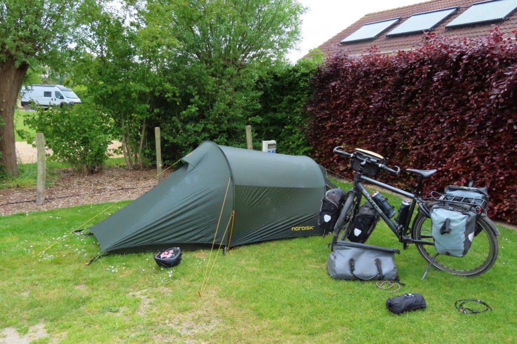 De camping van gisteren was een voltreffer. Het wemelt van campings in de omgeving van Cadzand maar ik besloot de eerste de beste te nemen en dat bleek ze ook te zijn: mooi, kalm en compact, meer moet dat voor de fietskampeerder niet zijn.