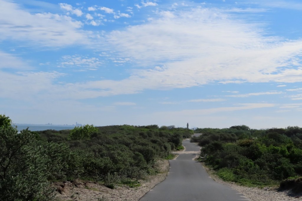 Aan de overkant ging het ook weer langs de kust verder. Daarbij had ik een hele tijd de wind in het nadeel, een stuk minder leuk dus. Pas na de bocht bij Westkapelle, na 20 Km, kreeg ik hem terug in de rug. Af en toe zat er in de duinen ook al eens een scherp klimmetje.