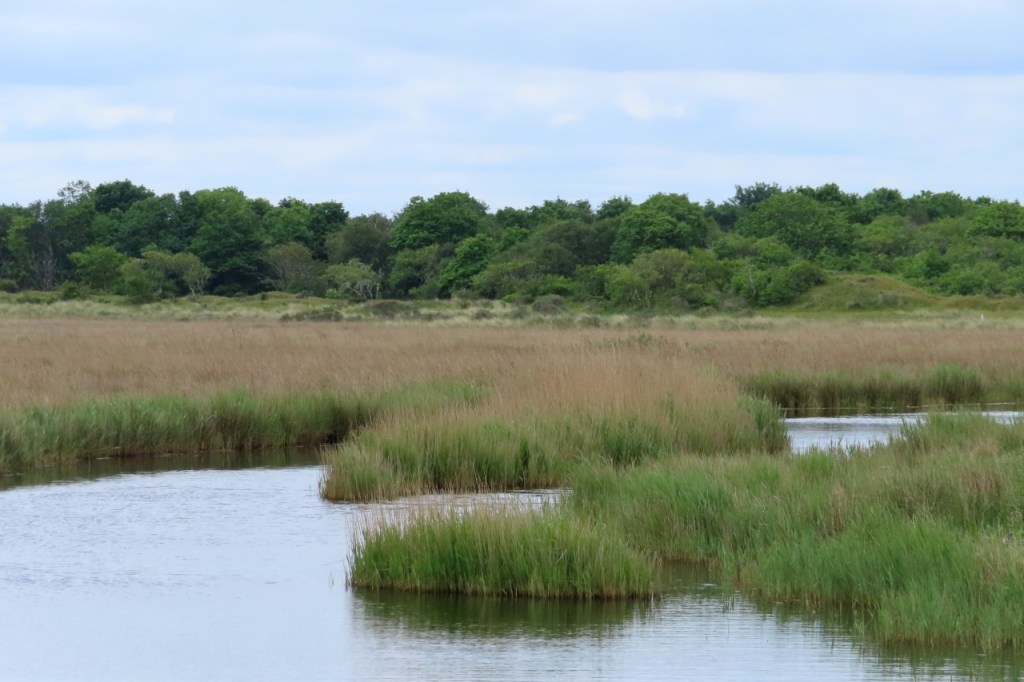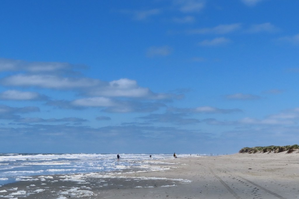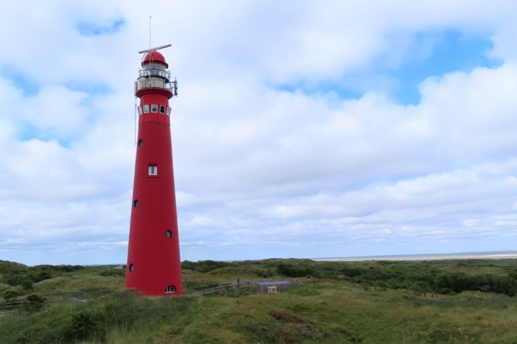 Deze voormiddag maakte ik een rondje van het eiland. Na dat rondje maakte ik nog een lusje langs de witte toren en het supermarktje. De rode toren is nog steeds actief maar de witte niet meer. Boven op de witte toren staat een monnik, het symbool van Schiermonnikoog. Eten deed ik gewoon aan mijn tentje en daarna maakte ik nog een wandeling, over het strand en door het bos.