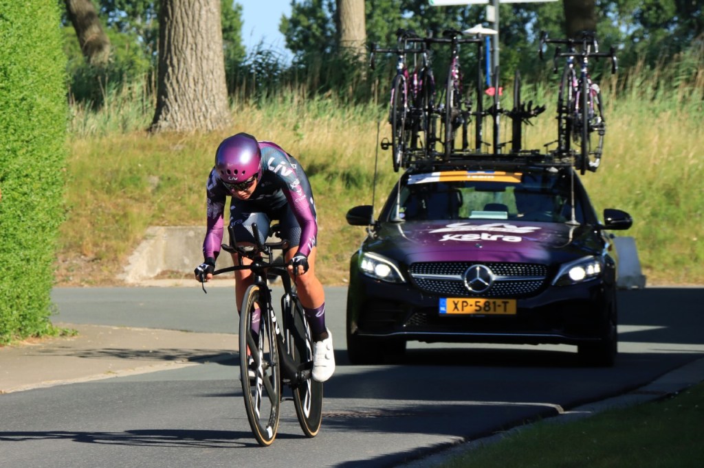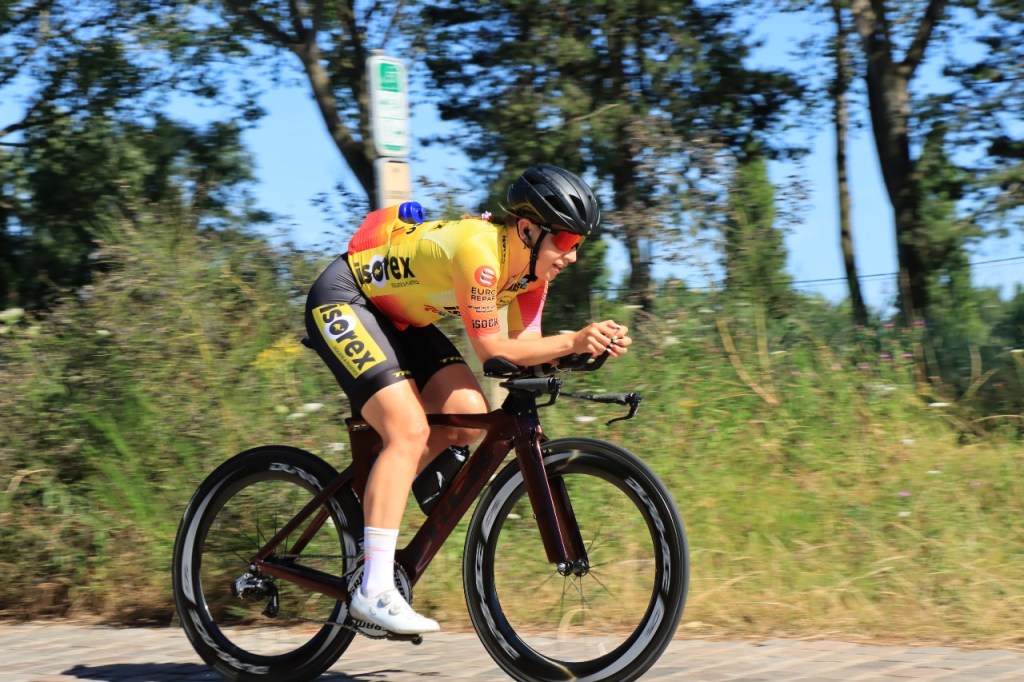Ik bleef tijdens de tijdrit niet wachten tot de toppers zouden passeren, dan dreigde het wel heel erg laat te worden. Het liep nu al tegen zonsondergang tegen dat ik terug thuis was. Gelukkig was de wind nog niet gedraaid en had ik hem op de terugrit dus wel veelal in steun.