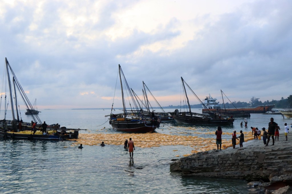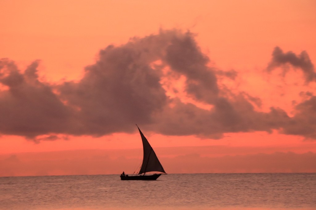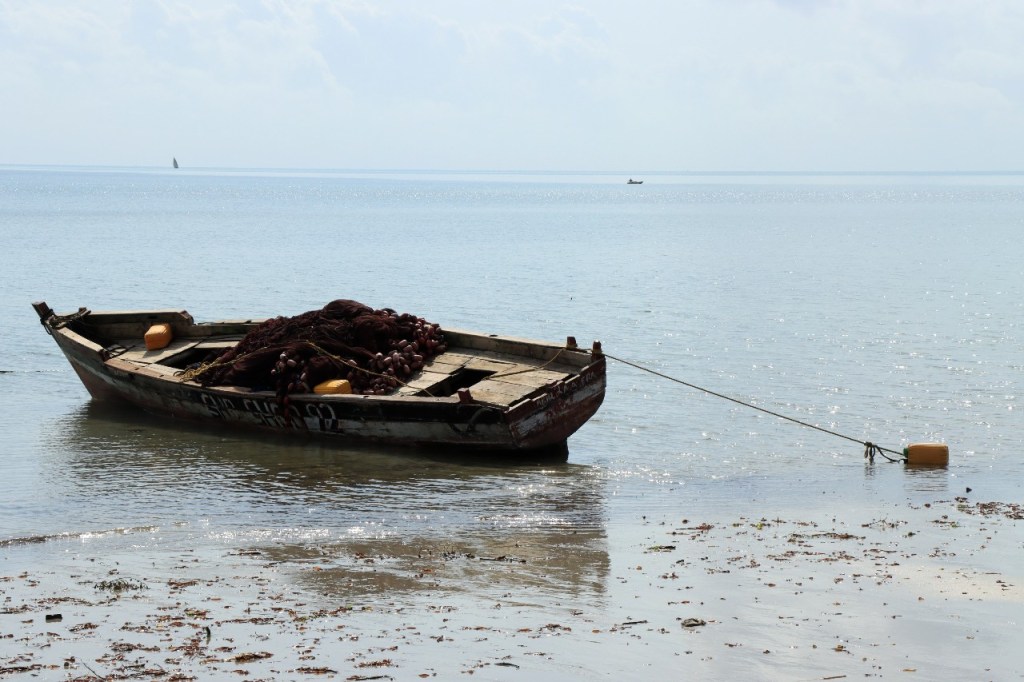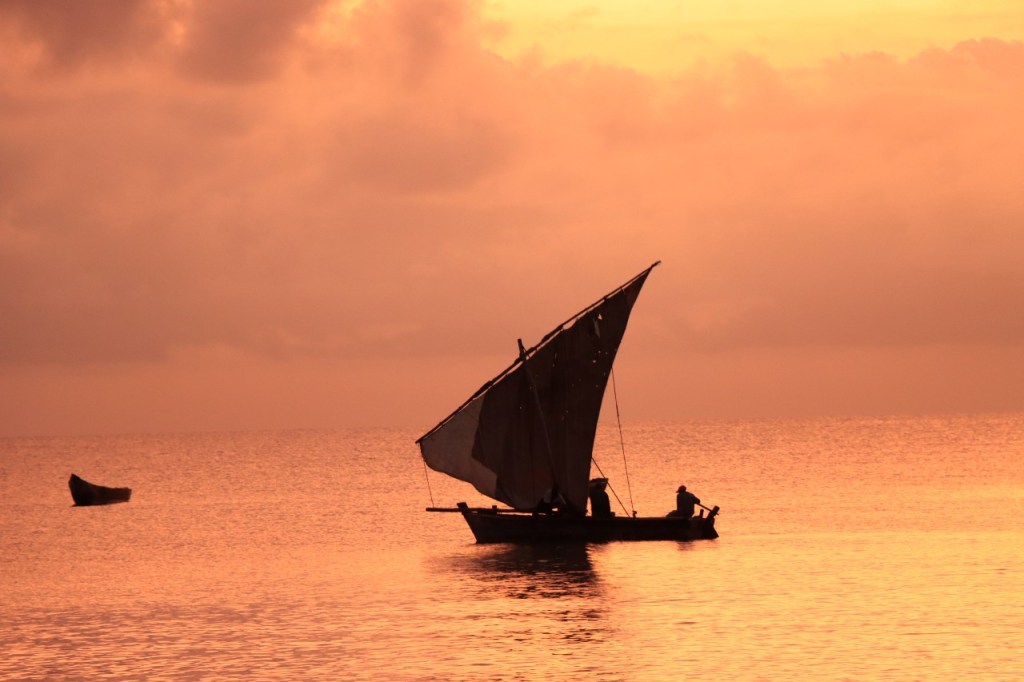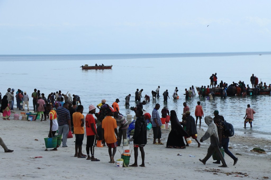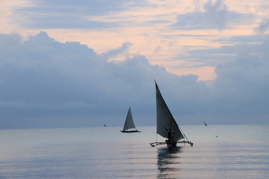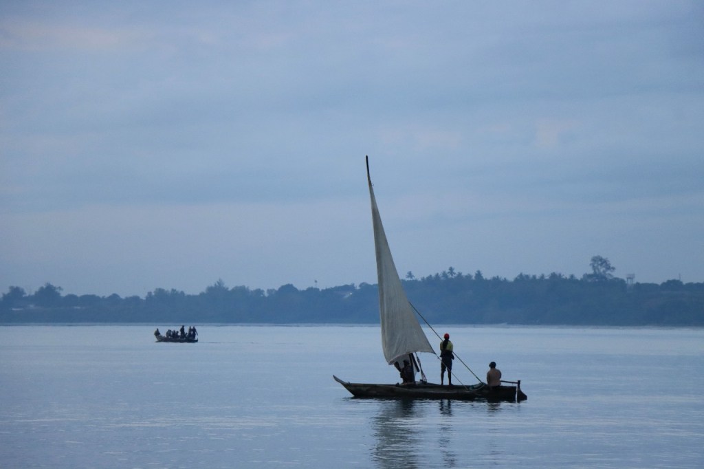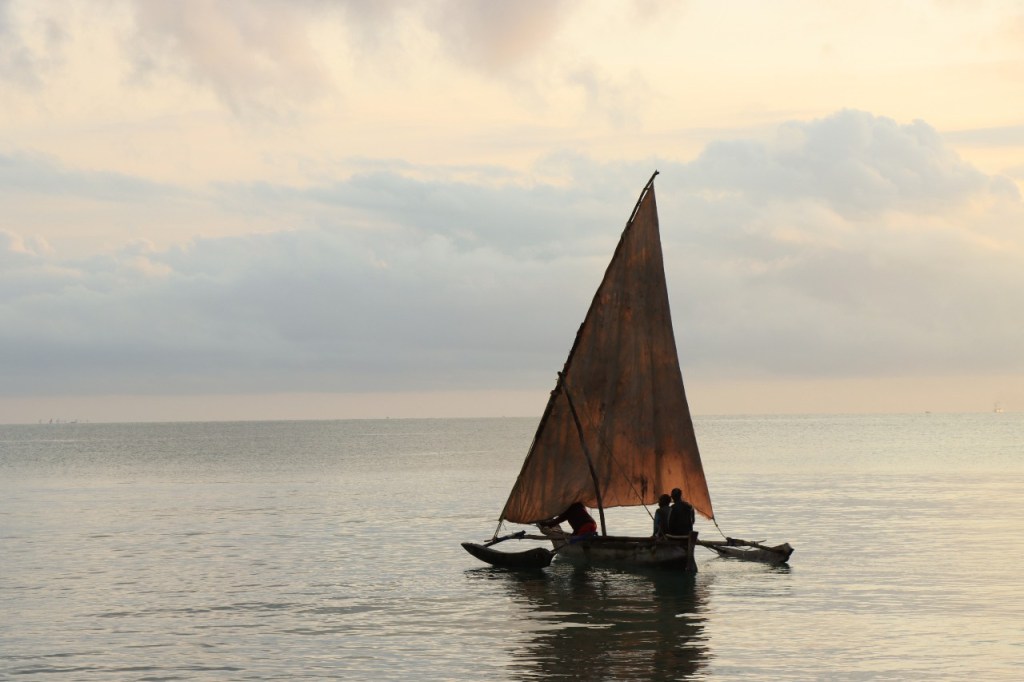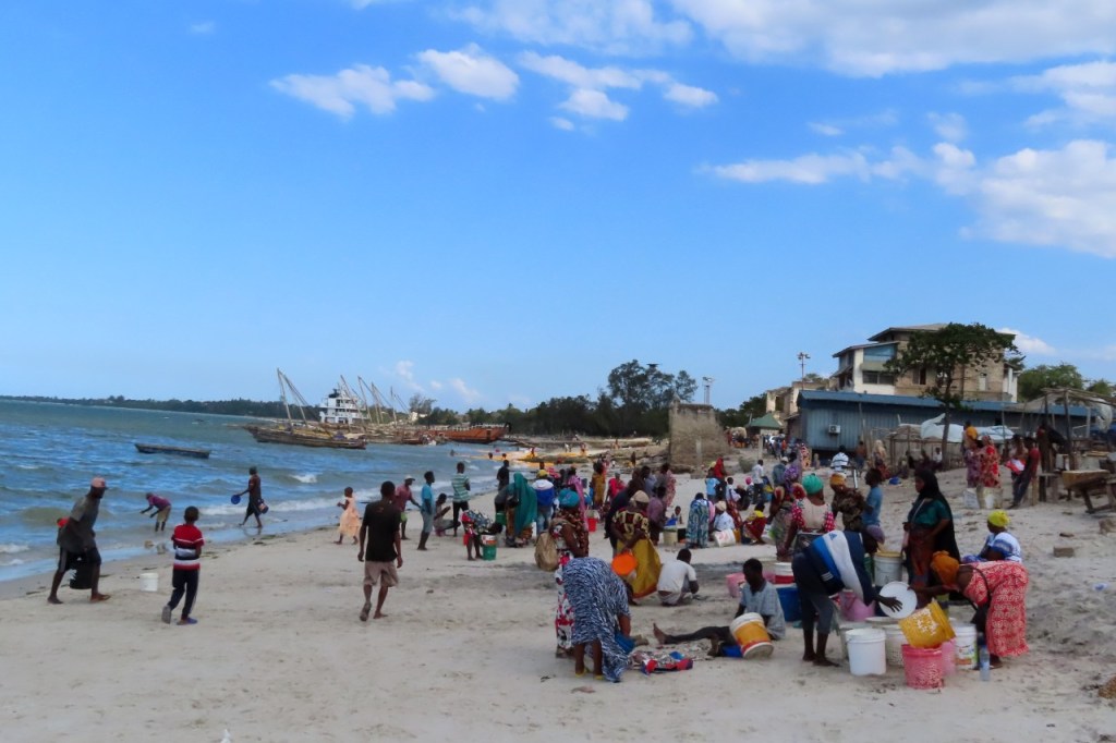Wat vandaag nog betreft, die begon al vroeg met, samen met enkele anderen, een wandeling over het strand naar de vismarkt. Na het afscheid van de groep deed ik die wandeling nog eens over en ging dan verder door het oude Bagamoyo, een best interessante plaats. Het kruis merkt het einde van de slavenroute vanuit het binnenland. Van Bagamoyo werden ze overgebracht naar Zanzibar, vanwaar ze dan weer verscheept werden naar de Arabische wereld. De hitte van de dag liet ik passeren in de schaduw van de lounge, ondertussen mijn achterstand in posts wegwerkend. In de latere namiddag, er stond ondertussen een stevige zeebries, ging nog een derde keer richting vismarkt. De boten begonnen nu terug te keren.