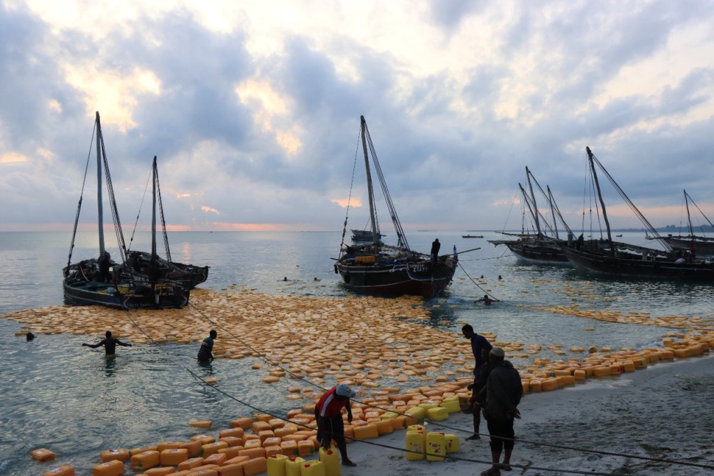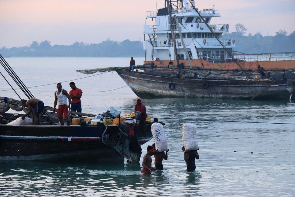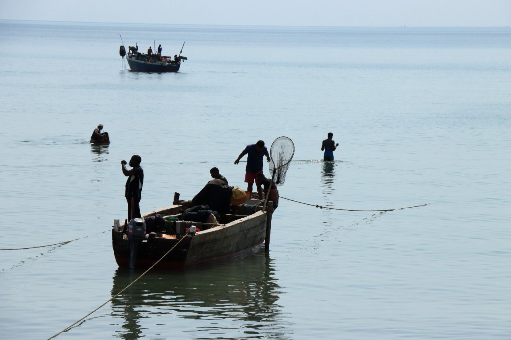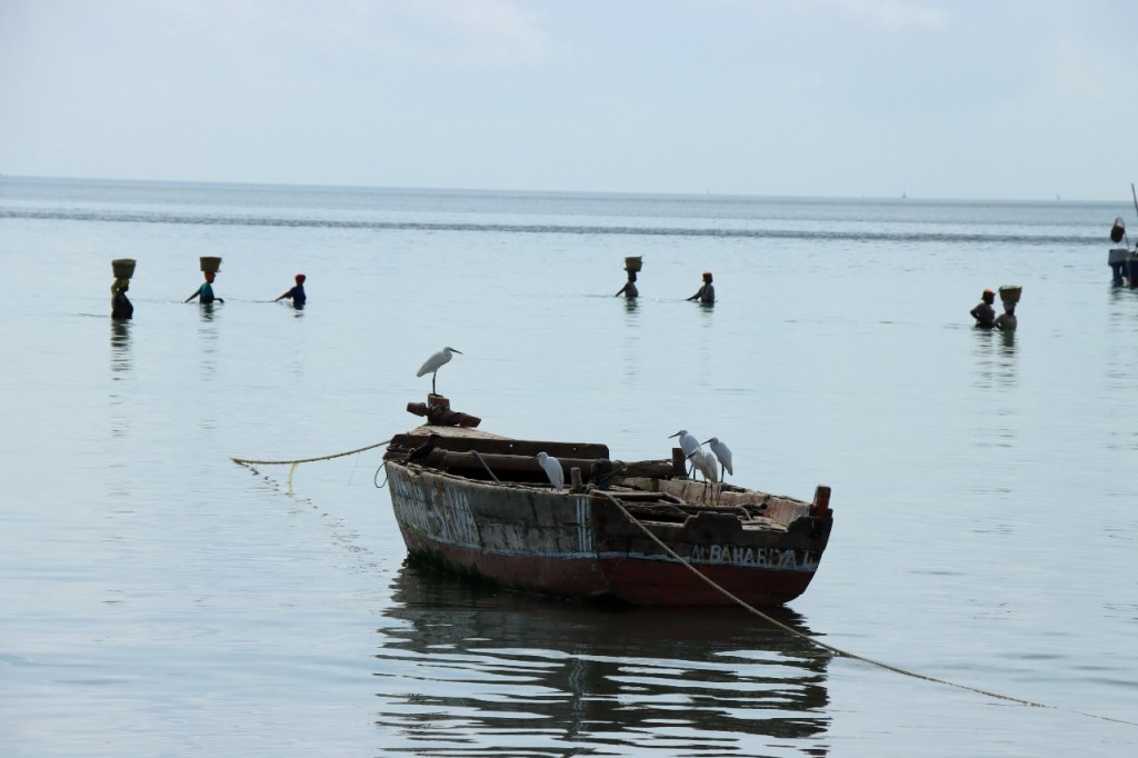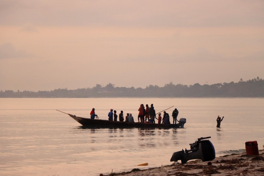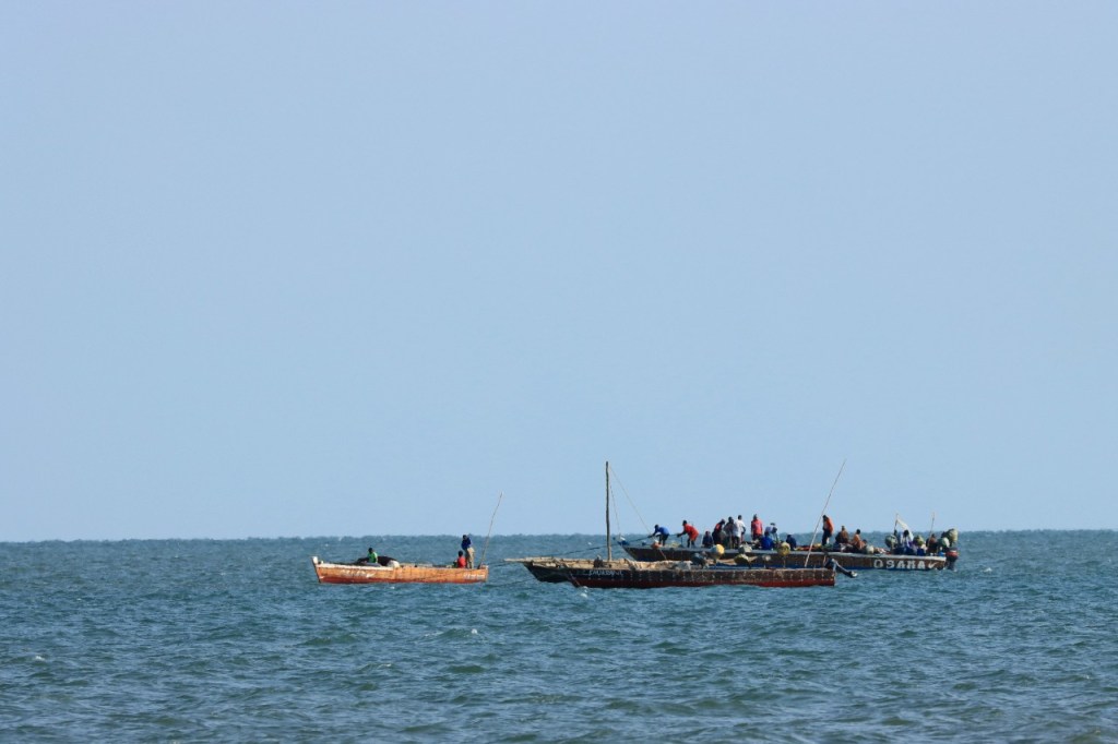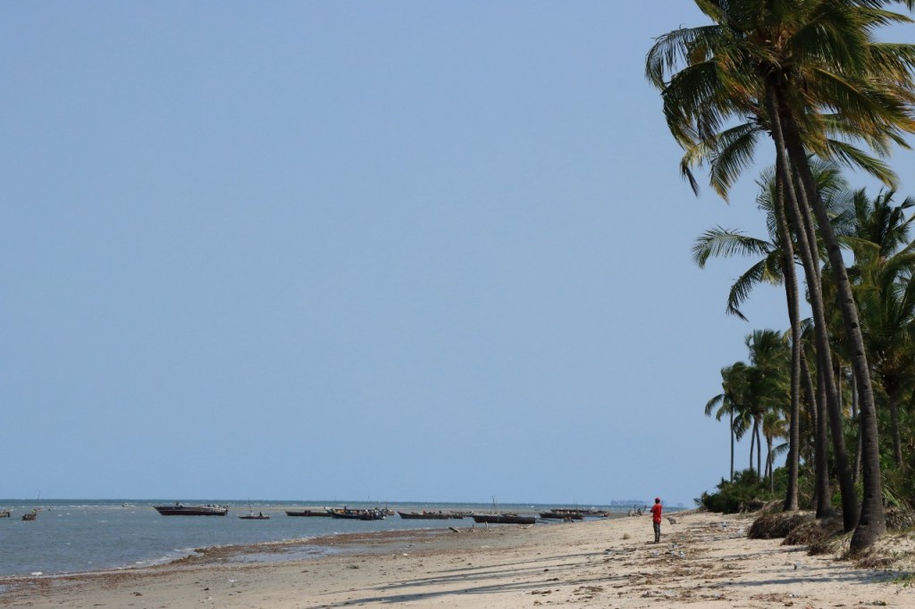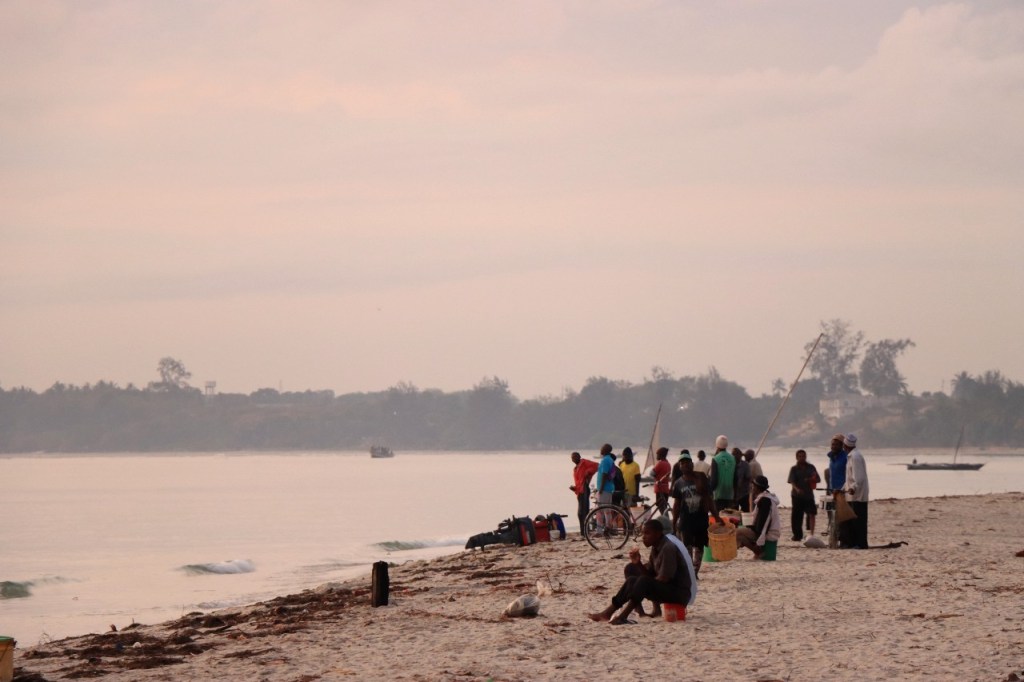 Wat vandaag nog betreft, die begon al vroeg met, samen met enkele anderen, een wandeling over het strand naar de vismarkt. Na het afscheid van de groep deed ik die wandeling nog eens over en ging dan verder door het oude Bagamoyo, een best interessante plaats. Het kruis merkt het einde van de slavenroute vanuit het binnenland. Van Bagamoyo werden ze overgebracht naar Zanzibar, vanwaar ze dan weer verscheept werden naar de Arabische wereld. De hitte van de dag liet ik passeren in de schaduw van de lounge, ondertussen mijn achterstand in posts wegwerkend. In de latere namiddag, er stond ondertussen een stevige zeebries, ging nog een derde keer richting vismarkt. De boten begonnen nu terug te keren.