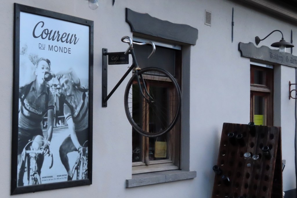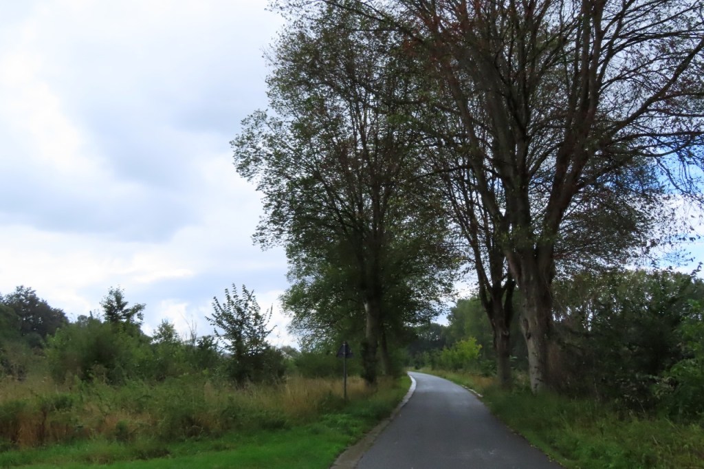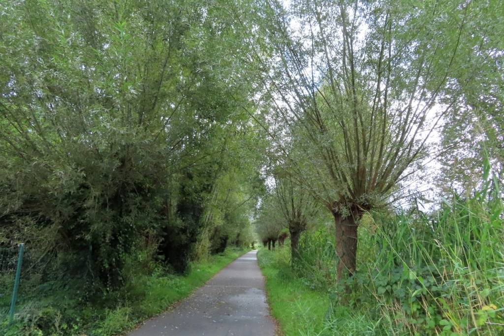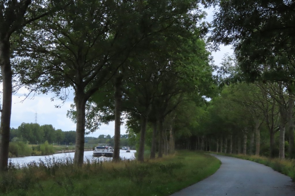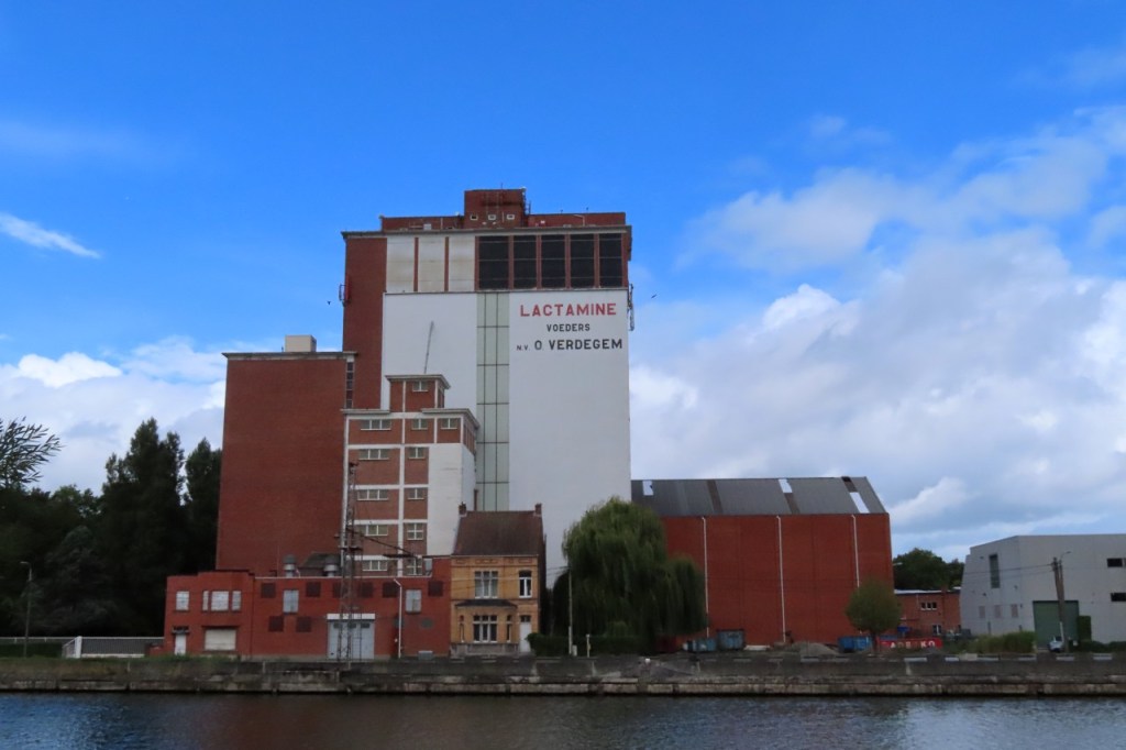 De randen van mijn fietsschoenen waren nog niet helemaal droog van zaterdag, toen ik ze vanmorgen aandeed. Vandaag schoven er al eens donkere wolken over maar ik zou het wel droog houden. De wind is niet gedraaid dit weekend en stond nu dus in het nadeel. In het begin viel dat nog redelijk mee, hij was niet zo krachtig als op de heenweg, maar naargelang de rit vorderde ging ik hem beter voelen en tegen dat ik de Moervaart bereikte vond ik hem al best vrij stevig. Dat ik de Moervaart bereikte betekent dus dat ik weer mijn oude route nam om weer te keren. De lift aan de Sint-Annatunnel is nog steeds in renovatie maar de trappen waren wel al terug operationeel en dus deed ik die oude route nog eens helemaal als vroeger, over Linkeroever. Aan de kant van Linkeroever werkte de lift ook al terug trouwens.