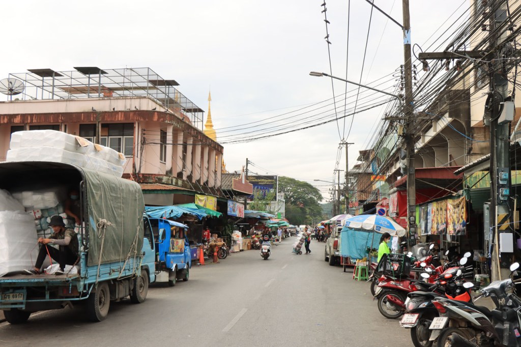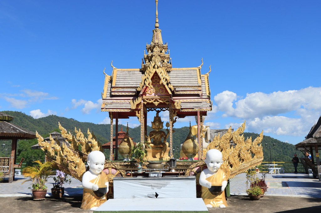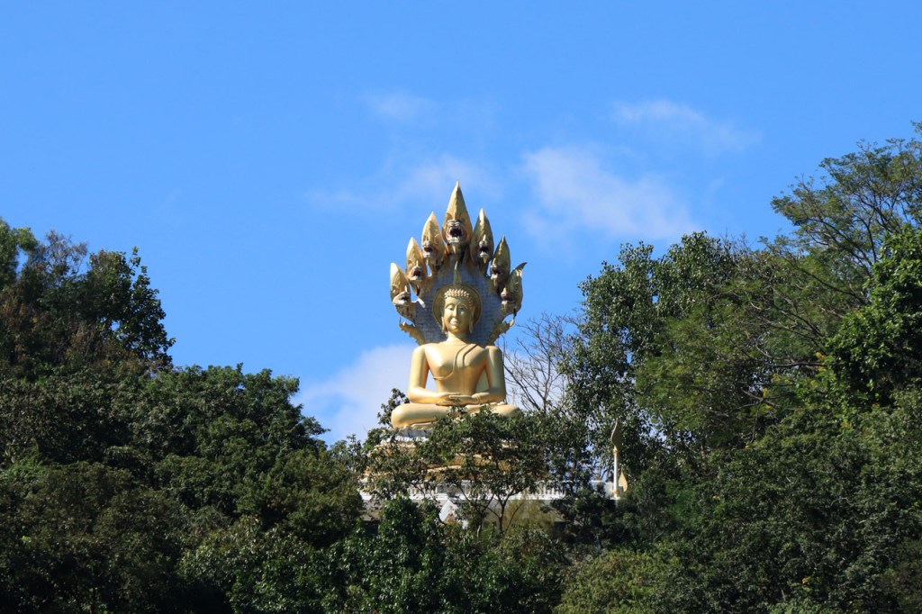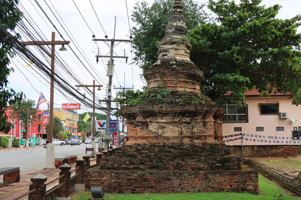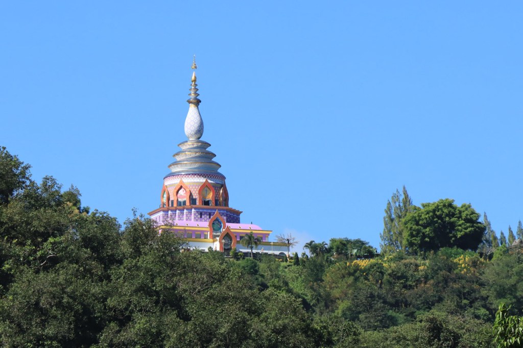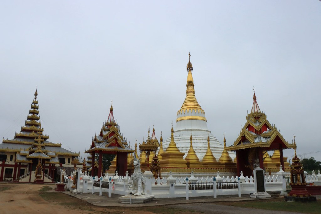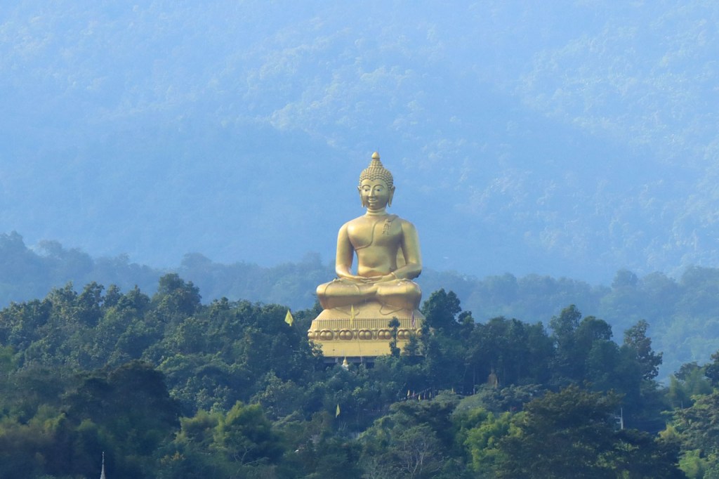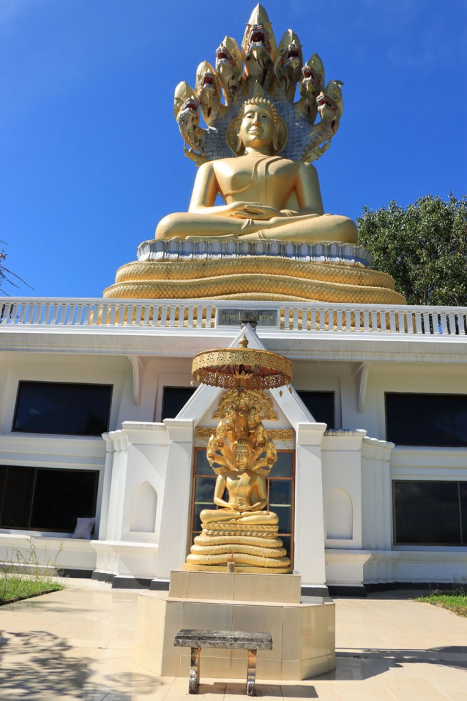 De start was vanmorgen nog wat frisser dan gisteren, 22° met een briesje voelt hier echt wel frisjes 🙂 . De zon kwam er wel wat vlugger door en na de middag was het wel weer echt warm. De rit van vandaag was ook nog minder dan gisteren, een vlak ritje van goed 30 Km. Met zo’n kort ritje was ik natuurlijk weer veel te vroeg op bestemming, ik had nochtans mijn best gedaan om wat later te vertrekken, ik reed dus eerst nog even mijn hotel voorbij naar het stadje om wat later terug te keren. Nadat ik gesetteld was keerde ik nog eens terug naar het stadje om Wat Thaton Chedi te bezoeken. Wat Thaton Chedi is een vrij groot tempelcomplex op een heuvel bij het stadje, ik had mijn portie tempels voor vandaag dus nog niet helemaal gehad 🙂 . Het is ook wel een behoorlijk indrukwekkend complex, verspreid over de heuvel, en schijnbaar vrij belangrijk, er waren dan ook nogal wat monniken in de buurt. Ik logeer hier in het Thaton Hill Resort en dat ligt even buiten het stadje maar dat zou geen probleem zijn, alles is ter plaatse voorhanden. Alleen … het toerisme in Thailand heeft schijnbaar toch nogal wat klappen gekregen door covid. Het is hier hetzelfde als in het Chai Prakan Resort: veel goede wil en mooie nette kamers, en in dit geval met een prachtig uitzicht, maar alle personeel en dus ook alle extra diensten zoals het restaurant geschrapt. Ik zal vanavond dus toch nog eens terug naar het stadje moeten om te eten. Voor het ontbijt heb ik me op de terugweg van de Chedi al voorzien, bij de 7 Eleven. Ik blijf hier overigens 2 nachten, morgen maak ik een uitstapje.