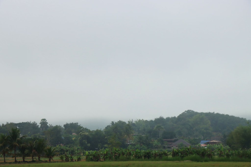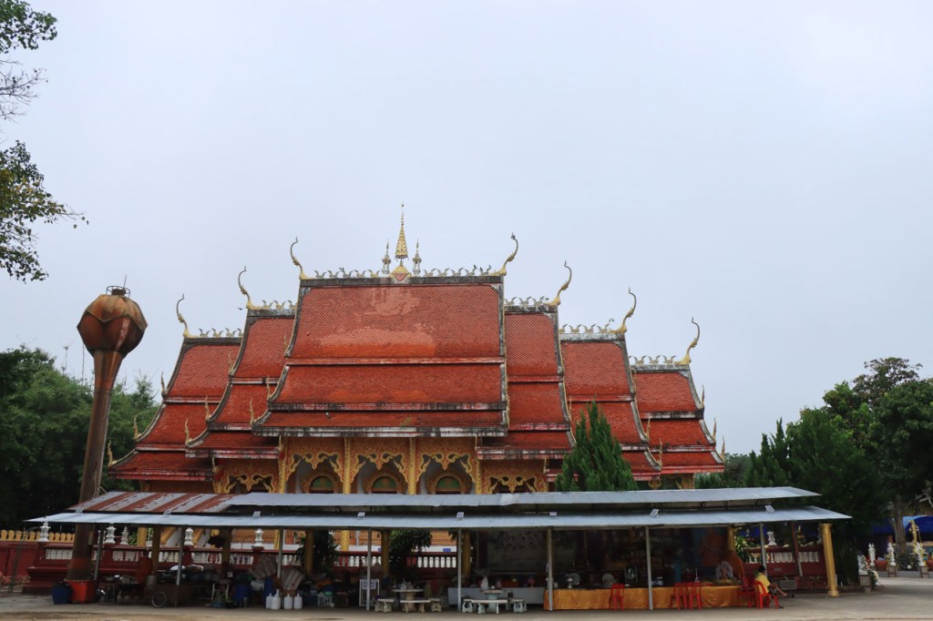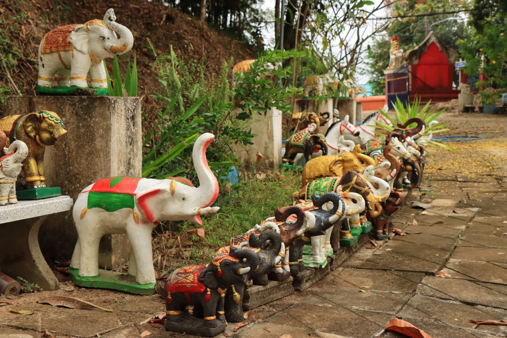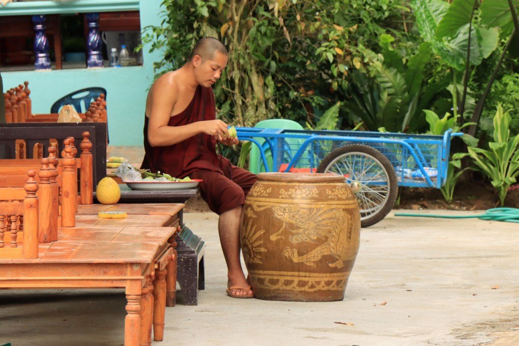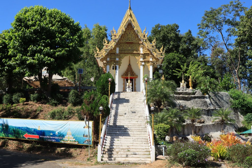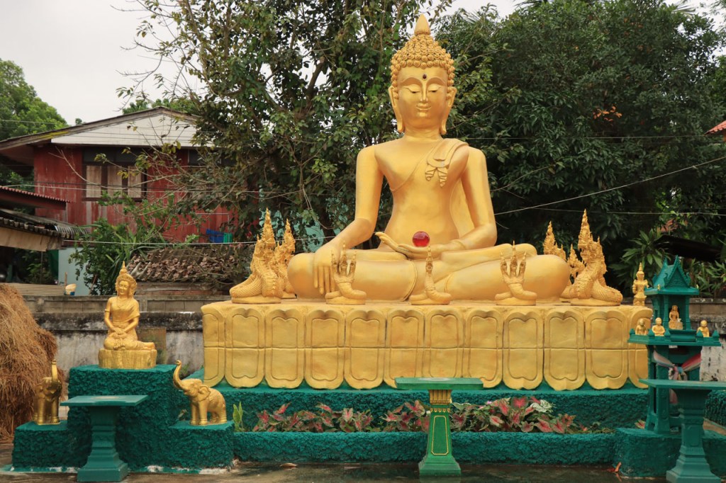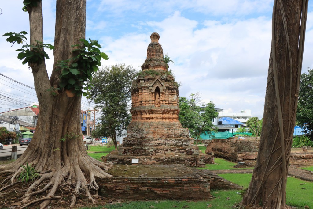 De start was vanmorgen nog wat frisser dan gisteren, 22° met een briesje voelt hier echt wel frisjes 🙂 . De zon kwam er wel wat vlugger door en na de middag was het wel weer echt warm. De rit van vandaag was ook nog minder dan gisteren, een vlak ritje van goed 30 Km. Met zo’n kort ritje was ik natuurlijk weer veel te vroeg op bestemming, ik had nochtans mijn best gedaan om wat later te vertrekken, ik reed dus eerst nog even mijn hotel voorbij naar het stadje om wat later terug te keren. Nadat ik gesetteld was keerde ik nog eens terug naar het stadje om Wat Thaton Chedi te bezoeken. Wat Thaton Chedi is een vrij groot tempelcomplex op een heuvel bij het stadje, ik had mijn portie tempels voor vandaag dus nog niet helemaal gehad 🙂 . Het is ook wel een behoorlijk indrukwekkend complex, verspreid over de heuvel, en schijnbaar vrij belangrijk, er waren dan ook nogal wat monniken in de buurt. Ik logeer hier in het Thaton Hill Resort en dat ligt even buiten het stadje maar dat zou geen probleem zijn, alles is ter plaatse voorhanden. Alleen … het toerisme in Thailand heeft schijnbaar toch nogal wat klappen gekregen door covid. Het is hier hetzelfde als in het Chai Prakan Resort: veel goede wil en mooie nette kamers, en in dit geval met een prachtig uitzicht, maar alle personeel en dus ook alle extra diensten zoals het restaurant geschrapt. Ik zal vanavond dus toch nog eens terug naar het stadje moeten om te eten. Voor het ontbijt heb ik me op de terugweg van de Chedi al voorzien, bij de 7 Eleven. Ik blijf hier overigens 2 nachten, morgen maak ik een uitstapje.