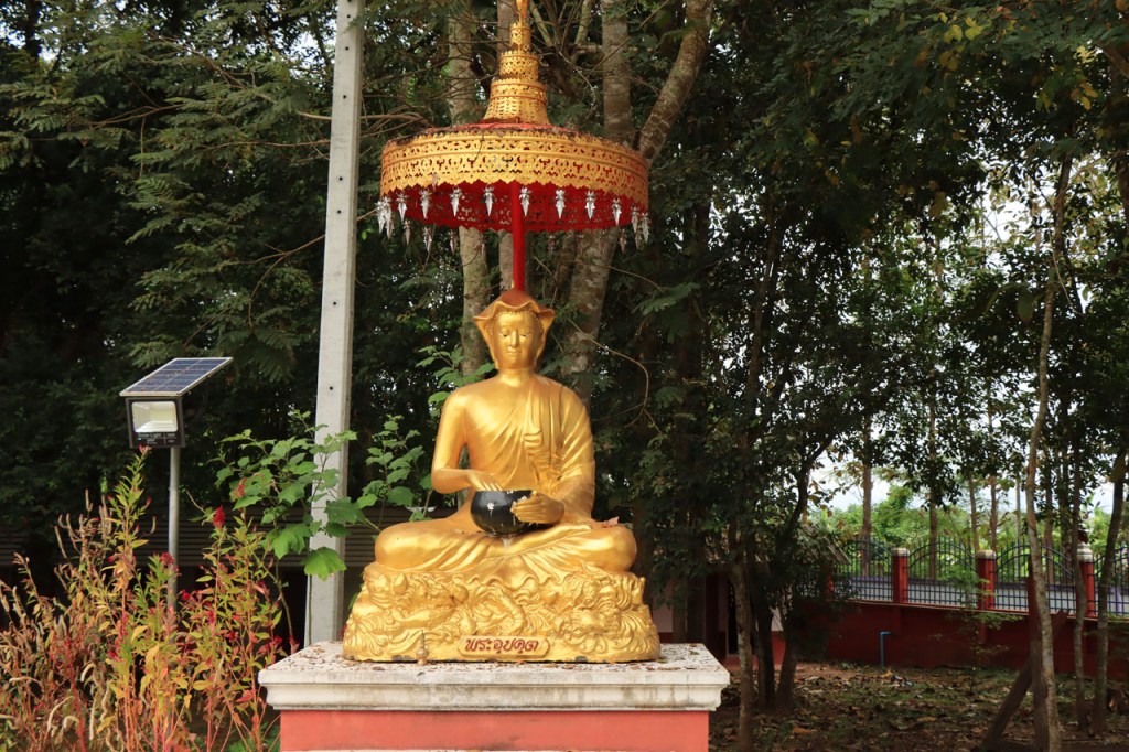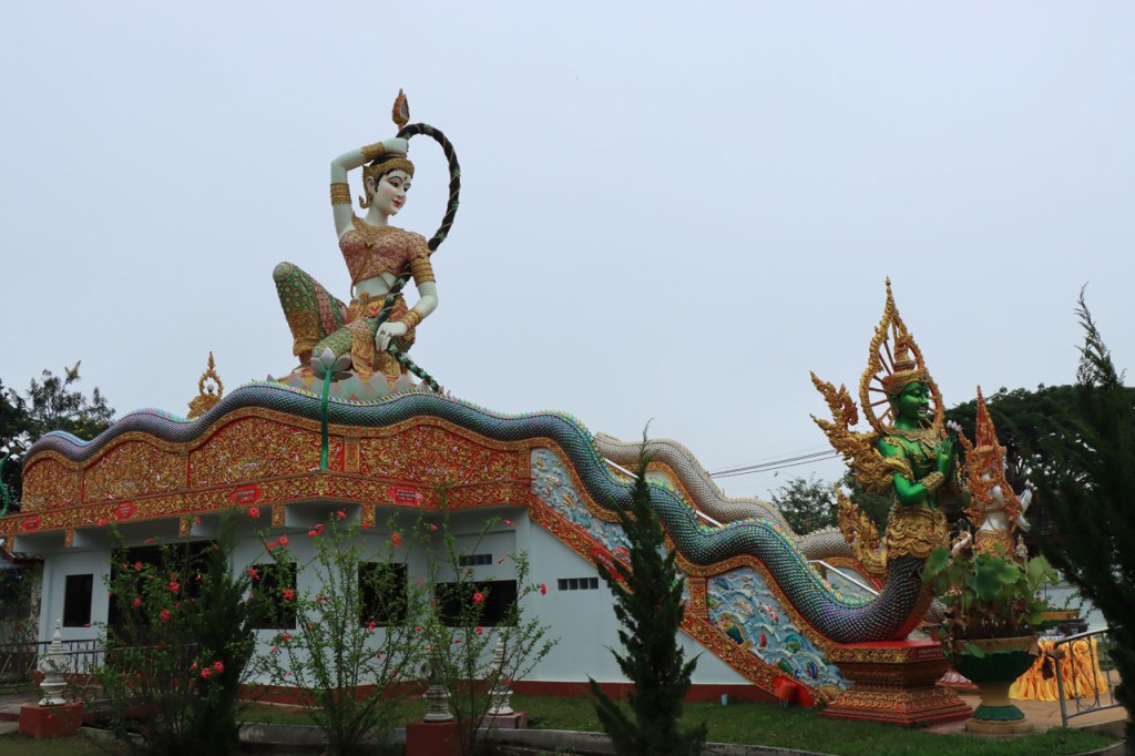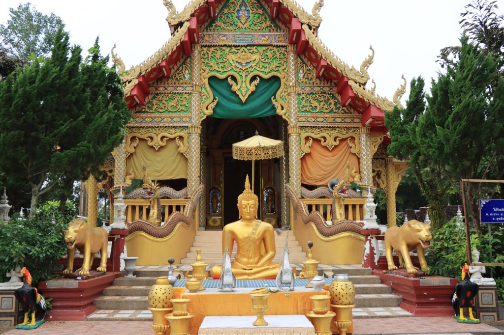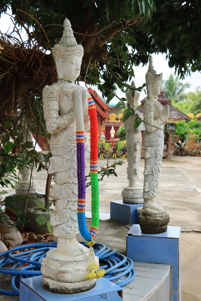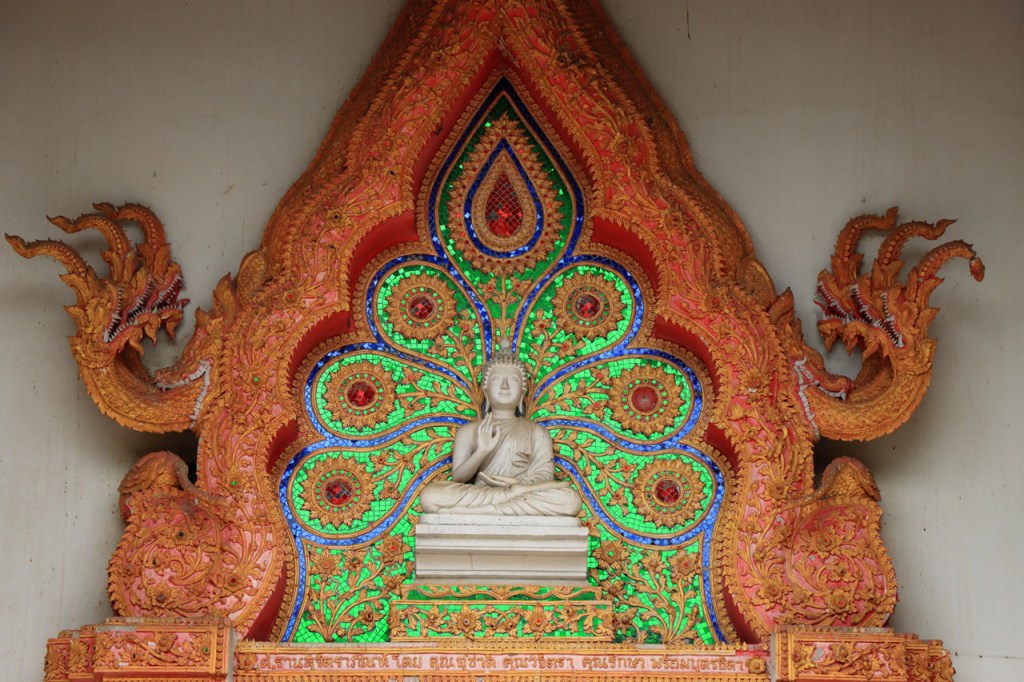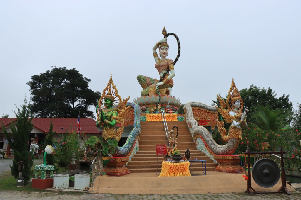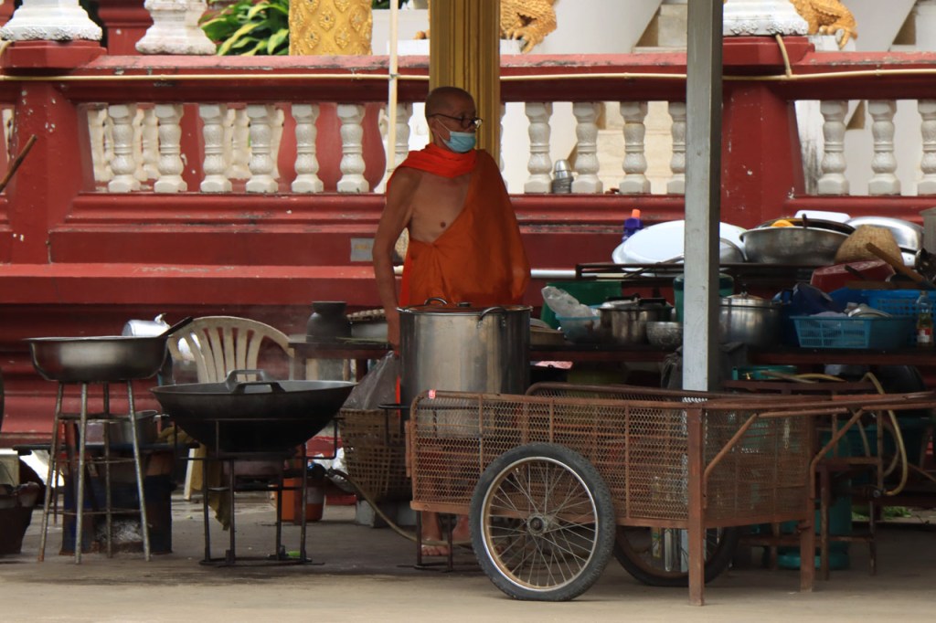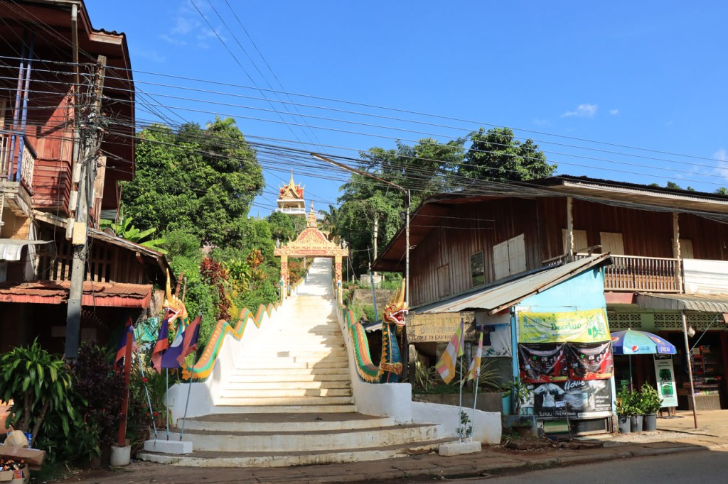 De start was vanmorgen nog wat frisser dan gisteren, 22° met een briesje voelt hier echt wel frisjes 🙂 . De zon kwam er wel wat vlugger door en na de middag was het wel weer echt warm. De rit van vandaag was ook nog minder dan gisteren, een vlak ritje van goed 30 Km. Met zo’n kort ritje was ik natuurlijk weer veel te vroeg op bestemming, ik had nochtans mijn best gedaan om wat later te vertrekken, ik reed dus eerst nog even mijn hotel voorbij naar het stadje om wat later terug te keren. Nadat ik gesetteld was keerde ik nog eens terug naar het stadje om Wat Thaton Chedi te bezoeken. Wat Thaton Chedi is een vrij groot tempelcomplex op een heuvel bij het stadje, ik had mijn portie tempels voor vandaag dus nog niet helemaal gehad 🙂 . Het is ook wel een behoorlijk indrukwekkend complex, verspreid over de heuvel, en schijnbaar vrij belangrijk, er waren dan ook nogal wat monniken in de buurt. Ik logeer hier in het Thaton Hill Resort en dat ligt even buiten het stadje maar dat zou geen probleem zijn, alles is ter plaatse voorhanden. Alleen … het toerisme in Thailand heeft schijnbaar toch nogal wat klappen gekregen door covid. Het is hier hetzelfde als in het Chai Prakan Resort: veel goede wil en mooie nette kamers, en in dit geval met een prachtig uitzicht, maar alle personeel en dus ook alle extra diensten zoals het restaurant geschrapt. Ik zal vanavond dus toch nog eens terug naar het stadje moeten om te eten. Voor het ontbijt heb ik me op de terugweg van de Chedi al voorzien, bij de 7 Eleven. Ik blijf hier overigens 2 nachten, morgen maak ik een uitstapje.