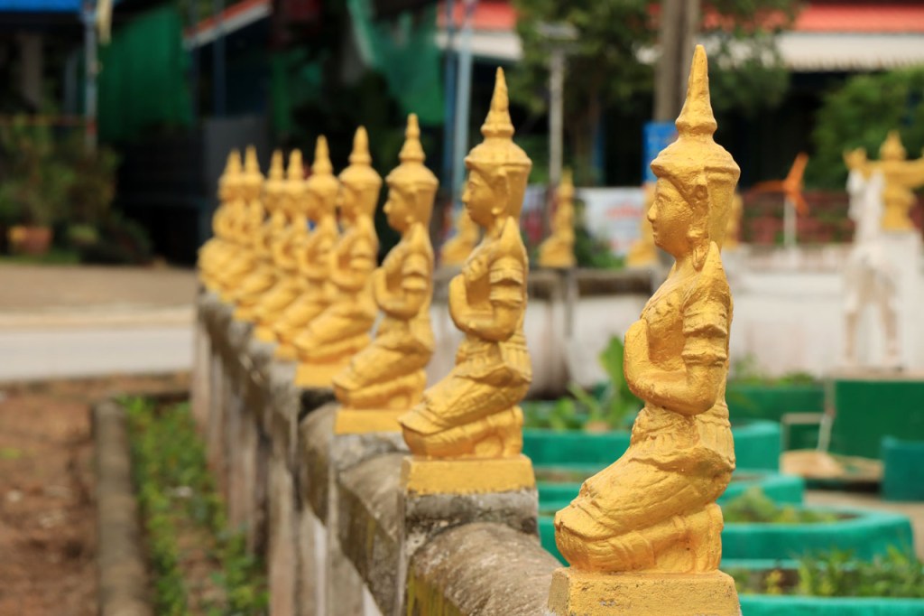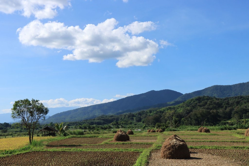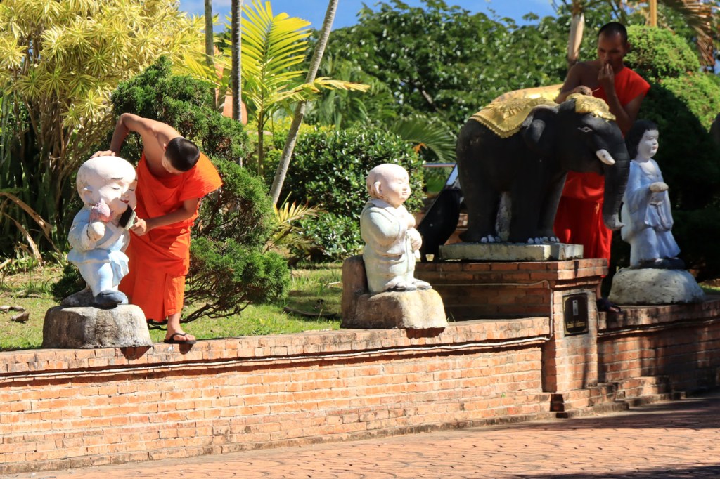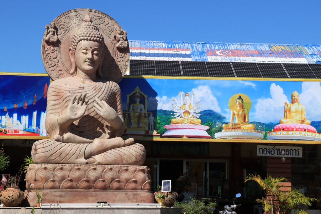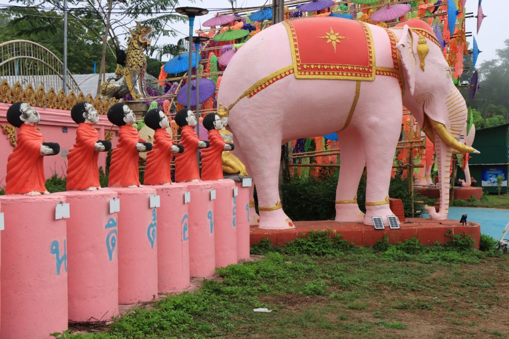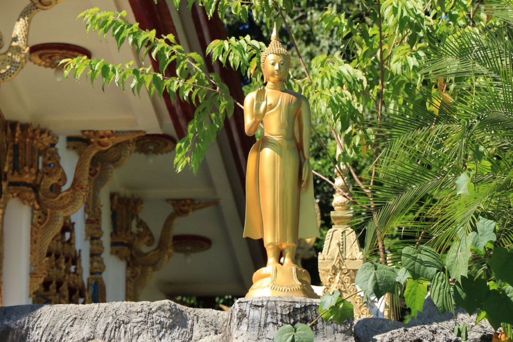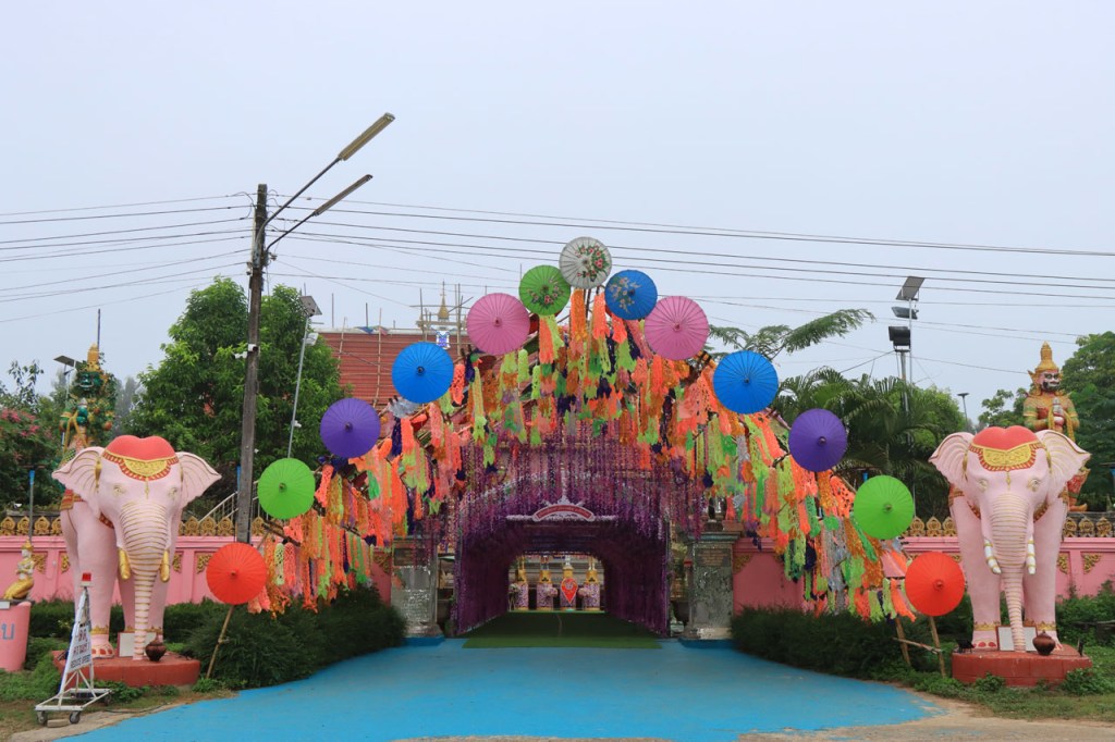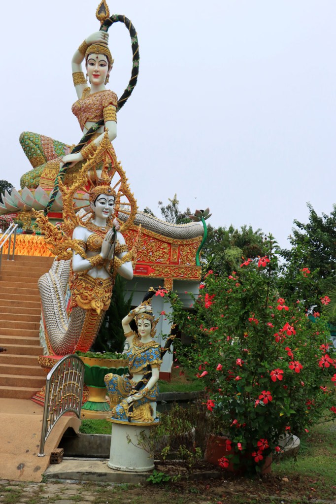 De start was vanmorgen nog wat frisser dan gisteren, 22° met een briesje voelt hier echt wel frisjes 🙂 . De zon kwam er wel wat vlugger door en na de middag was het wel weer echt warm. De rit van vandaag was ook nog minder dan gisteren, een vlak ritje van goed 30 Km. Met zo’n kort ritje was ik natuurlijk weer veel te vroeg op bestemming, ik had nochtans mijn best gedaan om wat later te vertrekken, ik reed dus eerst nog even mijn hotel voorbij naar het stadje om wat later terug te keren. Nadat ik gesetteld was keerde ik nog eens terug naar het stadje om Wat Thaton Chedi te bezoeken. Wat Thaton Chedi is een vrij groot tempelcomplex op een heuvel bij het stadje, ik had mijn portie tempels voor vandaag dus nog niet helemaal gehad 🙂 . Het is ook wel een behoorlijk indrukwekkend complex, verspreid over de heuvel, en schijnbaar vrij belangrijk, er waren dan ook nogal wat monniken in de buurt. Ik logeer hier in het Thaton Hill Resort en dat ligt even buiten het stadje maar dat zou geen probleem zijn, alles is ter plaatse voorhanden. Alleen … het toerisme in Thailand heeft schijnbaar toch nogal wat klappen gekregen door covid. Het is hier hetzelfde als in het Chai Prakan Resort: veel goede wil en mooie nette kamers, en in dit geval met een prachtig uitzicht, maar alle personeel en dus ook alle extra diensten zoals het restaurant geschrapt. Ik zal vanavond dus toch nog eens terug naar het stadje moeten om te eten. Voor het ontbijt heb ik me op de terugweg van de Chedi al voorzien, bij de 7 Eleven. Ik blijf hier overigens 2 nachten, morgen maak ik een uitstapje.