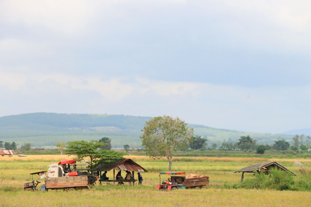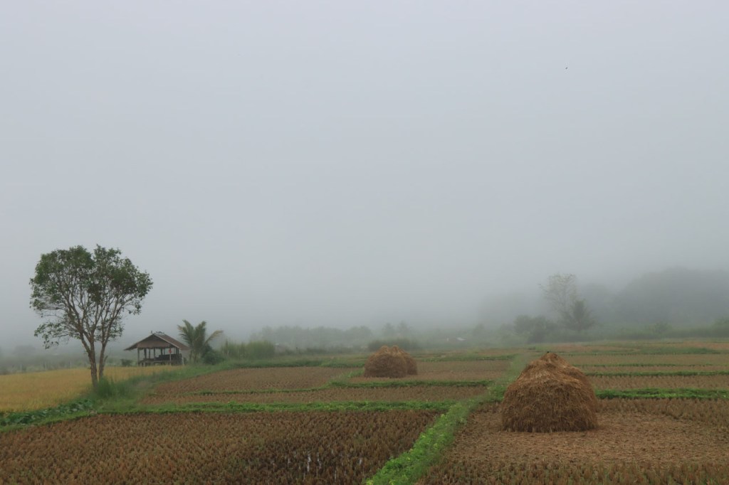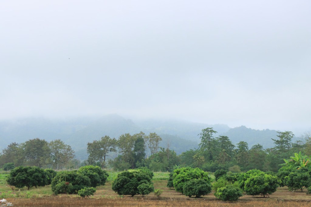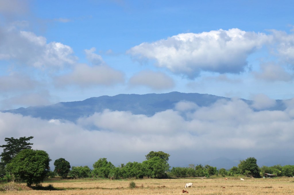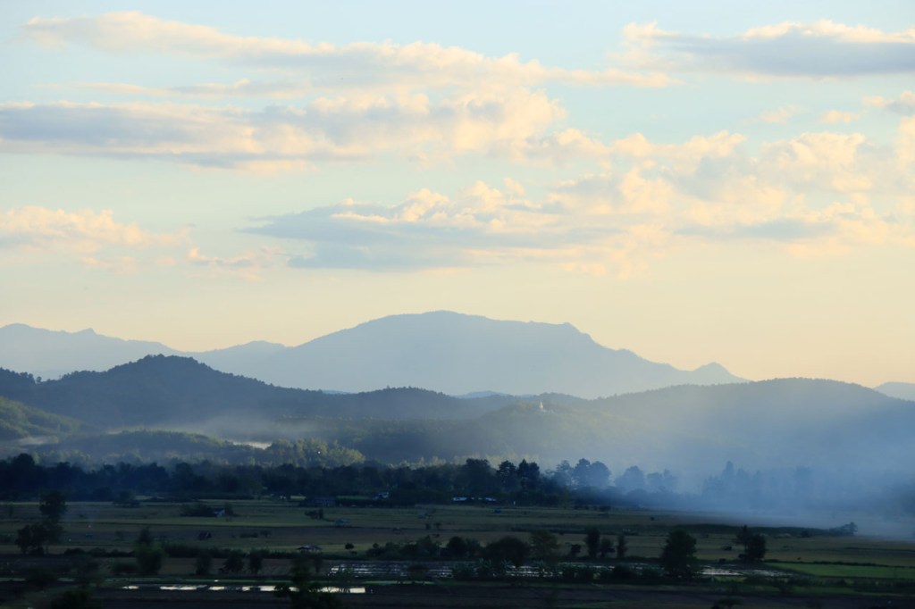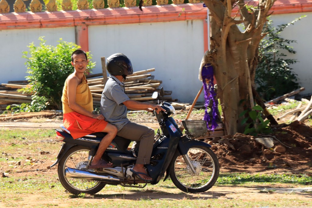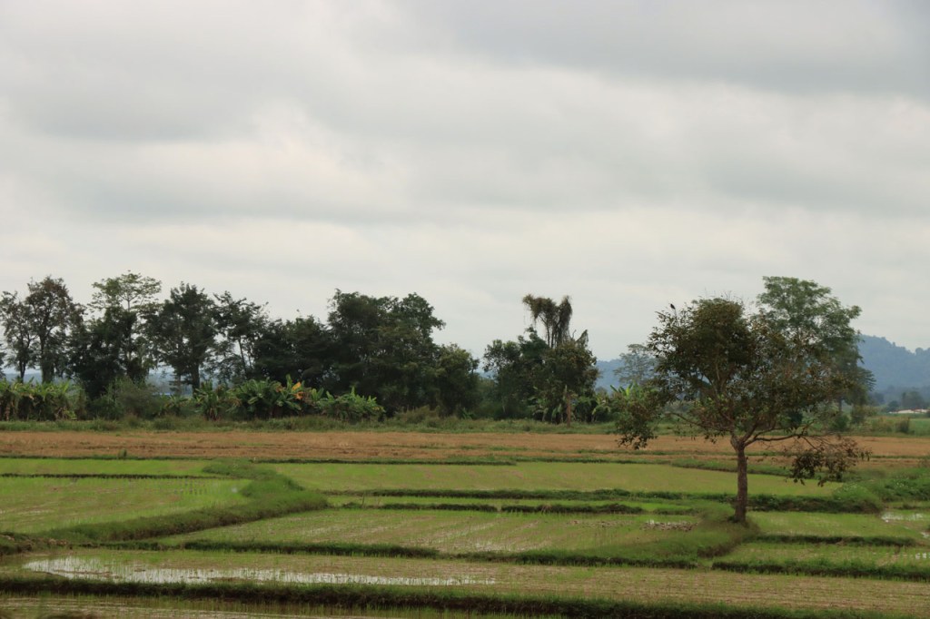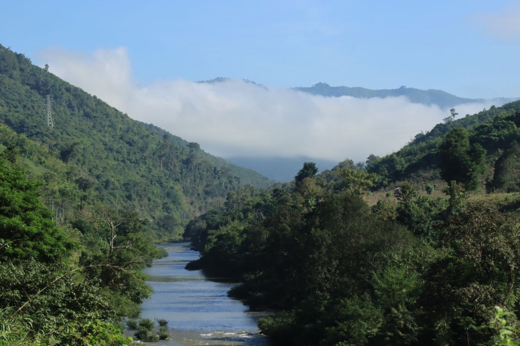 Vandaag moet ik beginnen met broer, de oudere, een gelukkige verjaardag te wensen: Gelukkige verjaardag broer. Het was vanmorgen nog eens een mistig begin. Op het programma stond een wat langere rit met grensovergang, mijn eerste solo “ver weg” grenspassage. Ik passeerde al wel meer grenzen maar dat was met begeleiding die zei wat je waar moet doen. Ook deze grens stak ik als eens over, bij mijn eerste bezoek aan Laos in 2004. Dat was toen een groepsreis die begon in Chiang Rai omdat dat nu eenmaal het makkelijkste startpunt was om met Noord Laos te beginnen. Toen was dat nog met overzetjes over de Mekong. Nu ligt er de Friendshipbridge IV, wat betekent in principe dat er nog tenminste 3 andere zijn dus. Die brug mag je wel niet met de fiets over, die neem je mee met de voetgangers in de bus om de oversteek te maken. Thailand uit geraken was makkelijk maar om in Laos te komen was er nog eens wat goeie ouwe bureaucratie nodig, dat is nog niet verandert. Na de grens ging het nog een 10 Km verder tot Houayxay. Voorlopig is er nog weinig verschil te merken met Thailand, al is het wel weer even wennen om terug rechts te rijden. Laos is ook zo’n land waar je in één slag miljonair kan zijn, 100 € wisselen volstaat al ruim 🙂 .