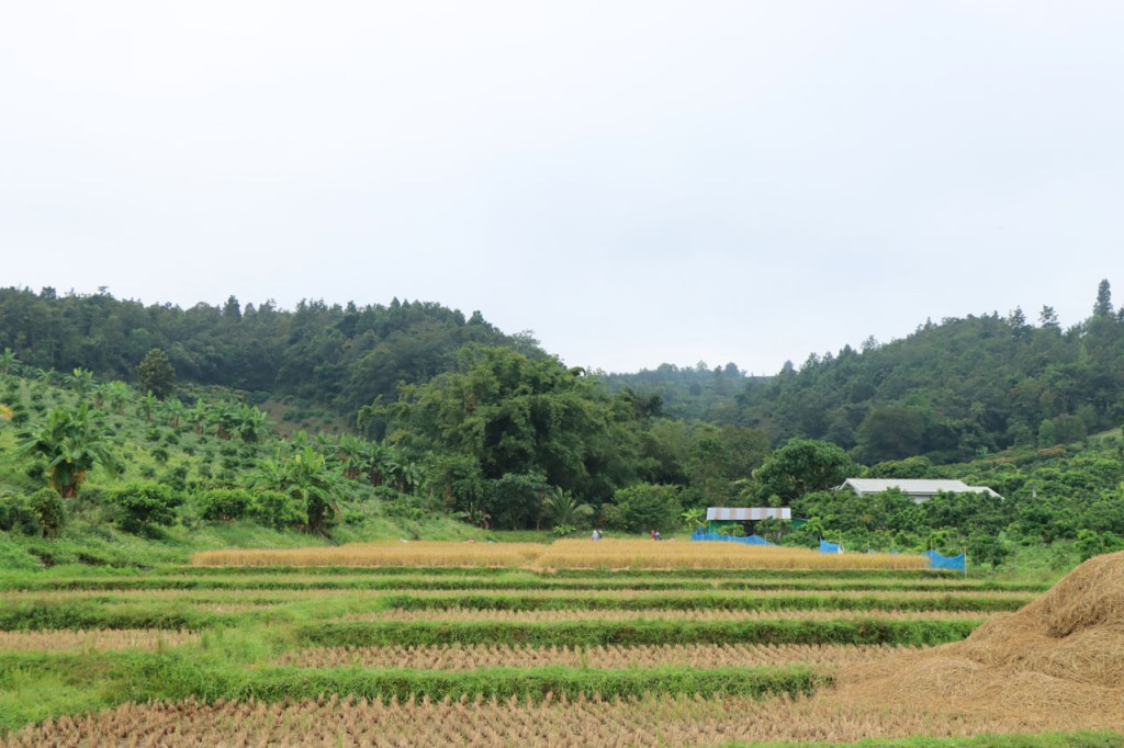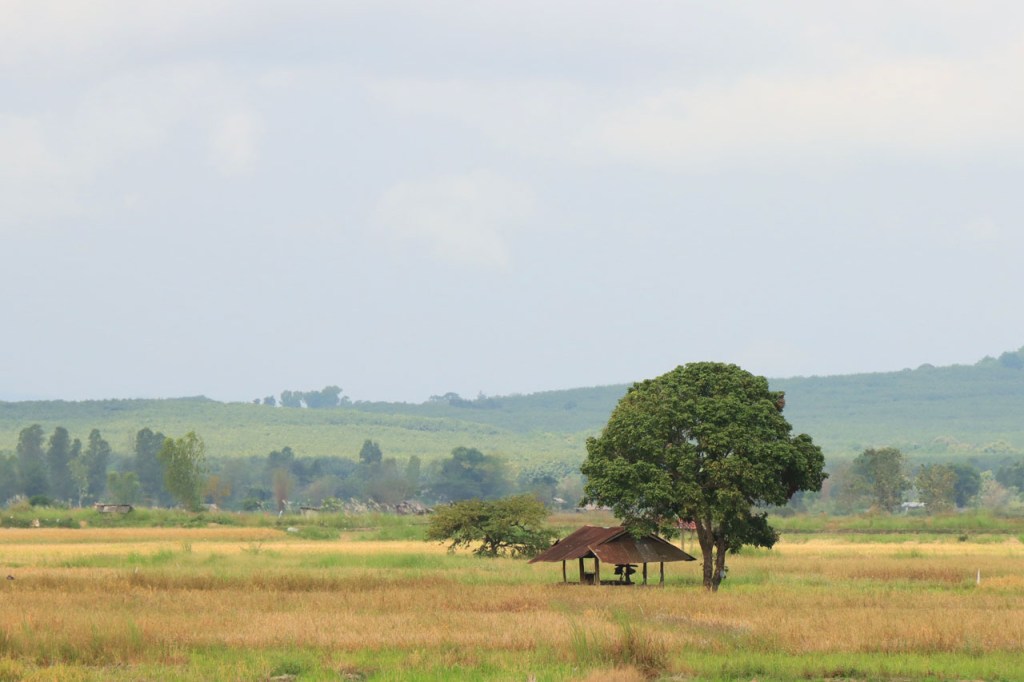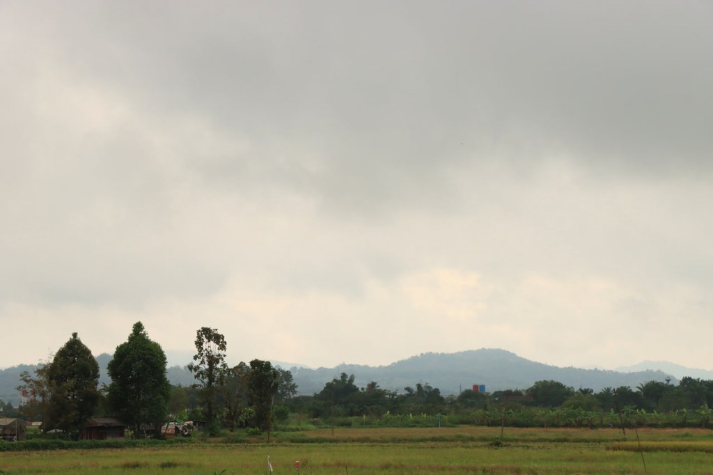 Vandaag dus terug echt op weg met een eerder rustige rit, niet te lang en niet te zwaar. In de tweede helft ging het wel wat golven maar niets dramatisch. Ik fietste langs nogal wat rijstvelden maar de rijst is al even geoogst en dan stellen die ook niet zo veel voor 🙂 . Ik passeerde ook een erg grote rubberplantage maar dat is uiteindelijk dan weer als een gewoon bos met bekers aan de bomen 🙂 . Eindigen deed ik in Mae Chan. Mae Chan is een behoorlijk stadje maar in niets toeristisch, eerder een provinciaal industriestadje.