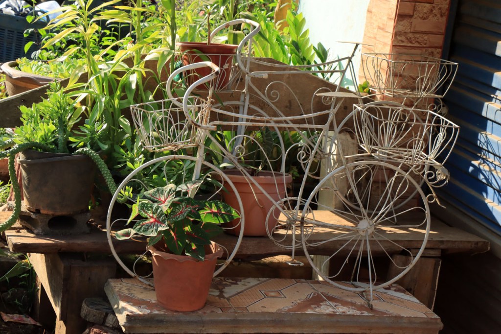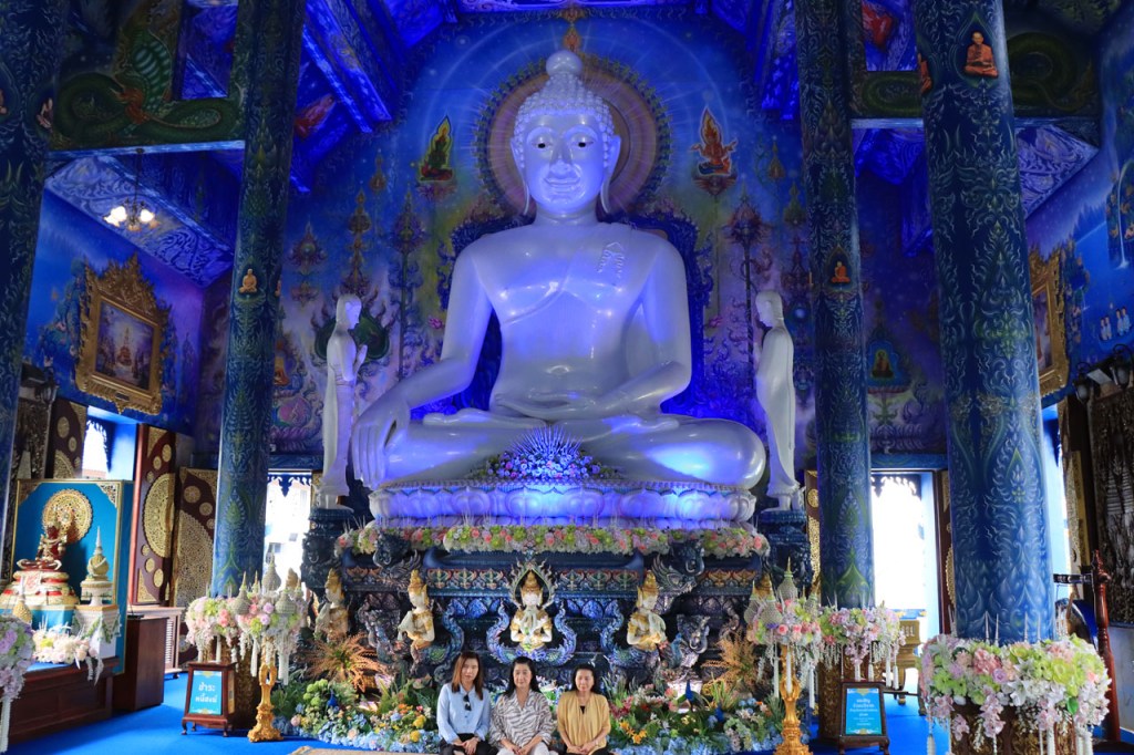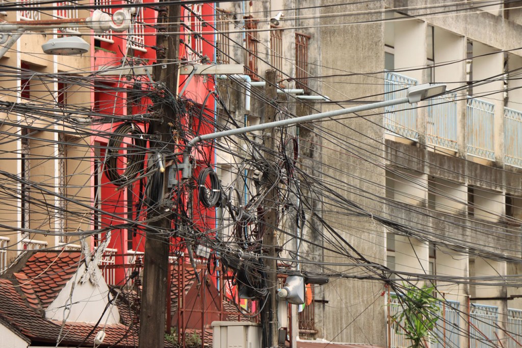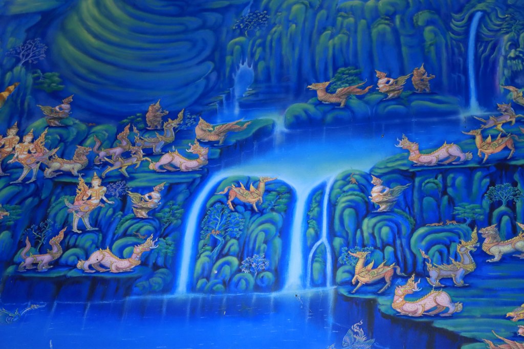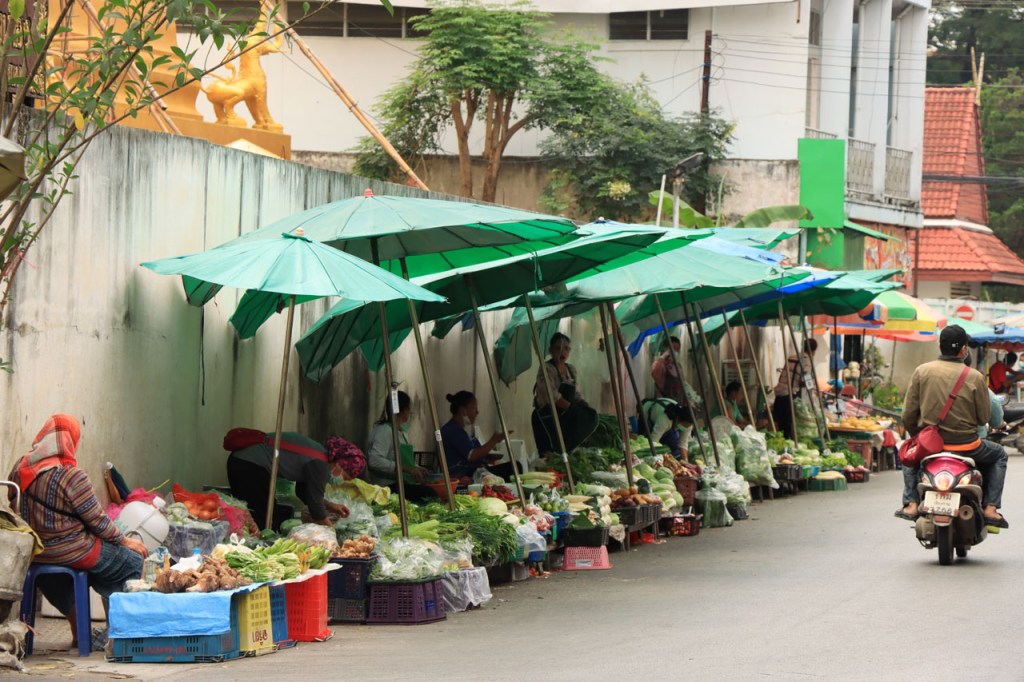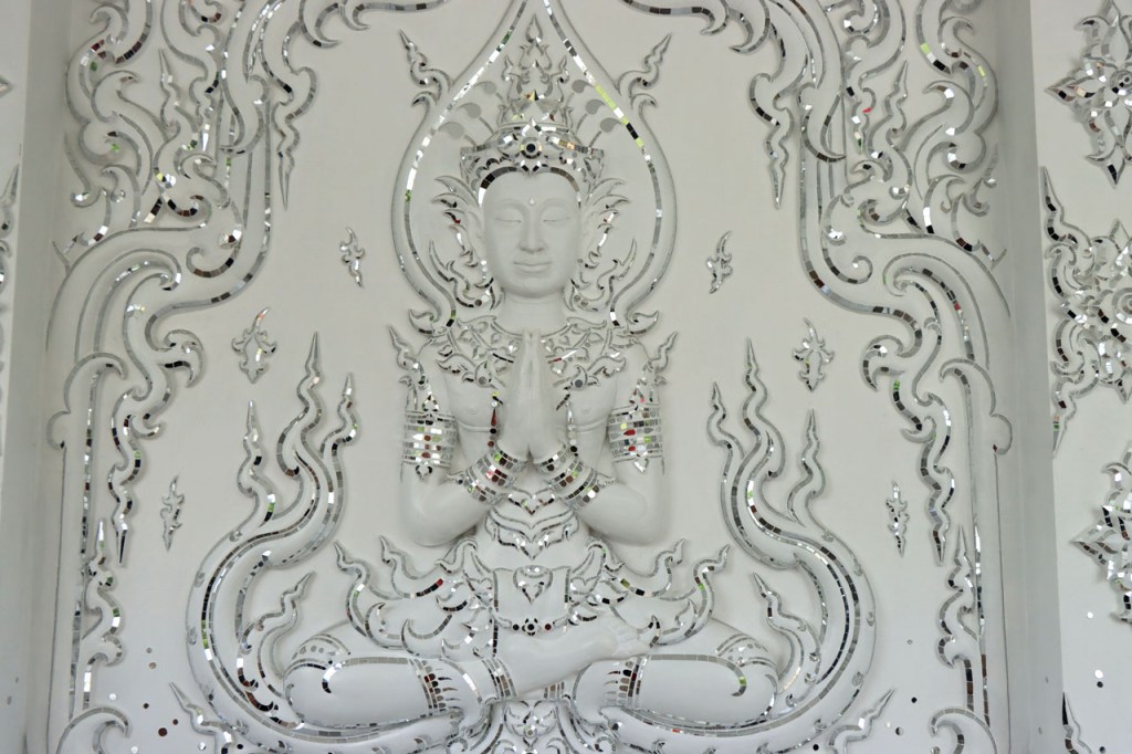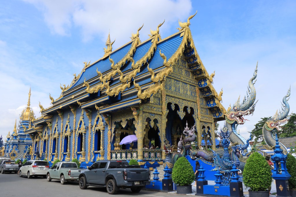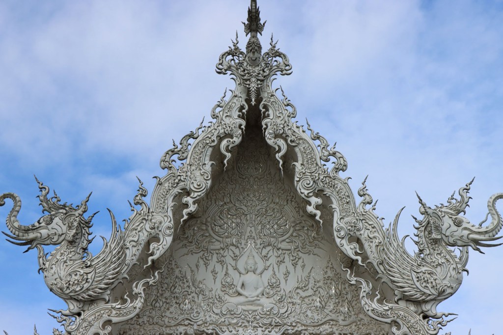 Awe’s Café, dat me uit de nood hielp met de wifi, is geen café zoals wij dat kennen. In dit geval is het echt slechts een hoekje dat dienst doet als koffiehuis/café/restaurant/… Haar maaltijden geeft ze door met haar smartphone en worden daarna aangedragen van een beetje verderop. Ik heb wel het idee dat het vanuit haar eigen keuken komt, en niet vanuit een andere eetgelegenheid, maar dat ze op haar hoekje gewoon geen plaats heeft voor een keukentje. Hoe dan ook is dit het soort kleine zaak waar ik wel graag mijn geld uitgeef en bovendien vind ik dat ze het wel verdiend heeft door me in de namiddag uit de nood te helpen. Overigens lijkt het erop dat de problemen van de wifi in het hotel een gevolg waren van overbelasting van het net, ’s avonds kon ik er gewoon op. Tot dusver bestond het menu, in het beste geval, uit een beschrijving van wat er op je bord kwam. Bij Awe stonden er ook enkele gerechten met naam op. Zo kon ik de menu van Yathida, mijn favoriete Ieperse Thais restaurant, eens testen 😉 . Ik kan nu bevestigen dat een Massaman Curry in Ieper hetzelfde is als in Chiang Rai 🙂 . Na de rustdag van gisteren herbegon ik vandaag met een rustig ritje, ik fietste naar de Witte en de Blauwe Tempel. Beiden zijn behoorlijk recent en modernistisch en hebben weinig religieuze betekenis, ze zijn meer ter ere van de architect dan van Boeddha. Aan de Witte hangt bovendien een, naar plaatselijke normen, best prijzig inkomticket vast. Ik moet wel toegeven dat het, ondanks zijn betrekkelijke betekenis, een behoorlijk indrukwekkend complex is. De Blauwe heeft ook zijn extravagantie maar is toch een stuk bescheidener en serener. Mijn SIM-kaart heeft de afgelopen dagen zijn waarde weer goed bewezen. Gisteren loodste ze mij naar mijn hotel en vandaag ook naar de tempels. Na de middag wandelde ik nog wat, een beetje verder dan gisteren.