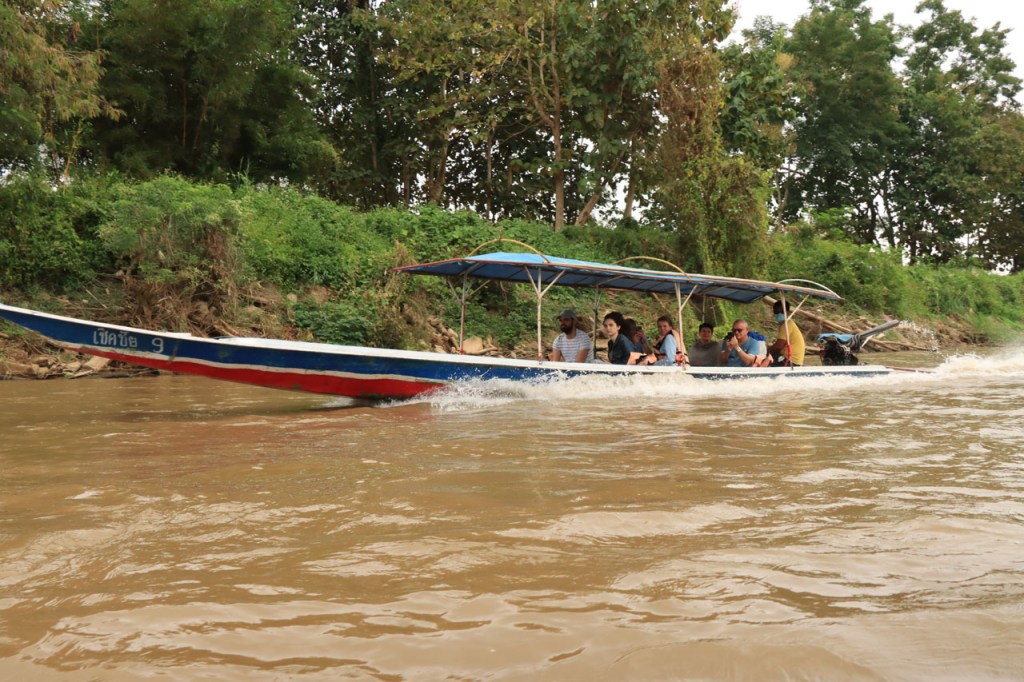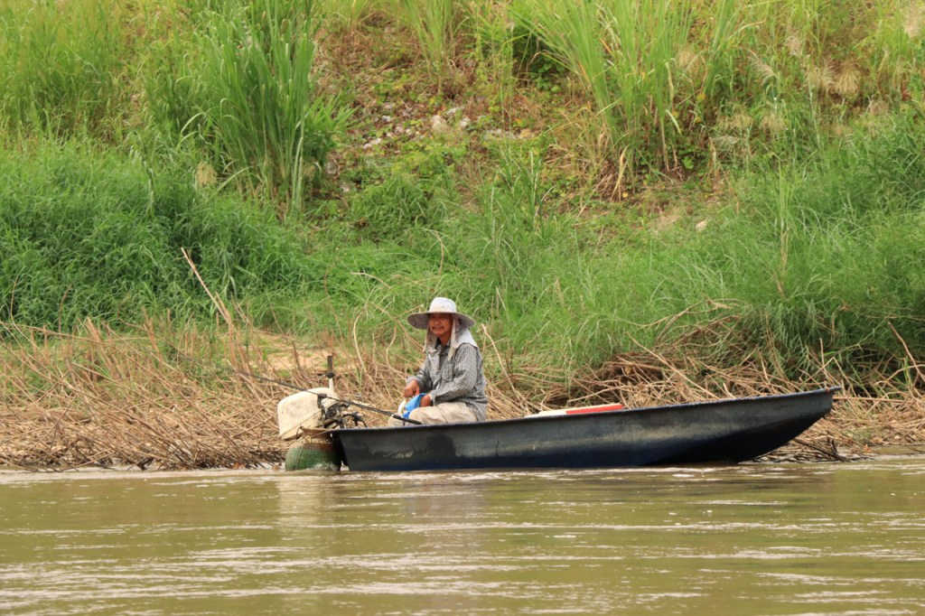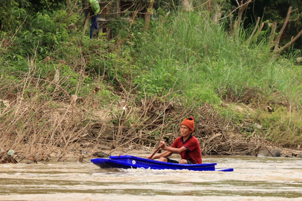 Het was vanmorgen niet zozeer mistig maar wel bewolkt. De zon komt daar ook niet zo door. Na de zware rit van gisteren maakte ik er vandaag een rustdag van, ik nam de boot naar Chiang Rai. Dat was altijd al de bedoeling van hier de boot te nemen. De route naar Chang Rai is zo’n 95 Km over de grote weg, dan klinkt een boottocht wel als een goed alternatief. Toen ik echter dinsdag in Thaton aankwam, en ging informeren, kreeg ik te horen dat de “public boat” momenteel niet vaart wegens “no people”, te weinig passagiers om de zaak draaiende te houden dus. Ik kon wel een “privat boat” nemen voor 5x de prijs. Op zich is dat best schappelijk maar daar zou ik toch niet aan meedoen, ik zou dan wel fietsen. Na de zware rit van gisteren, en in de wetenschap dat de eerste 30 Km dezelfde zijn als die van gisteren, besloot ik van toch maar de prijs van de boot te betalen. Die eerste superzware klim, tot boven 18%, nog eens herdoen met bepakking leek me toch geen goed idee. En zo werd het dus alsnog een boot. Even voor Chiang Rai maakten we een switch, een opkomende boot met 2 passagiers voor Thaton en de mijne verwisselden van lading. Ik had de indruk dat de opkomende man daarvoor de helft van zijn prijs aan mijn bestuurder gaf. Zo had hij een halve prijs voor maar een kort tochtje en mijn bestuurder was verzekerd van een extraatje op de weg terug, win – win dus 🙂 . Omdat de boot veel sneller ging dan verteld wordt, was ik weer veel te vroeg in mijn hotel. Het was deze keer zelfs nog geen middag en daar moest ik dan toch nog even op wachten. Na de middag wandelde ik nog even willekeurig door de buurt, zonder bepaald doel. Veel indruk maakt het voorlopig nog niet. Het is bovendien ook geen leuke buurt om als single man te wandelen, massage?. Toch blijf ik ook hier voor nog een extra nacht. Mijn hotel is reusachtig groot. Eerste grote hotel en eerste problemen met de wifi ook, ik geraak er noch met mijn telefoon noch met de laptop op. Ik moest naar het café om de hoek om mijn ding te doen.
