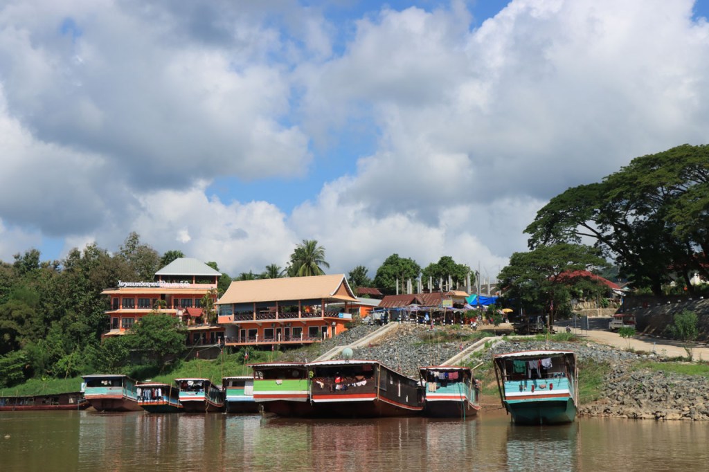 Houayxay is een stadje dat eigenlijk leeft van het toerisme. Velen steken hier nabij de grens over, in beide richtingen, en komen daarbij hier terecht voor één of meer overnachtingen. Van hieruit neemt men dan de bus of boot naar Luang Prabang, of komt men ervan als men in omgekeerde richting gaat. Het is dan ook een aaneenschakeling van guesthouses en restaurantjes en maakt het stadje best levendig natuurlijk. Ook ik ging nog eens de boot op, de slowboat naar Pakbeng. Op zich een mooie tocht over de Mekong maar 6 uur is toch wel lang, maar daarvoor is het ook een slowboat natuurlijk. Bovendien vertrok de boot pas om 11u30, wat het toch wel een lange dag maakte. In Pakbeng kom je weer in een gelijkaardig stadje als Houayxay, hoewel op het eerste zicht wat kleiner. Pakbeng is nog maar halfweg de tocht naar Luang Prabang. Degene die helemaal naar daar varen moeten hier overnachten en gaan morgenvroeg met een andere boot weer verder. Ikzelf ga morgen met plezier weer de fiets op, het varen zit er in principe op voor mij.