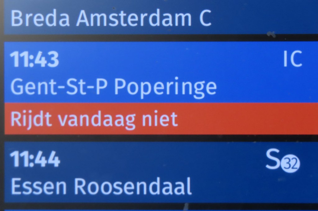 Mijn terugreis had vandaag veel vlotter moeten gaan dan de heenweg. Ik was net op tijd in Herentals om op de stoptrein richting Antwerpen te stappen. Die heeft in Berchem bijna direct aansluiting met de trein naar Ieper, net genoeg tijd om nog een broodje te halen, alleen … die aansluiting reed vandaag niet. Ik had dan ruim een uur in Berchem kunnen wachten op de volgende maar besloot dat het misschien aangenamer was om er een estafetterit van te maken, om dat uur wat te breken. Ik nam de trein richting De Panne, met 15 minuten vertraging bij vertrek, tot in Gent. Daar nam ik de stoptrein naar Kortrijk, waar ik tenslotte dan wel moest wachten op de volgende trein richting Ieper.