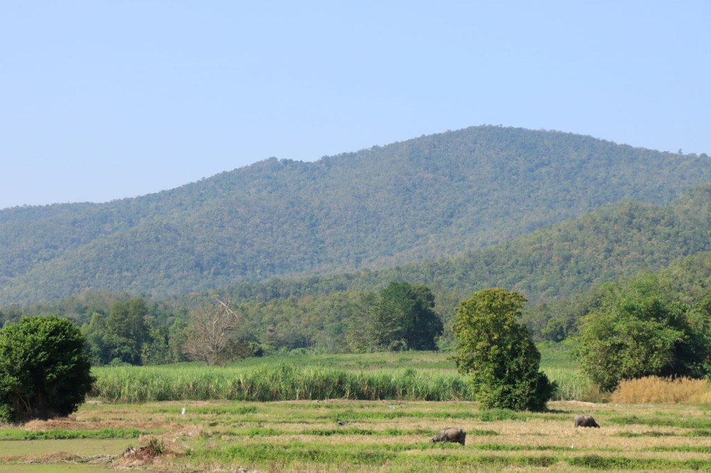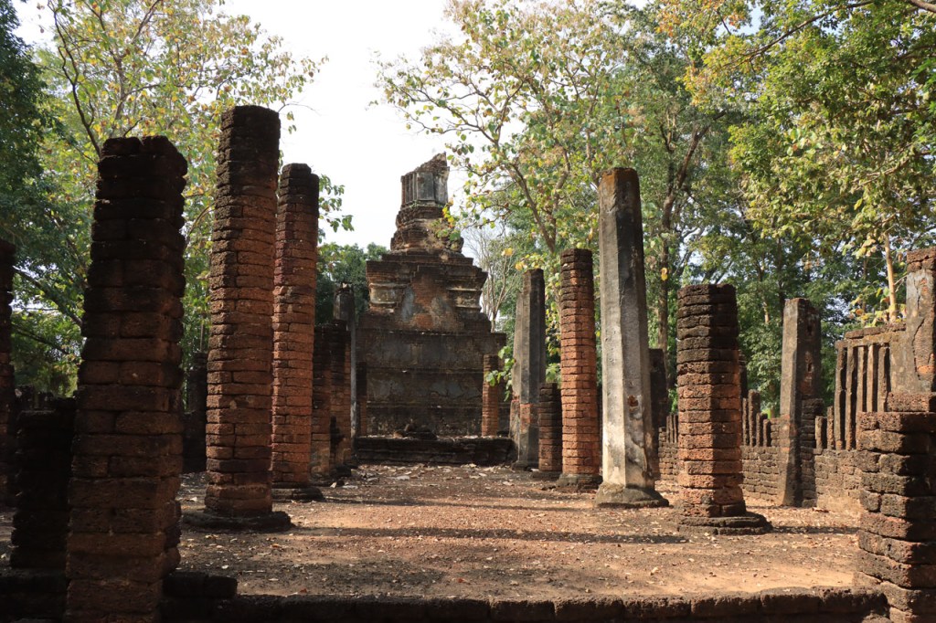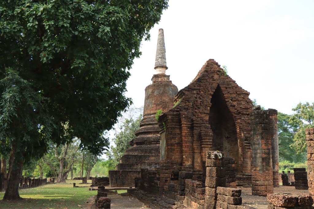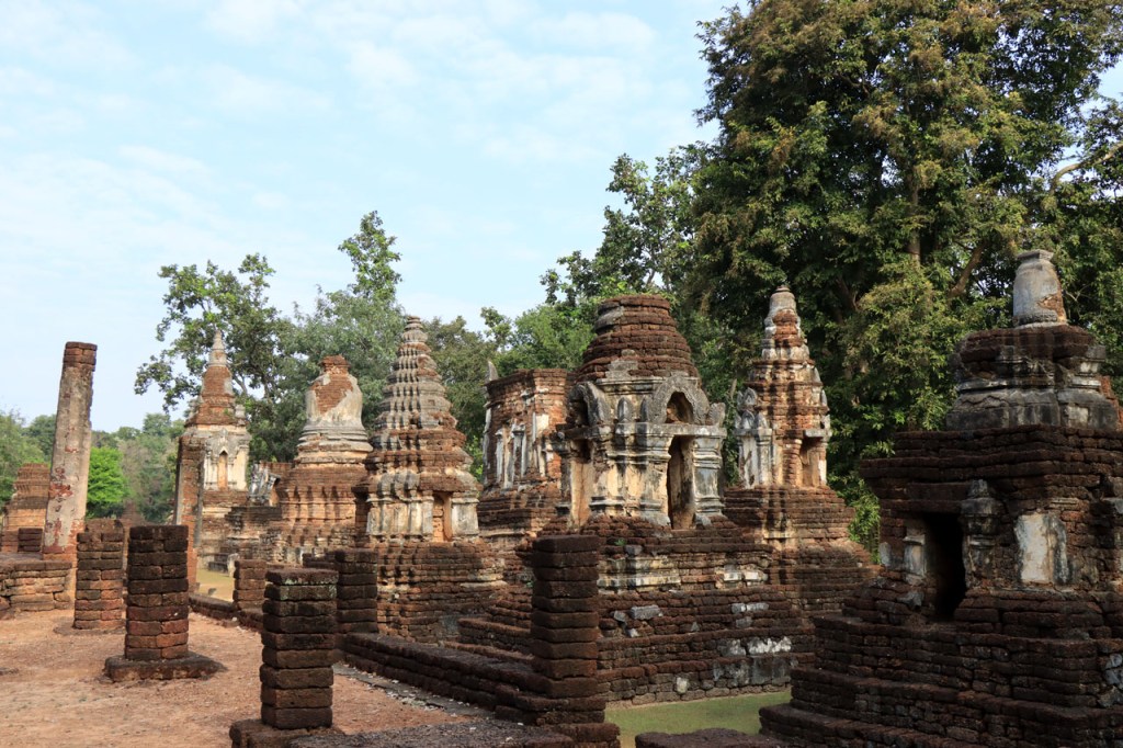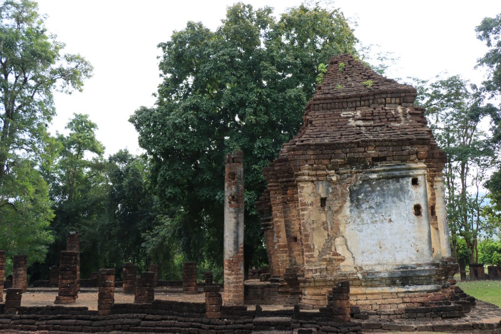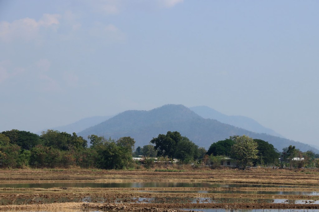 Vandaag de verplaatsing gemaakt naar de volgende van het drietal historische steden. Ik volgde daarbij de rivier Yom, sowieso al zelden de kortste optie maar ik deed er ook nog ruim 10 Km bovenop. Na goed 5 Km merkte ik dat ik een drinkenbus vergeten was op mijn kamer. Zo’n bus is toch vrij waardevol hier, voldoende alleszins om er 5 Km voor terug te rijden. Verder ging het langs de rivier nogal eens over onverhard maar wel altijd behoorlijk berijdbaar.