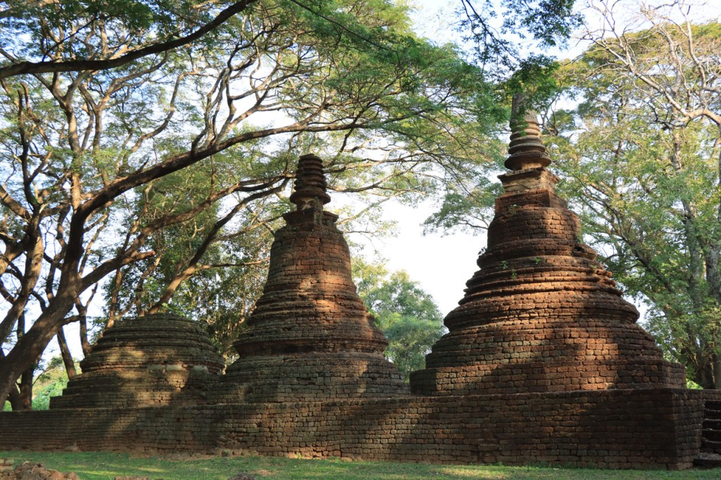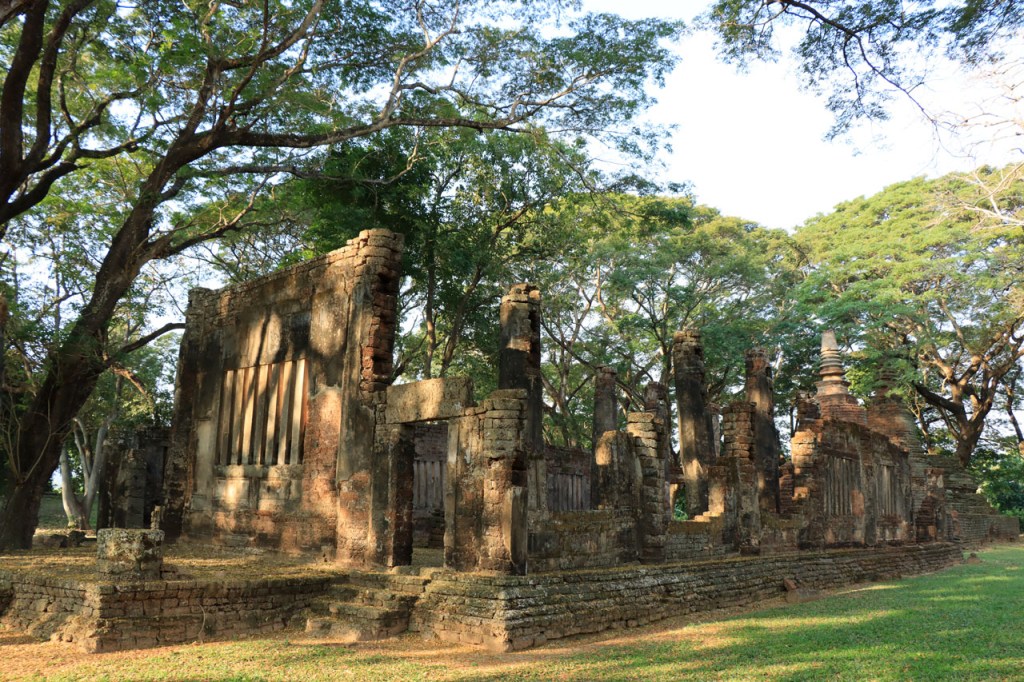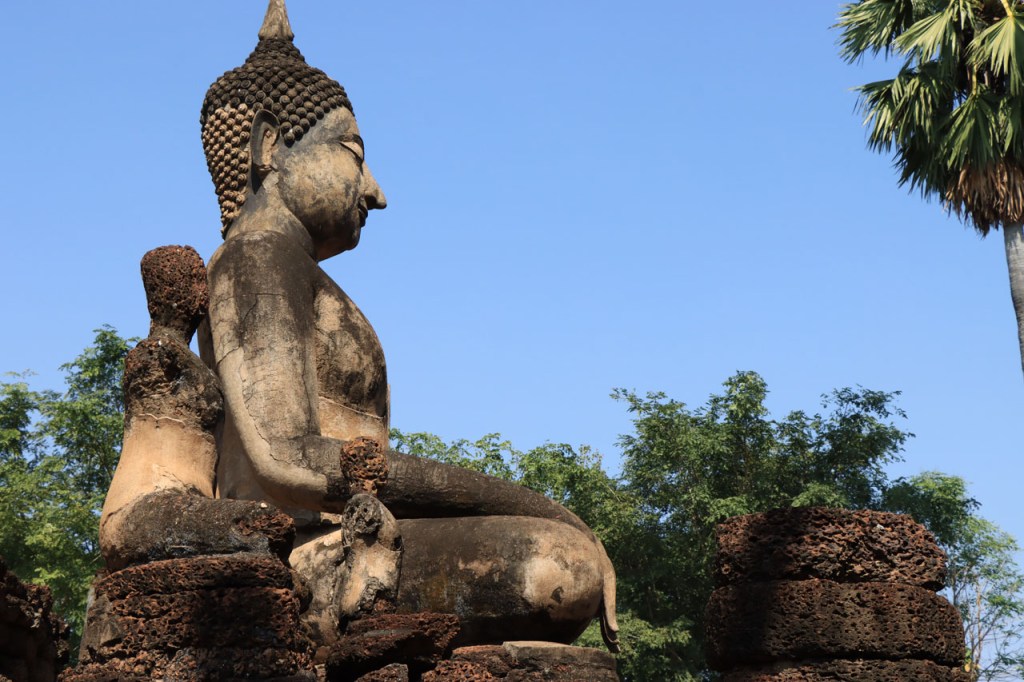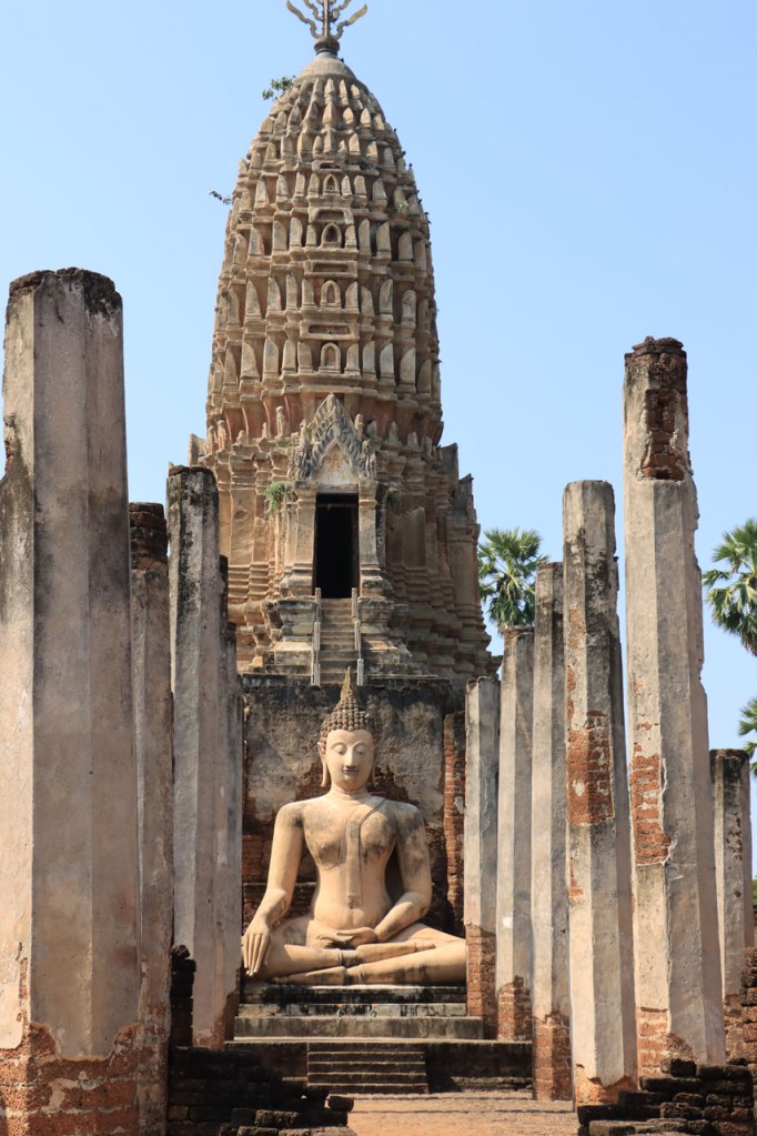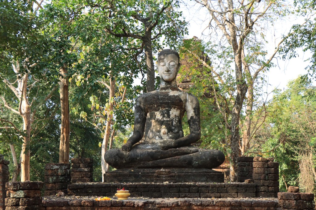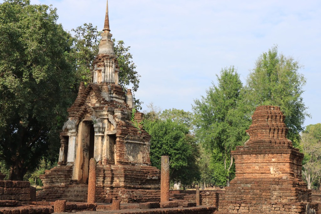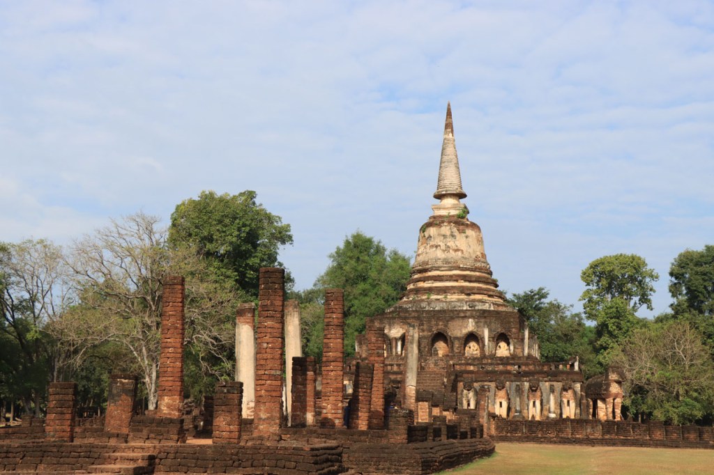 Vandaag de verplaatsing gemaakt naar de volgende van het drietal historische steden. Ik volgde daarbij de rivier Yom, sowieso al zelden de kortste optie maar ik deed er ook nog ruim 10 Km bovenop. Na goed 5 Km merkte ik dat ik een drinkenbus vergeten was op mijn kamer. Zo’n bus is toch vrij waardevol hier, voldoende alleszins om er 5 Km voor terug te rijden. Verder ging het langs de rivier nogal eens over onverhard maar wel altijd behoorlijk berijdbaar.