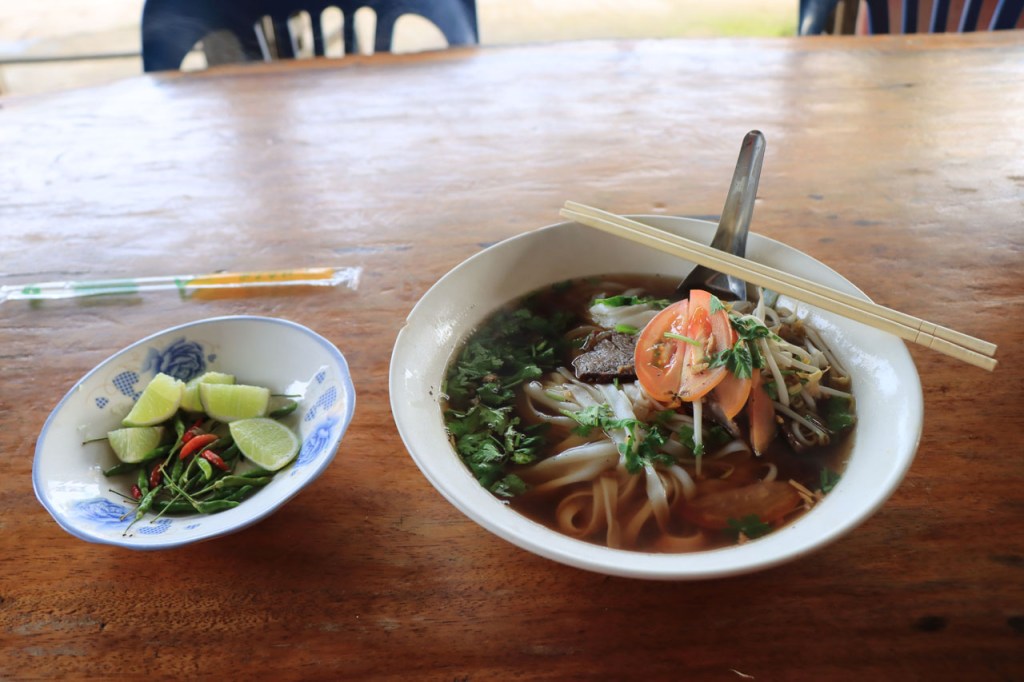 Mijn hotel was er weer eentje zonder ontbijt service, dat kan je misschien ook niet verwachten voor 6 €. Ik begon de dag dus met een stevige kom noedelsoep op de hoek, weer goed voor een dikke euro extra 🙂 .