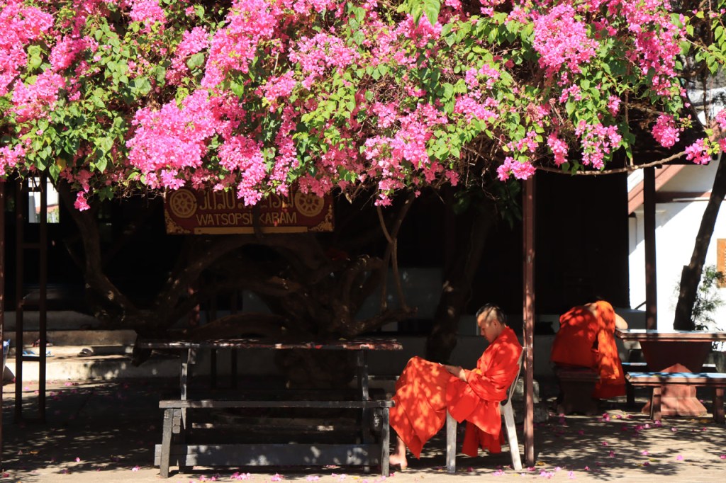 Ik wou de geneugten van het leven met echte restaurants maar burgers, pizza, spaghetti of Belgian frites moest het nu ook weer niet zijn. Luang Prabang is wel wat veranderd sinds mijn eerste bezoek, 18 jaar geleden. De buitenkant is nog wel hetzelfde maar waar je vroeger in de hoofdstraat nog kleinere lokale restaurants, ook toen al wel met echte menu’s, zag, daar zie je nu “art galleries”, “bakeries”, massage salons (wel eerbaar voor zover ik zie), bike rentals en hippere restaurants. Ik vond wel een leuk plaatsje maar het wifi paswoord was “australia”, ik geloof dat dat genoeg zegt 🙂 . Toch blijft Luang Prabang een leuke plaats met een aangename sfeer. Vanmorgen was ik overigens minder principieel en koos voor de banana pancakes in plaats van weer een noedelsoep 🙂 .