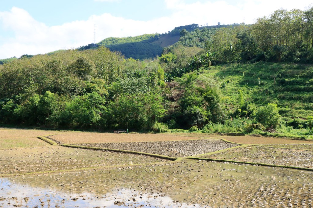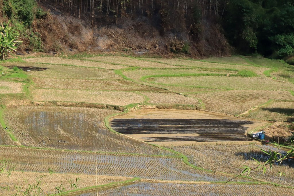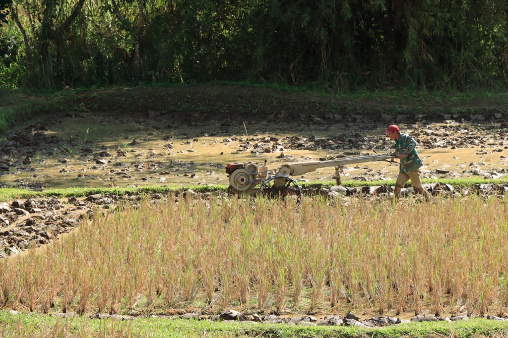 De boeren zijn hier begonnen met hun rijstvelden om te ploegen en terug onder water te zetten.