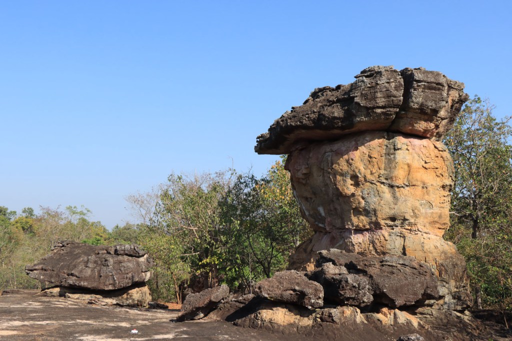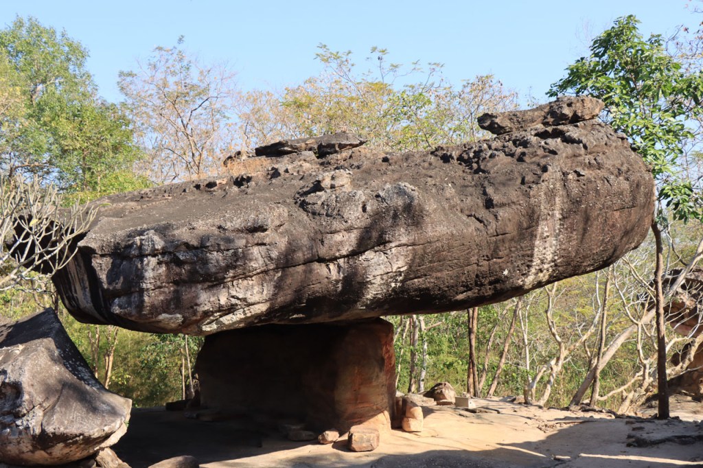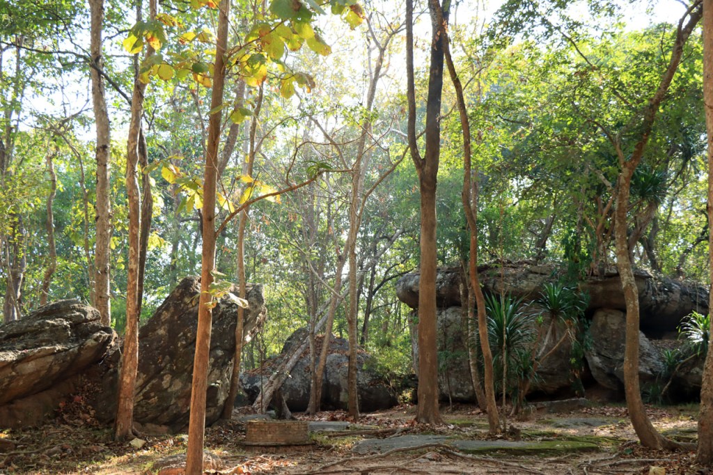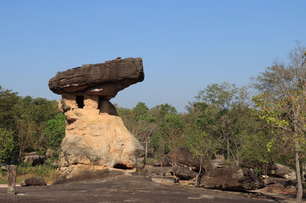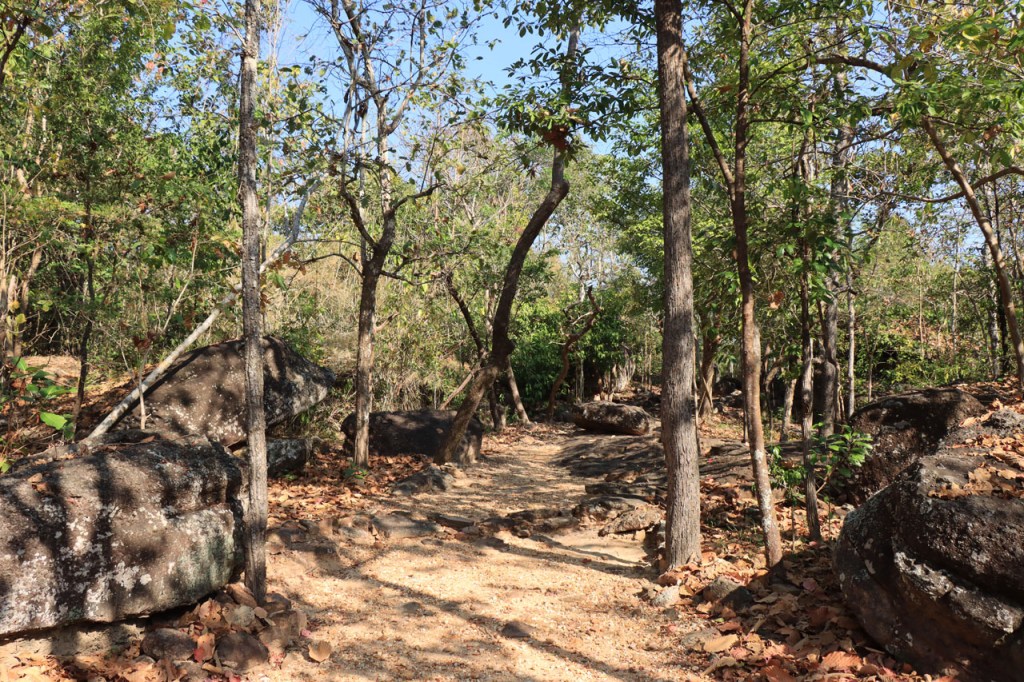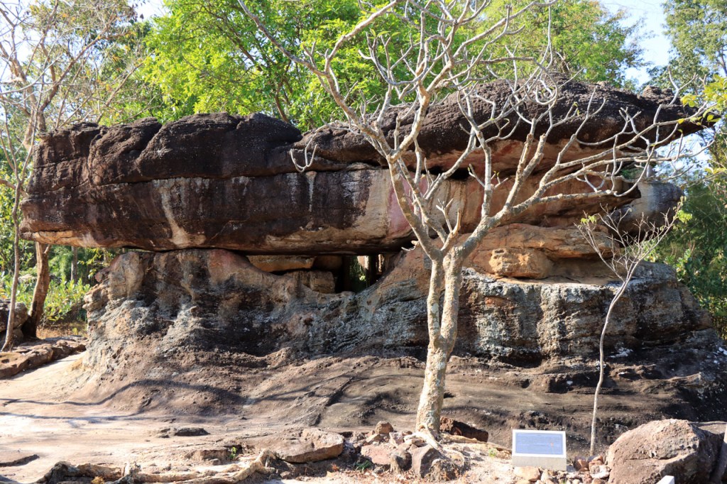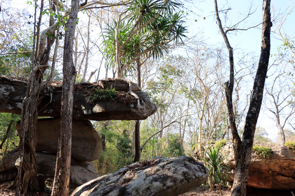 Vandaag weer een behoorlijk koele dag met noordenwind, bij vertrek was het met 17° zelfs eerder frisjes 🙂 . Ik maakte vandaag een extra zijstapje naar het Phu Phra Bat Historical Park. Phu Phra Bat Historical Park ligt op de berg Phu Phan en omvat een aantal rotsformaties die schijnbaar 15 miljoen jaar geleden zouden ontstaan zijn door onderwatererosie. Op sommige van de formaties zijn ook prehistorische rotstekeningen vastgesteld. Het park is mooi georganiseerd met wandelpaden, een handig infoblaadje, wegwijzers naar de verschillende formaties en infobordjes, alles ook in het engels. De extra 10 Km en de wandeling die ik er deed maakte het geheel toch wel een vrij stevige dag.