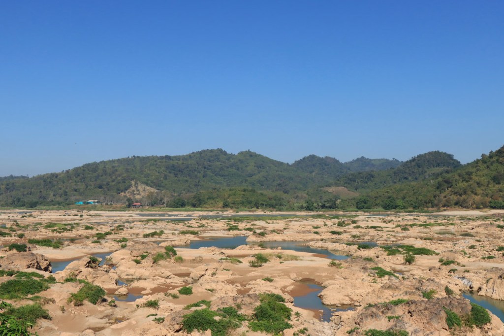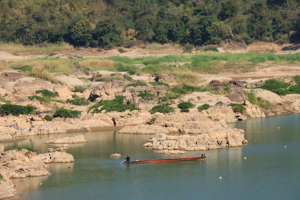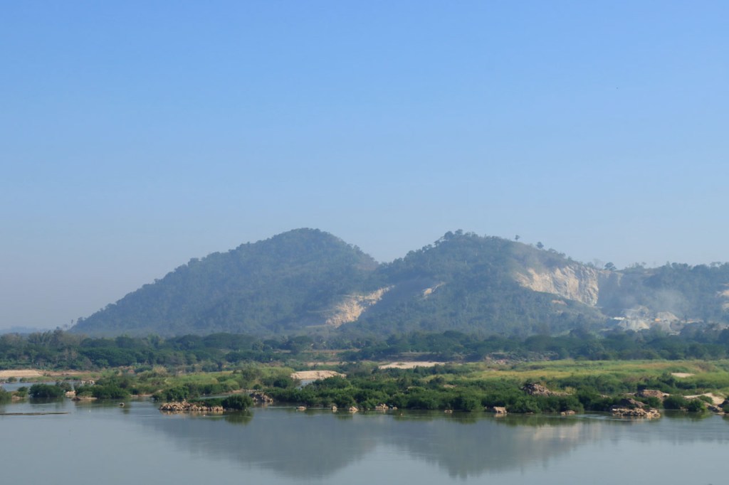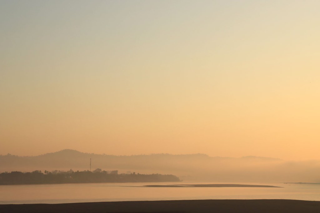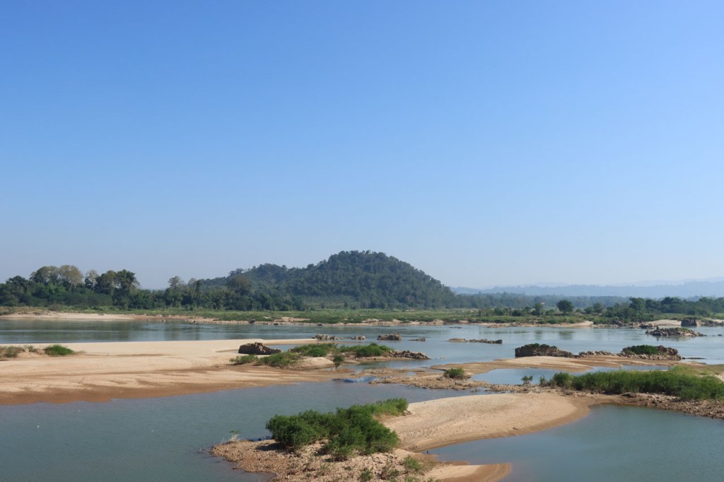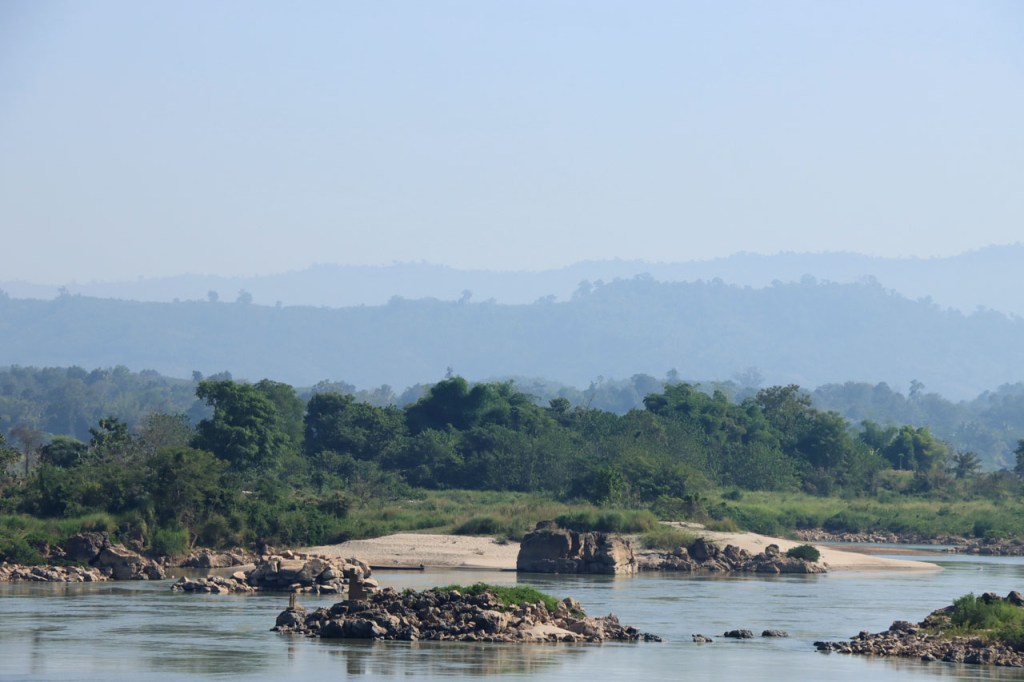 Het zicht is langs deze kant ook beter, aan de overkant kijk je met tegenlicht over de Mekong en hier heb je het licht in de rug.