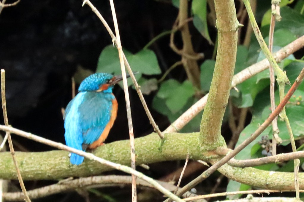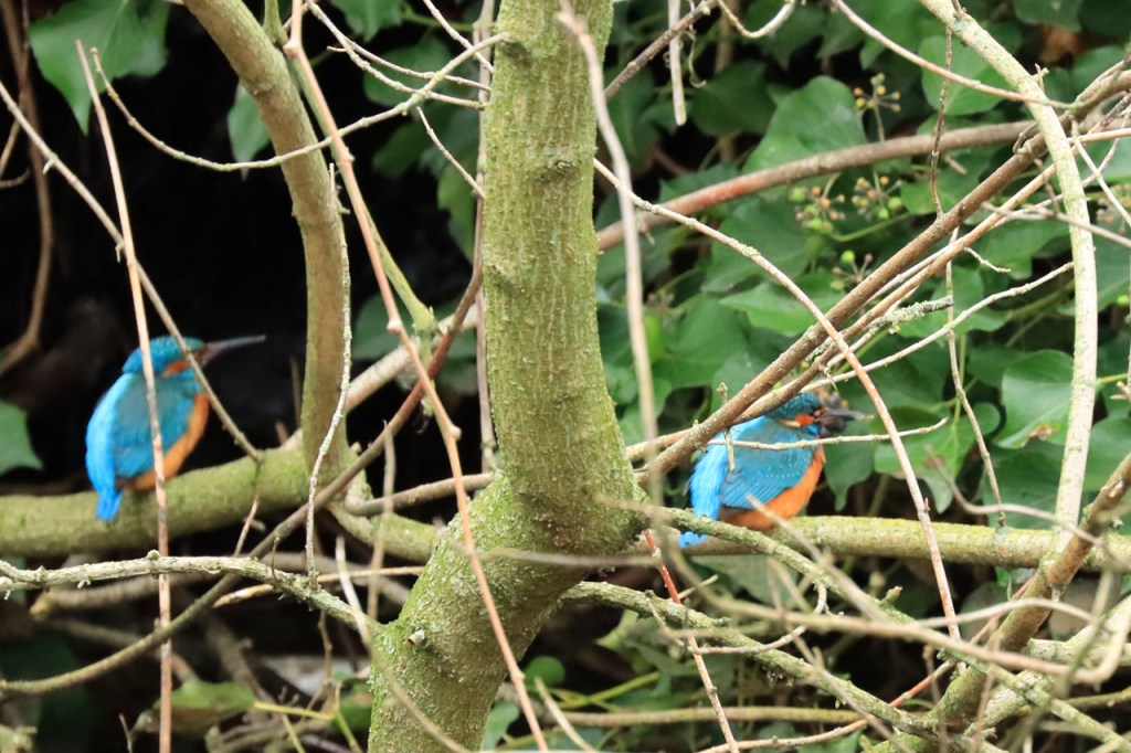 Er waren er nogal wat die het best geschikt fietsweer vonden, er bleken ook enkele toertochten te vertrekken vanaf Dikkebus Vijver, maar ik zette toch nog even mijn wandelserie voort. Verder waren er overigens weinig vreemde vogels te merken. Er was wel een hele groep kuifeenden maar die zijn er niet echt zeldzaam. De ijsvogeltjes zijn niet mijn beste ooit maar ze zaten wat ver en nogal verstopt tussen de takken.