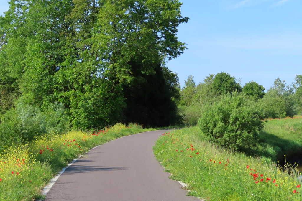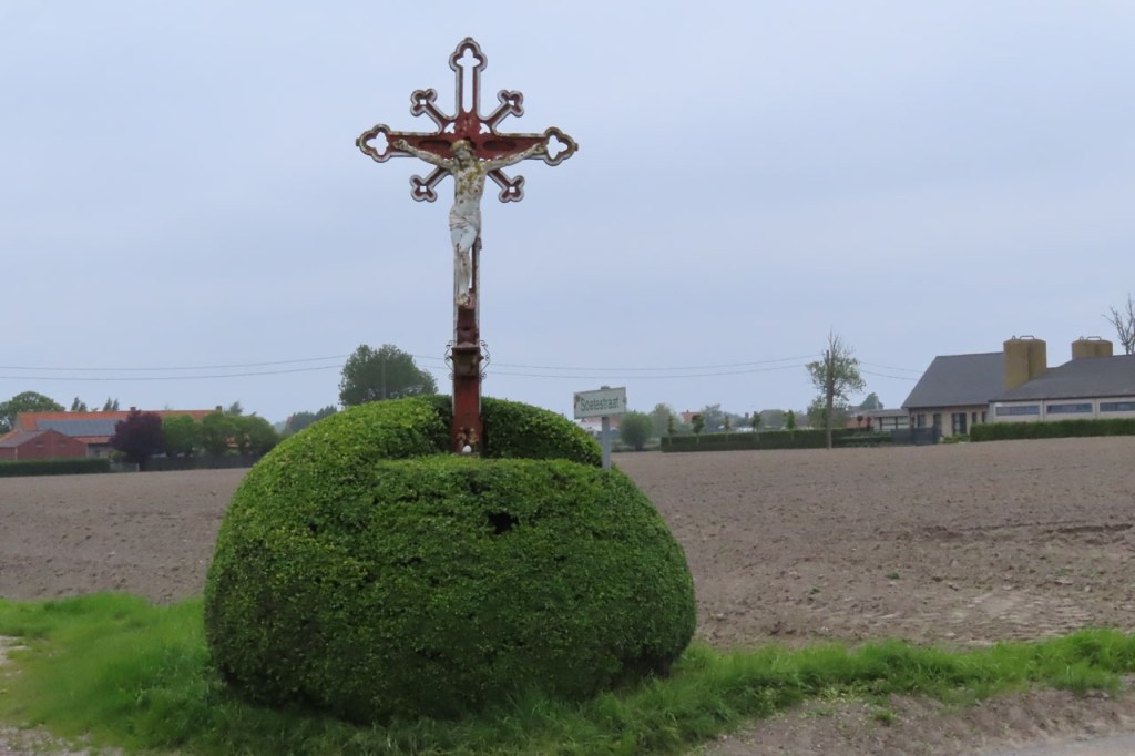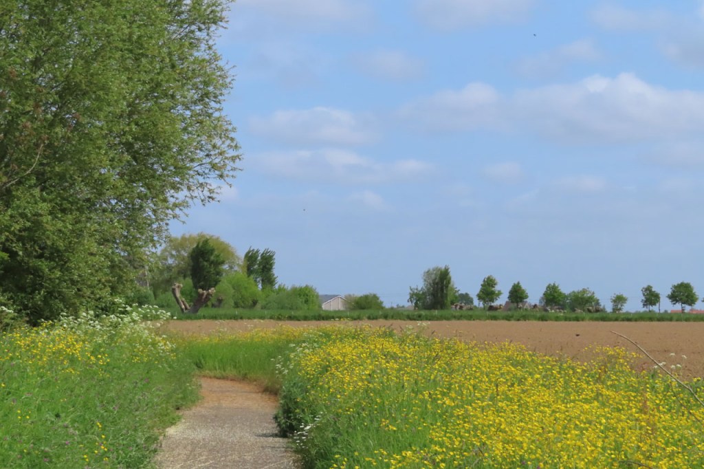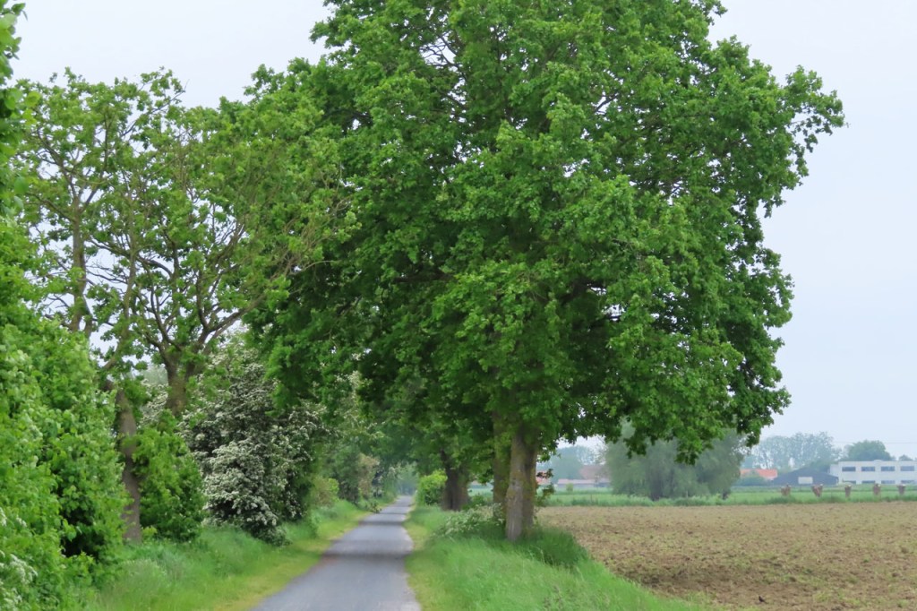 Vandaag ging ik niet over de grens maar er net langs en af en toe ook precies erop, dan lag dus links van de weg Frankrijk en rechts België. Hoe dan ook lag langs beide kanten Vlaanderen natuurlijk 🙂 .