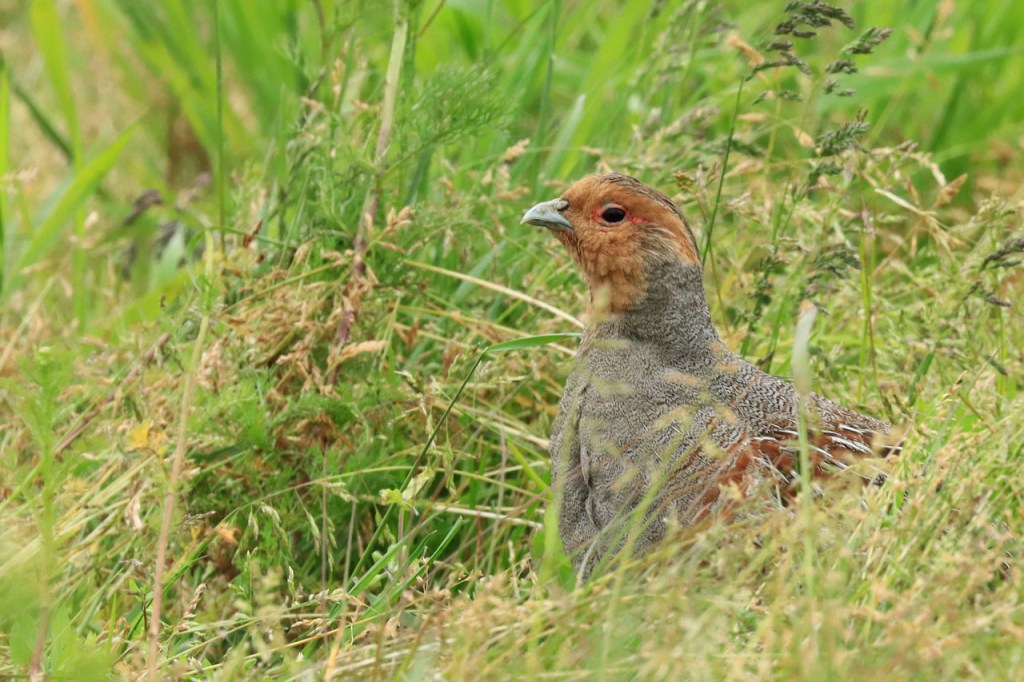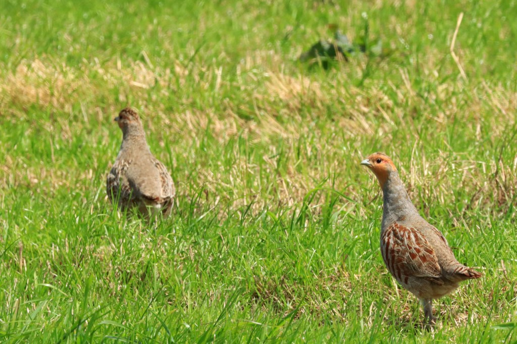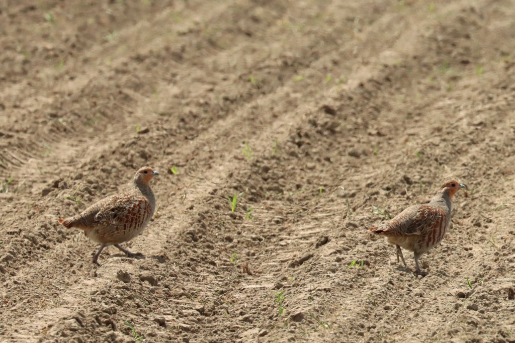 Er viel me de afgelopen weken nog wat op aan de patrijzen, je ziet ze vrijwel altijd in paartjes maar nooit met kuikens.