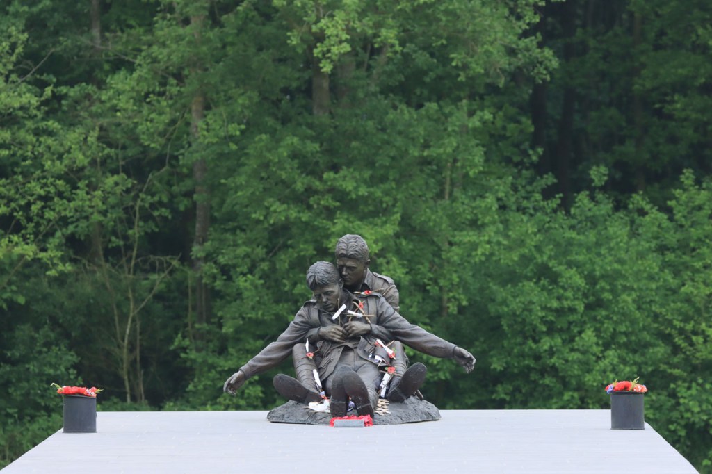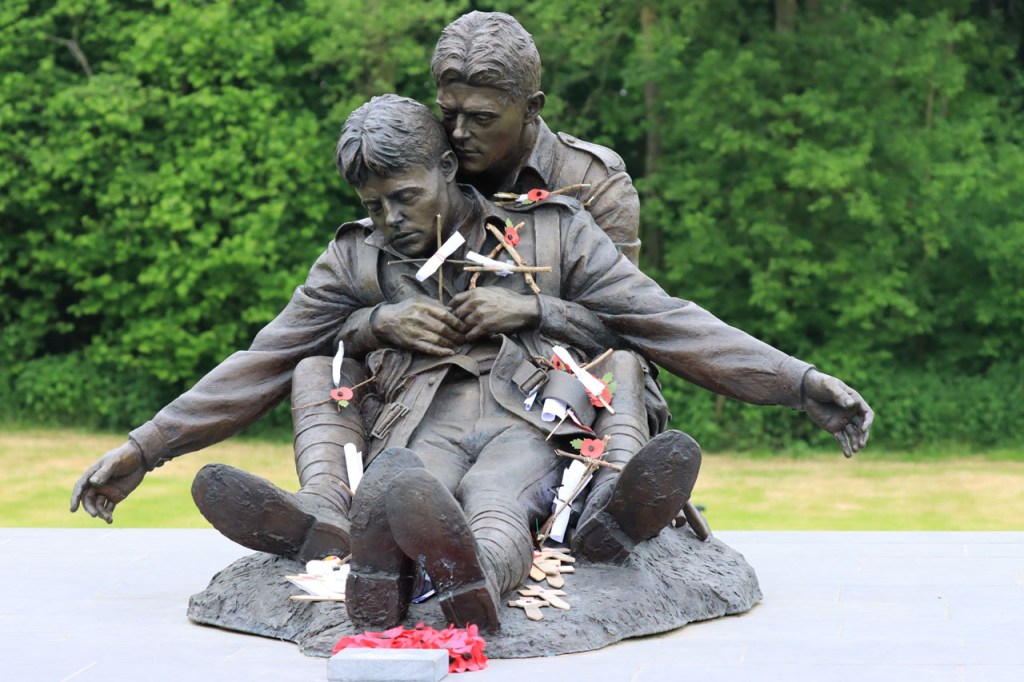 De route ging vaak over wegen waar ik wel eens meer kom maar ook langs plaatsen waar dat zelden of nooit gebeurt. Zo kwam ik voor het eerst langs het “Brothers in Arms” Memorial. Het memorial staat niet zozeer voor de symbolische “brothers” in de vorm van de leden van de eenheid maar wel voor de letterlijke families die samen vochten in de oorlog. Het beeld stelt Jack Hunter voor die sneuvelde bij de Slag bij Polygoonbos op 20 september 1917 en stierf in de armen van zijn broer Jim.