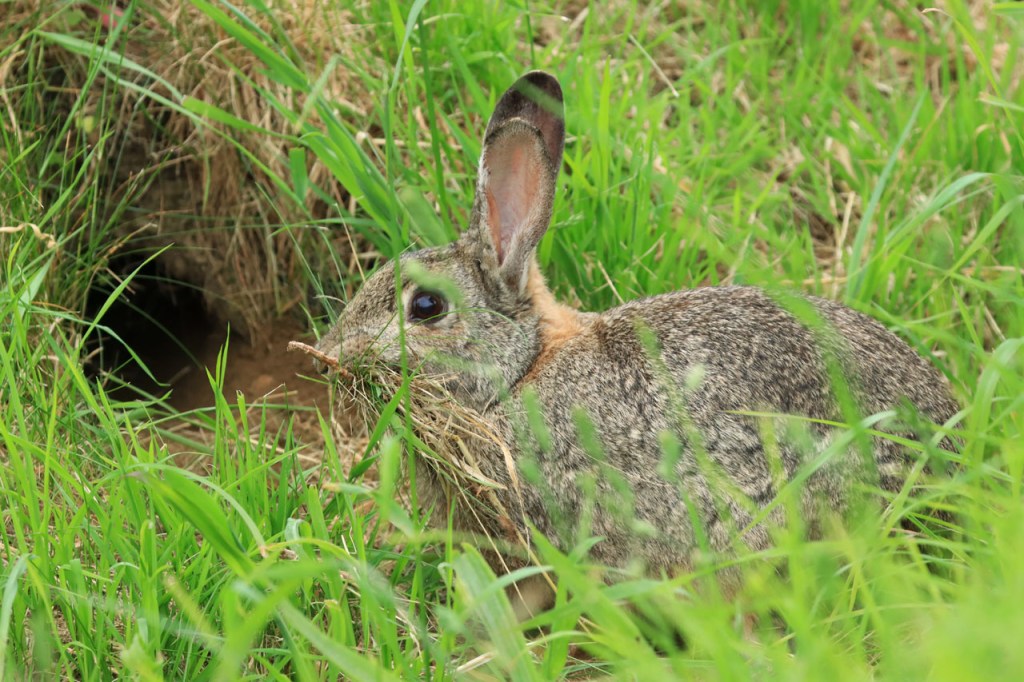 Ik zag daar ook voor het eerst een konijn gras plukken en verzamelen. Al snel werd duidelijk waarom het dat deed.