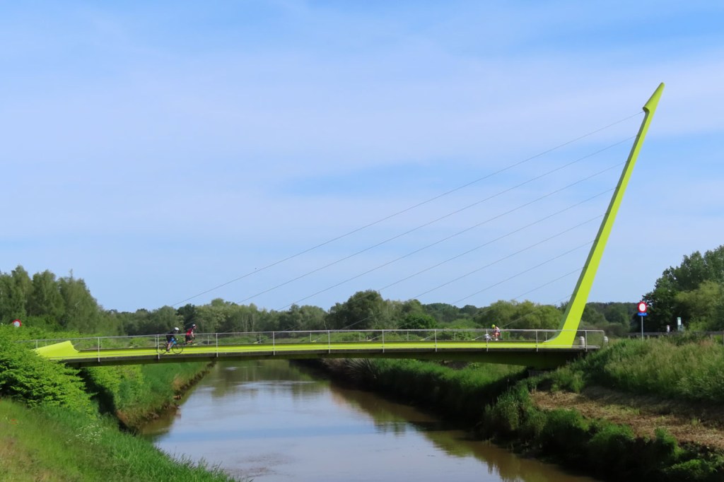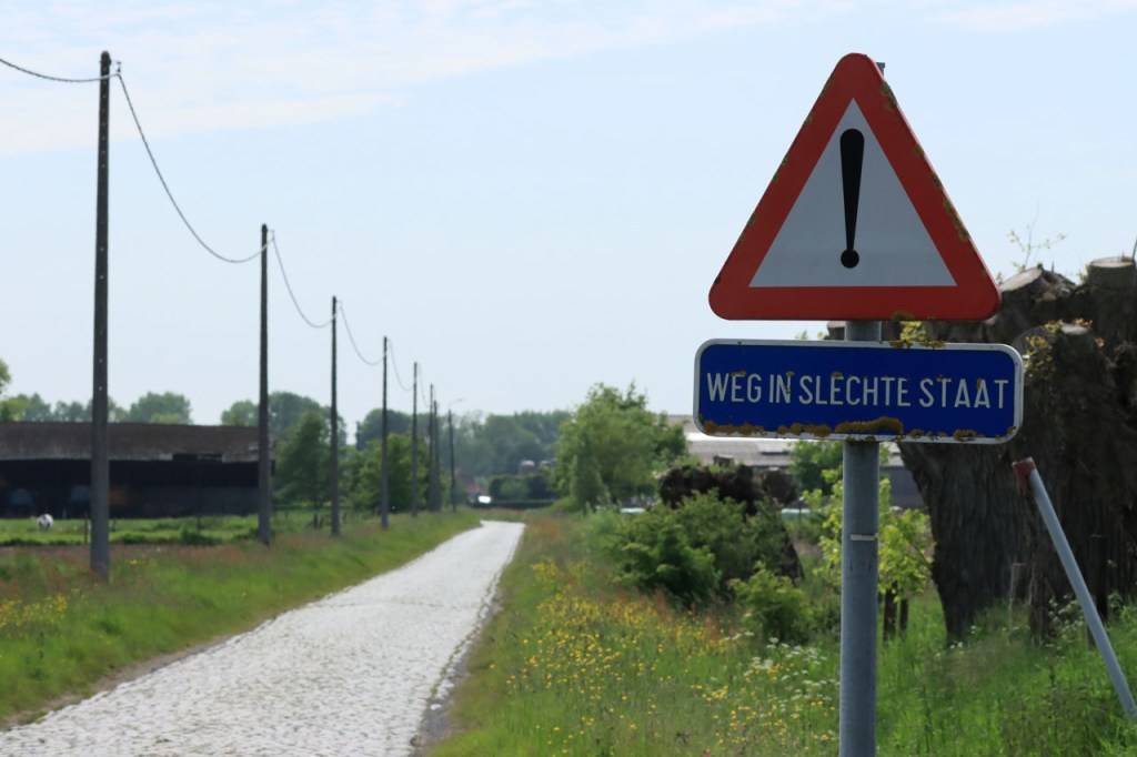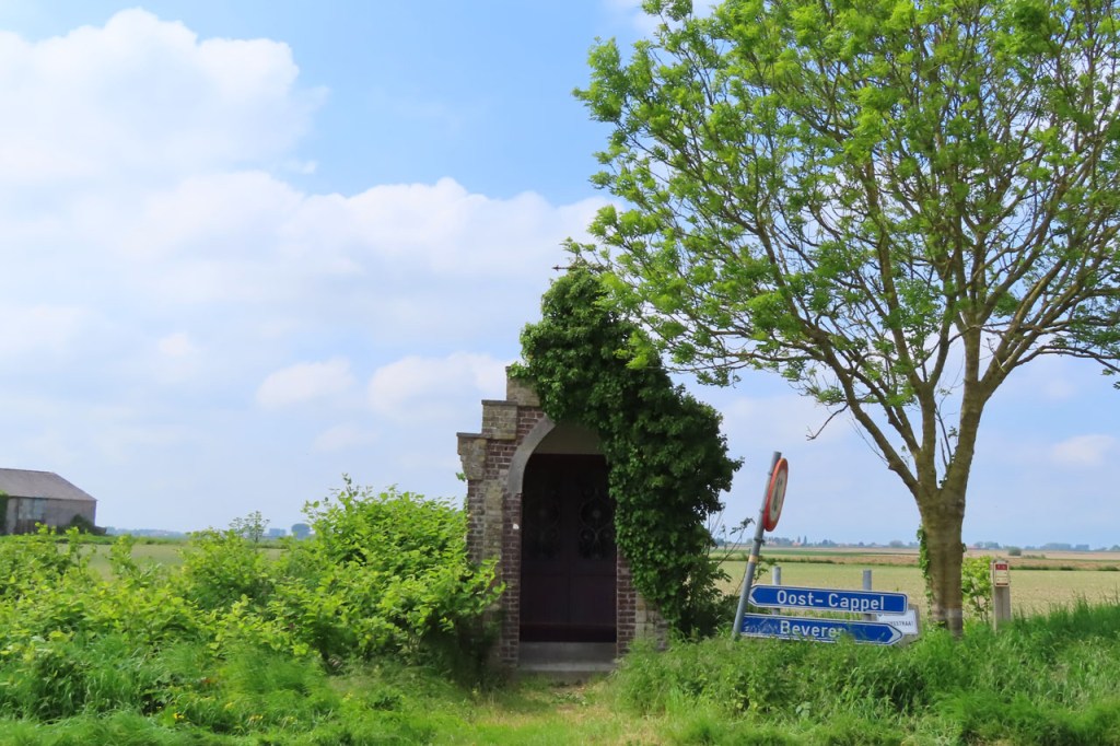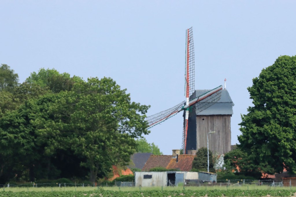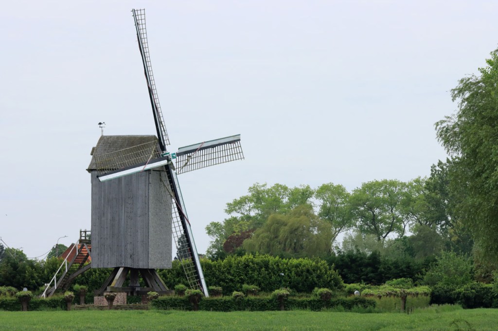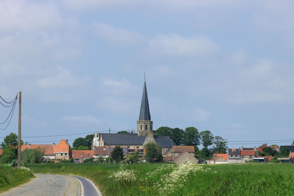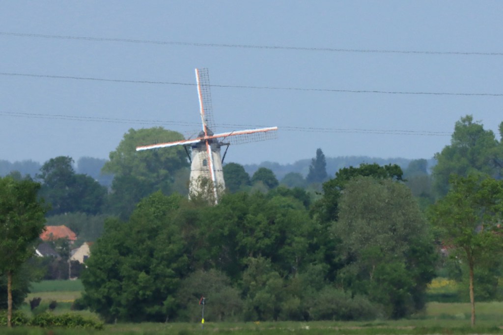 Ik was wel wat blij toen ik de grens uiteindelijk achter me liet, het was weer een zware strijd tegen de wind. Een strijd die overigens nog niet gedaan was met het verlaten van de grens, het bleef maar wind tegen. Links tegen, rechts tegen, vol tegen … op alle mogelijke manieren stond de wind tegen 😦 . Pas vanaf Reninge kwam wat verlossing.