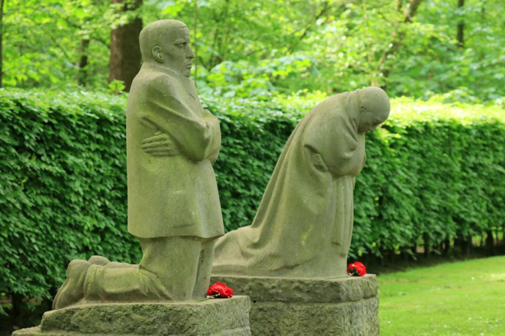 Mijn rit begon vandaag weer klassiek, langs De Blankaart naar Diksmuide. Van Diksmuide liet ik mij door de knooppunten, via Vladslo, naar het Bos van Houthulst leiden. In Vladslo ging ik nog eens langs het Duits Kerkhof met het Treurend Ouderpaar van Käthe Kollwitz. Nadat haar zoon op 23 oktober 1914 sneuvelde in de omgeving van Diksmuide maakte Käthe Kollwitz meerdere anti oorlog tekeningen en beelden, waaronder dus dit treurend ouderpaar. Toen in de jaren 30 de nationaalsocialisten in Duitsland aan de macht kwamen, kwam haar werk er op de zwarte lijst en werd ze ontslagen als hoogleraar aan de Berlijnse Academie. Ze overleed op 22 april 1945 net voor het einde van de tweede wereldoorlog, waarin overigens haar kleinzoon sneuvelde aan het Russisch front.