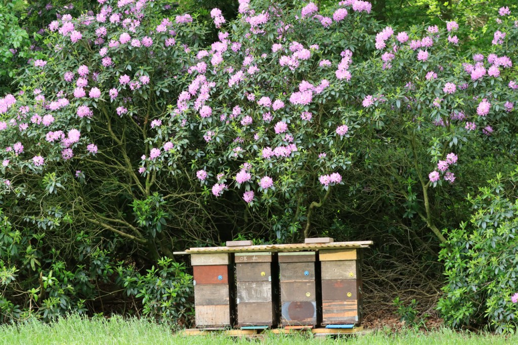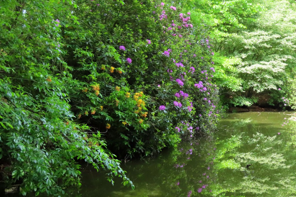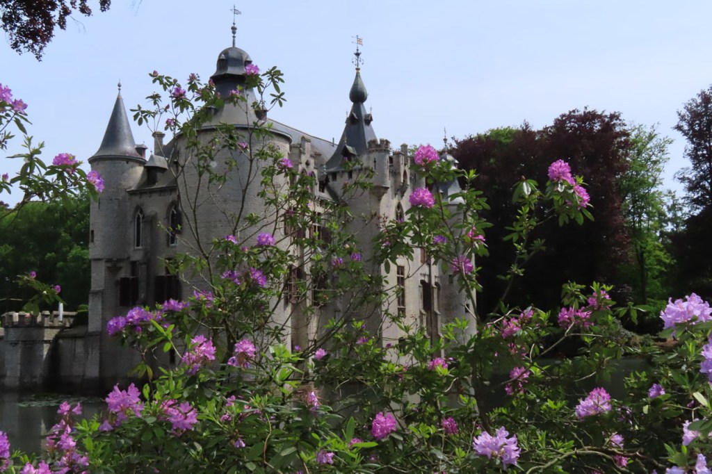 De wind leek toch wat stevig om na de middag met moeder ook weer een ritje te maken. We kozen dan maar voor een wandeling, langs het kasteel. De rododendrons staan er mooi in bloei.