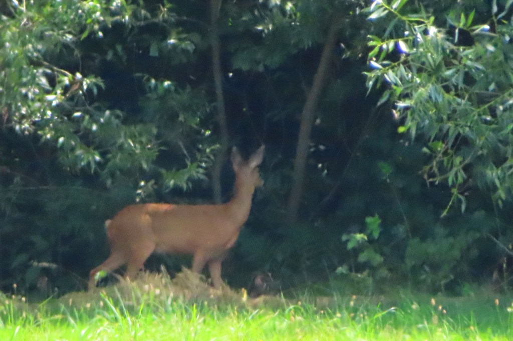 Ik had vannacht mogelijk een ree als buur. Even de situatie schetsen: Tussen de camping en de “container” lagen een bosje, waar mijn tentje net naast stond, en een dijk. Toen ik gisteravond mijn tanden ging poetsen zag ik op die dijk een ree die zich, toen ze mij ook zag, vlug in het bosje spoedde. Ik keerde direct even op mijn stappen terug om te zien of ze ook de camping zou oversteken maar daar was niets van te merken. Ik ga er dus vanuit dat ze in het bosje langs de camping haar levensruimte heeft. Ik weet uit ervaring, van langs de Verdronken Weide een paar zomers geleden, dat een ree geen zodanig groot bos nodig heeft om te leven.