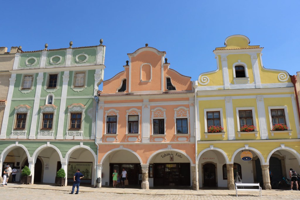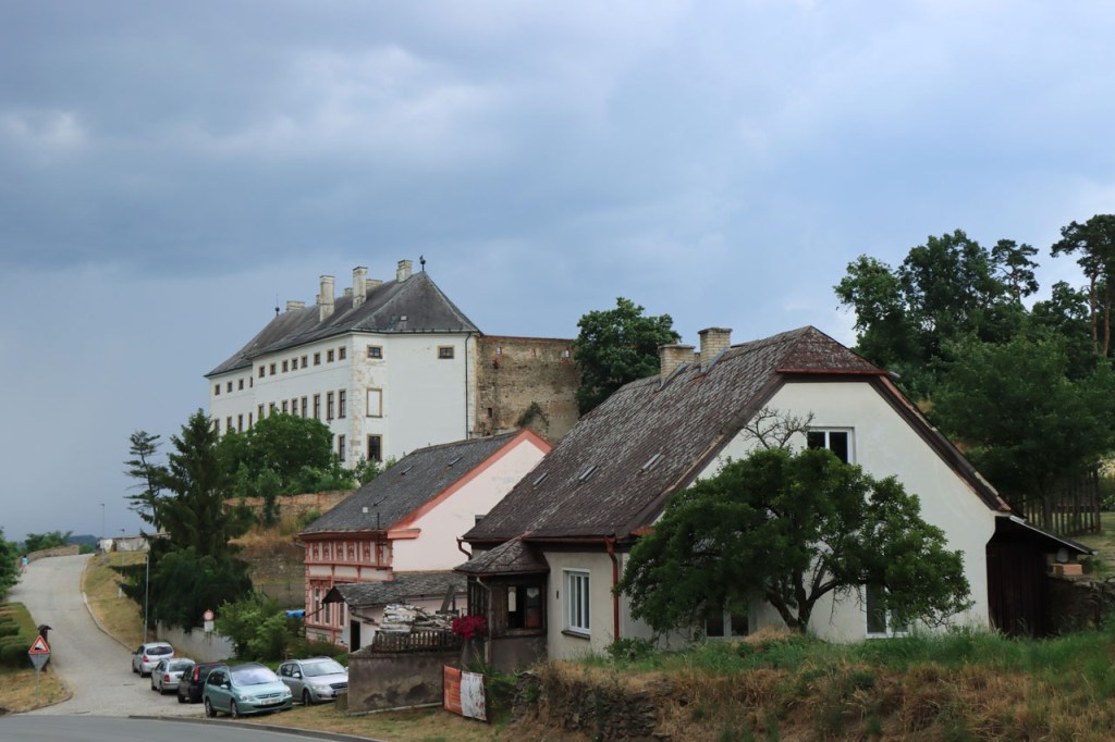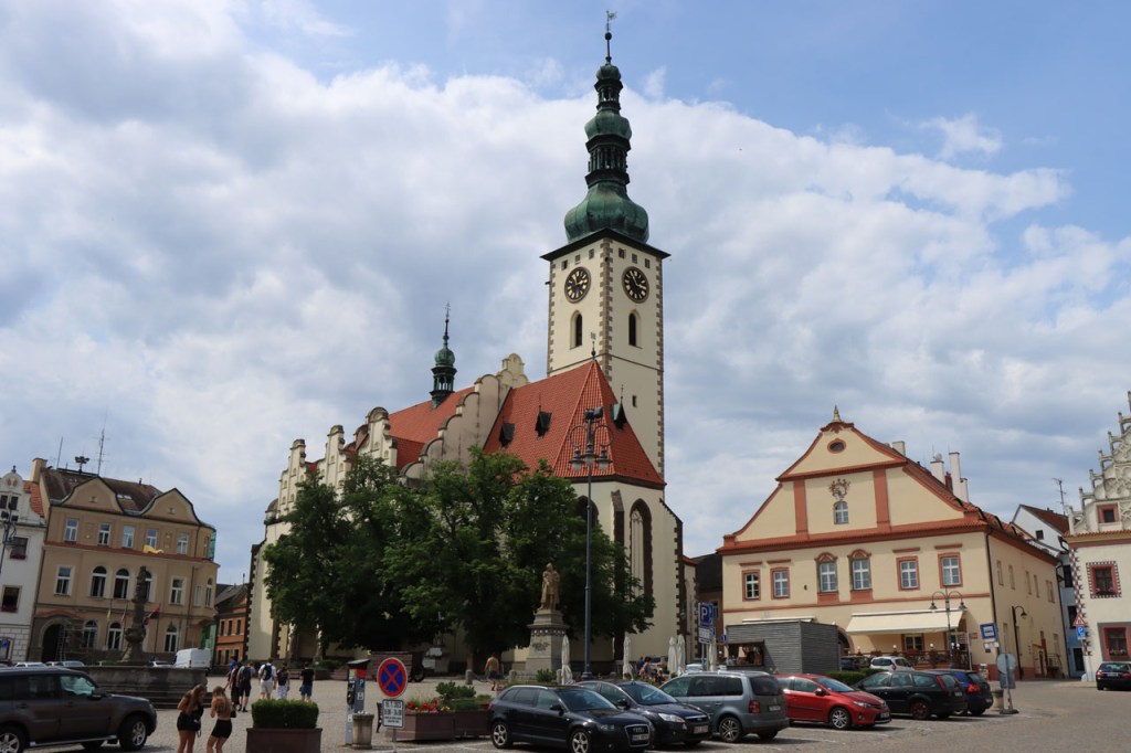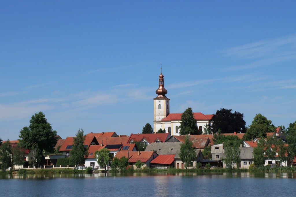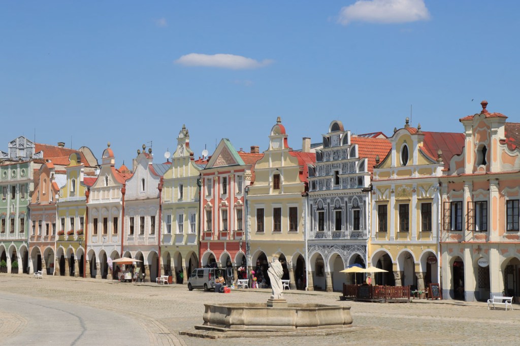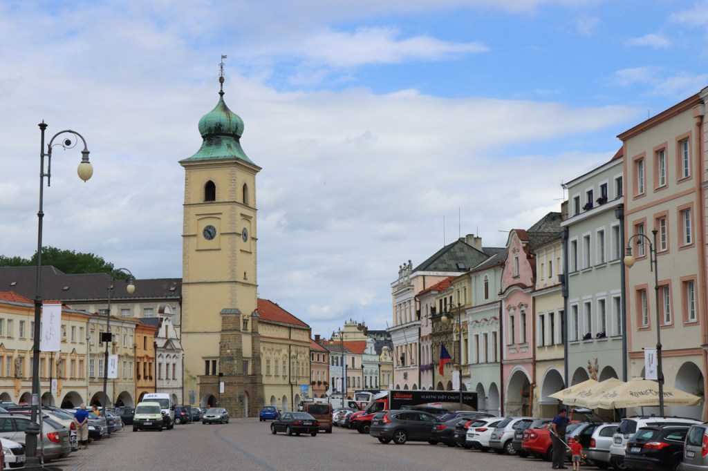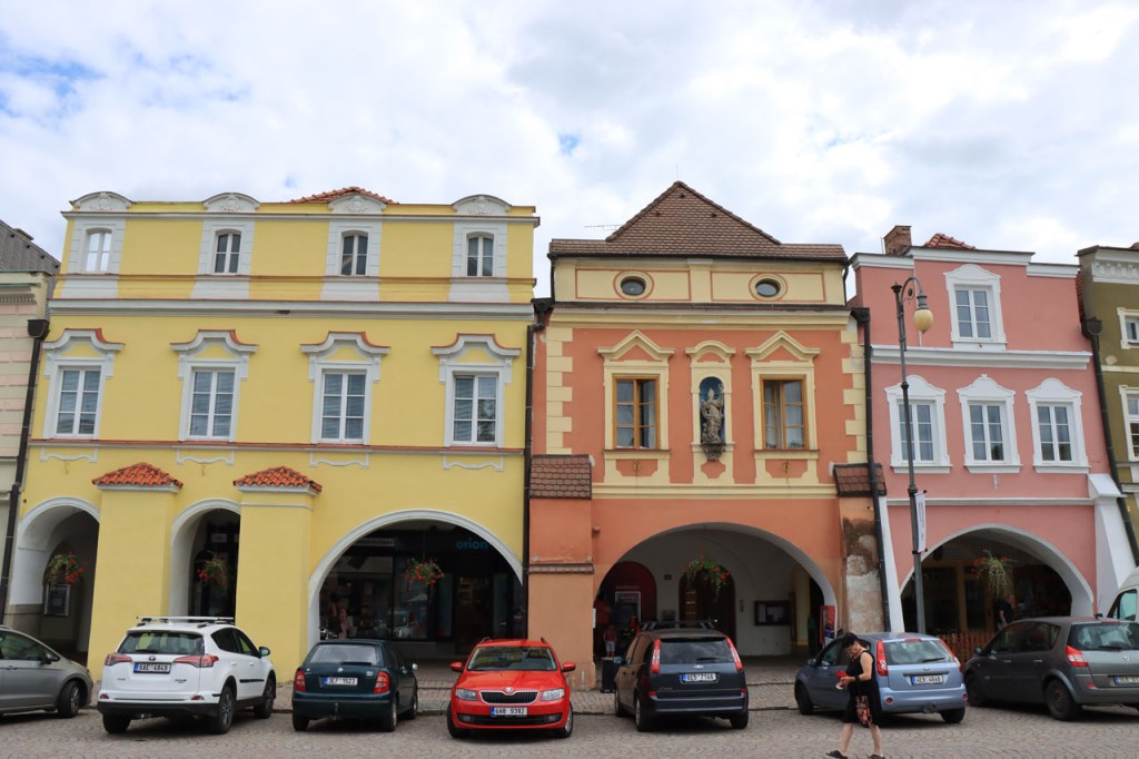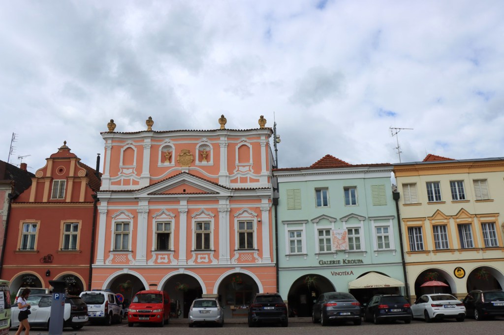 Het blijft tropisch. Na 30 kilometer bereikte ik Telc, de reden om deze richting uit te komen. Hier in de buurt had ik ook eventueel een camping moeten vinden, en zou ik ook gevonden hebben. Het zou dus toch weer nog een heel eind bovenop de rit van gisteren geweest, Jihlava was dus een goed idee. Ik moet eerlijk zeggen dat het Grand Hotel ook wel een leuke afwisseling was op het kamperen, de dag ervoor was ook wel binnen maar dan toch eerder nog kamperen 🙂 . Je kon in het hotel ook nog wel zien dat het ooit wel Grand geweest is, alleen is het wat blijven hangen in die tijd. Ik zou er vandaag een keer wat vroeger een einde aan maken, daarvoor zou ik in Strmilov een camping vinden. Alleen was er in Strmilov geen spoor van een camping. Ik was dan ook in het centrum naar aanwijzingen gaan zoeken. Uiteindelijk kon ik op enkele kaarten op het plein, waaronder bijvoorbeeld eentje met de fietsroutes van de streek, inderdaad wel zien waar de campings zich bevonden, in tweevoud. Toen ik terug uit het centrum op de grote weg kwam zag ik ook meteen een wegwijzer naar één van hen, als ik op de grote weg was gebleven had ik dus geen problemen gehad. Ik was nu dus wel goed op tijd en best nog fit om een blog te maken maar er is hier geen wifi, toch weer uitstel dus.