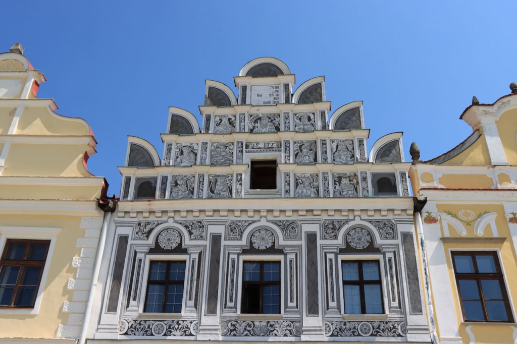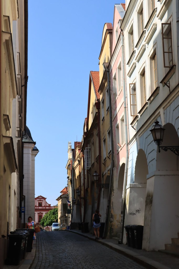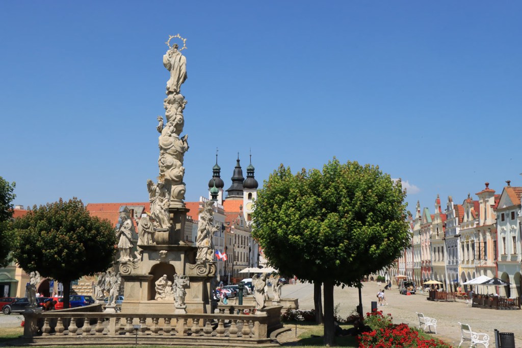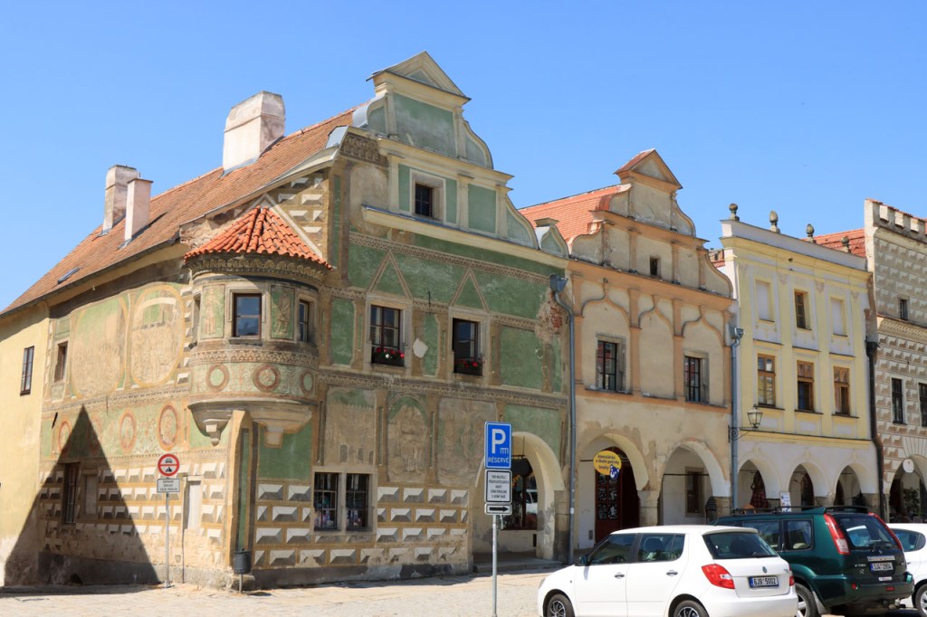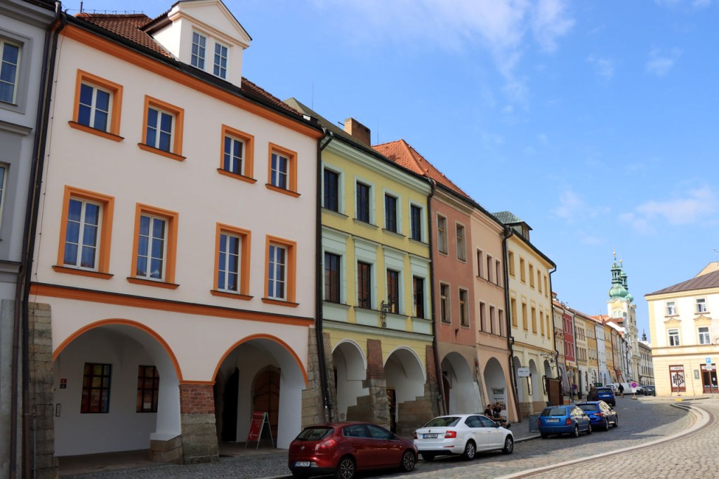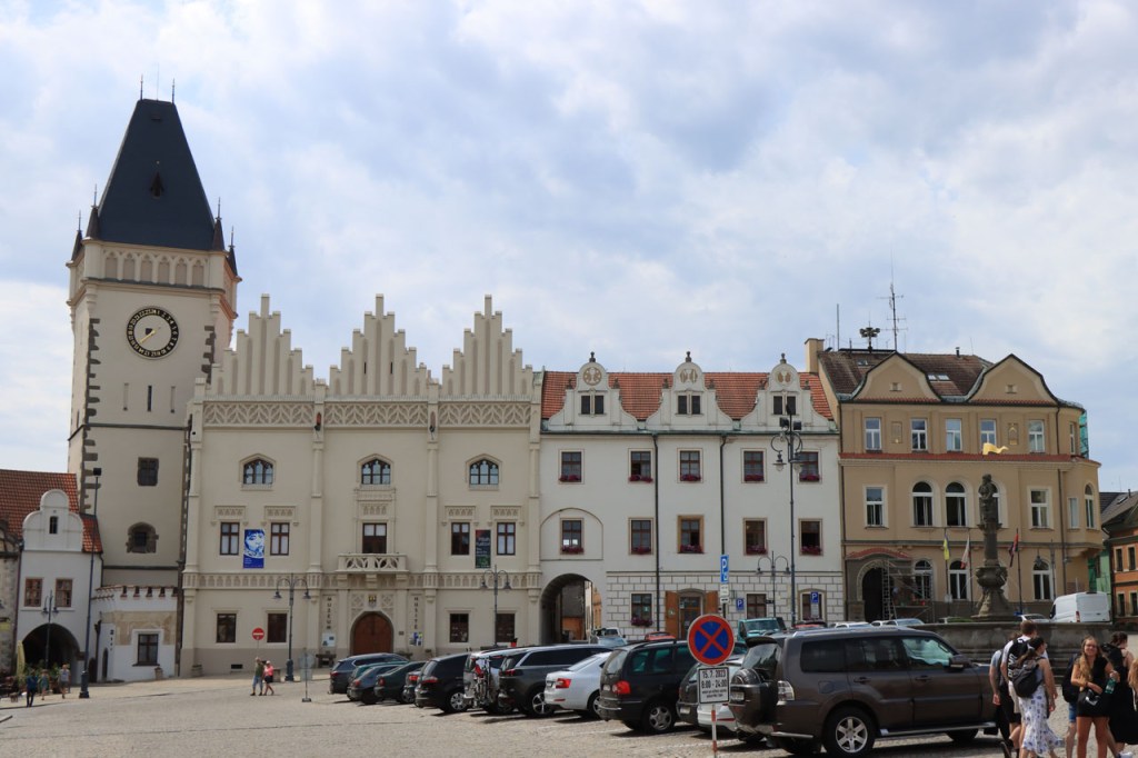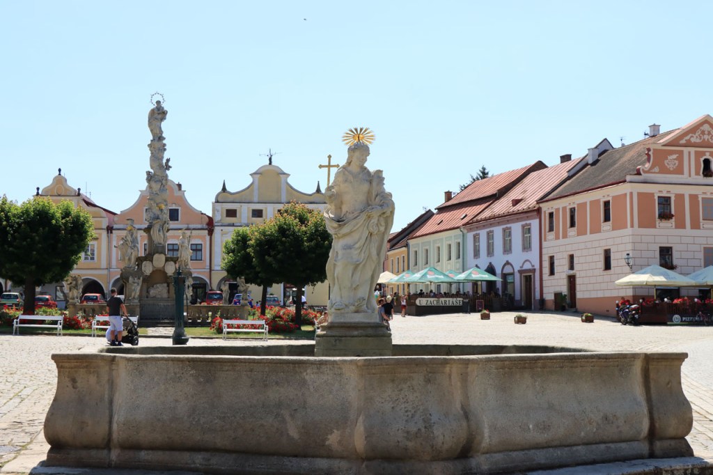 Het blijft tropisch. Na 30 kilometer bereikte ik Telc, de reden om deze richting uit te komen. Hier in de buurt had ik ook eventueel een camping moeten vinden, en zou ik ook gevonden hebben. Het zou dus toch weer nog een heel eind bovenop de rit van gisteren geweest, Jihlava was dus een goed idee. Ik moet eerlijk zeggen dat het Grand Hotel ook wel een leuke afwisseling was op het kamperen, de dag ervoor was ook wel binnen maar dan toch eerder nog kamperen 🙂 . Je kon in het hotel ook nog wel zien dat het ooit wel Grand geweest is, alleen is het wat blijven hangen in die tijd. Ik zou er vandaag een keer wat vroeger een einde aan maken, daarvoor zou ik in Strmilov een camping vinden. Alleen was er in Strmilov geen spoor van een camping. Ik was dan ook in het centrum naar aanwijzingen gaan zoeken. Uiteindelijk kon ik op enkele kaarten op het plein, waaronder bijvoorbeeld eentje met de fietsroutes van de streek, inderdaad wel zien waar de campings zich bevonden, in tweevoud. Toen ik terug uit het centrum op de grote weg kwam zag ik ook meteen een wegwijzer naar één van hen, als ik op de grote weg was gebleven had ik dus geen problemen gehad. Ik was nu dus wel goed op tijd en best nog fit om een blog te maken maar er is hier geen wifi, toch weer uitstel dus.